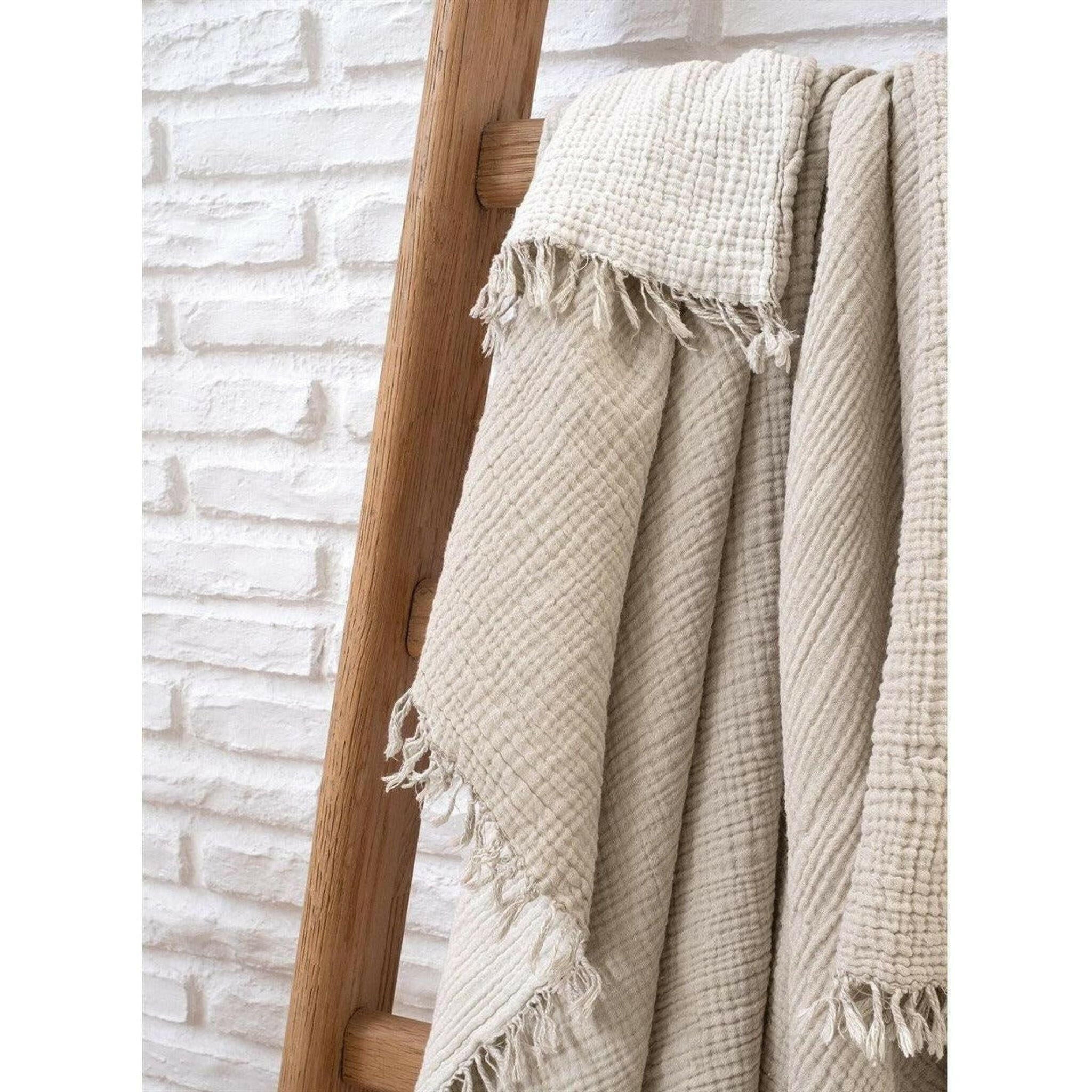 This 100% cotton throw blanket is specially crafted with a weaving technique that makes it suitable for double-sided use. Whether you want to use it as a TV blanket, seat cover, or simply as a decorative piece, this product is sure to deliver. It's soft to the touch feel makes it perfect to snuggle under when on the couch, in bed, or at the beach. Additionally, the fine cotton mesh fabric and lightweight construction allows for breathability that will feel