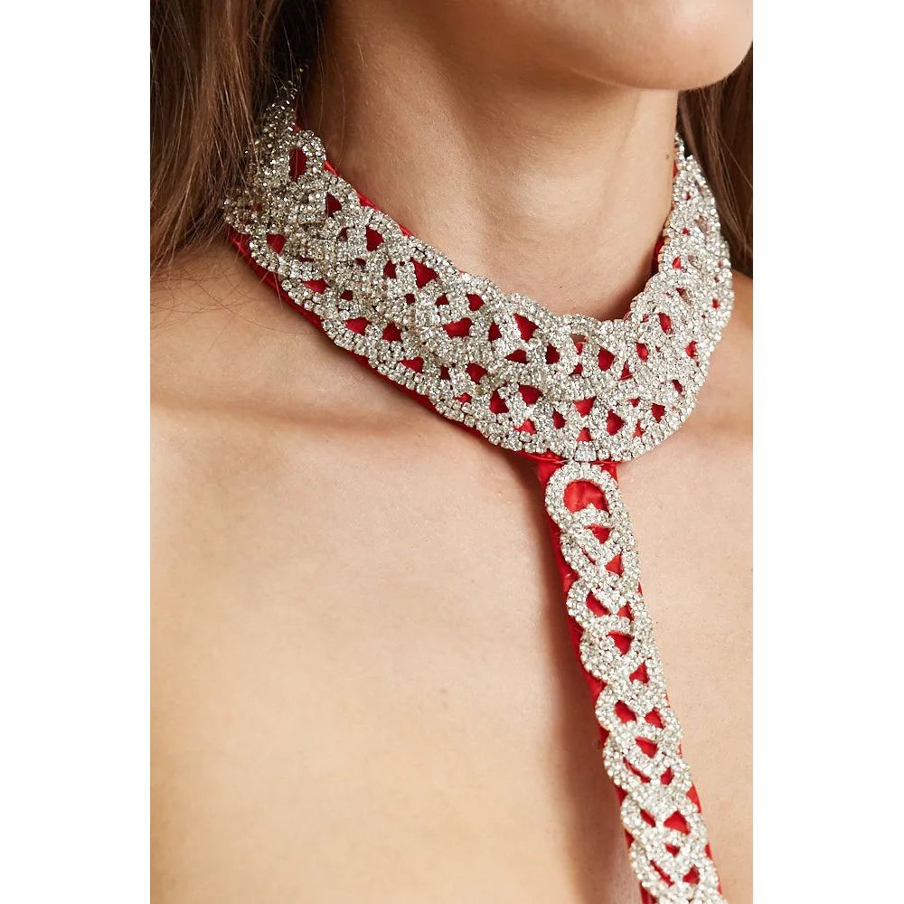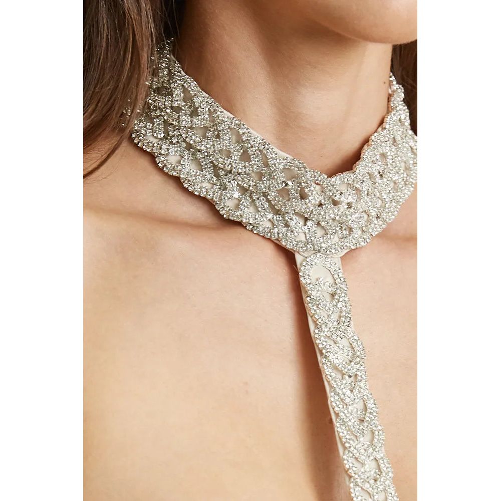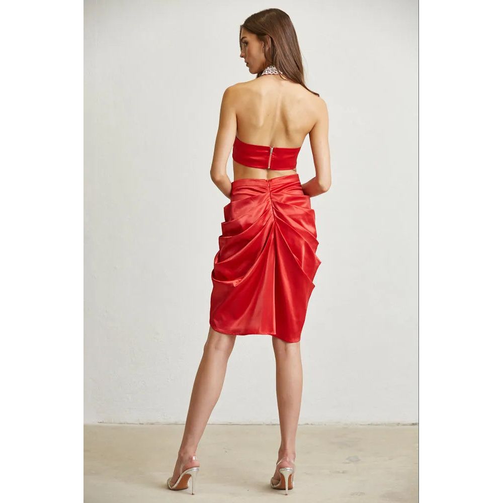 This Top and Skirt Set is made of luxurious satin and features rhinestone embellishments. The mockneck is adorned with buttons and the sweetheart bustline includes a silicone grip for a secure fit. The