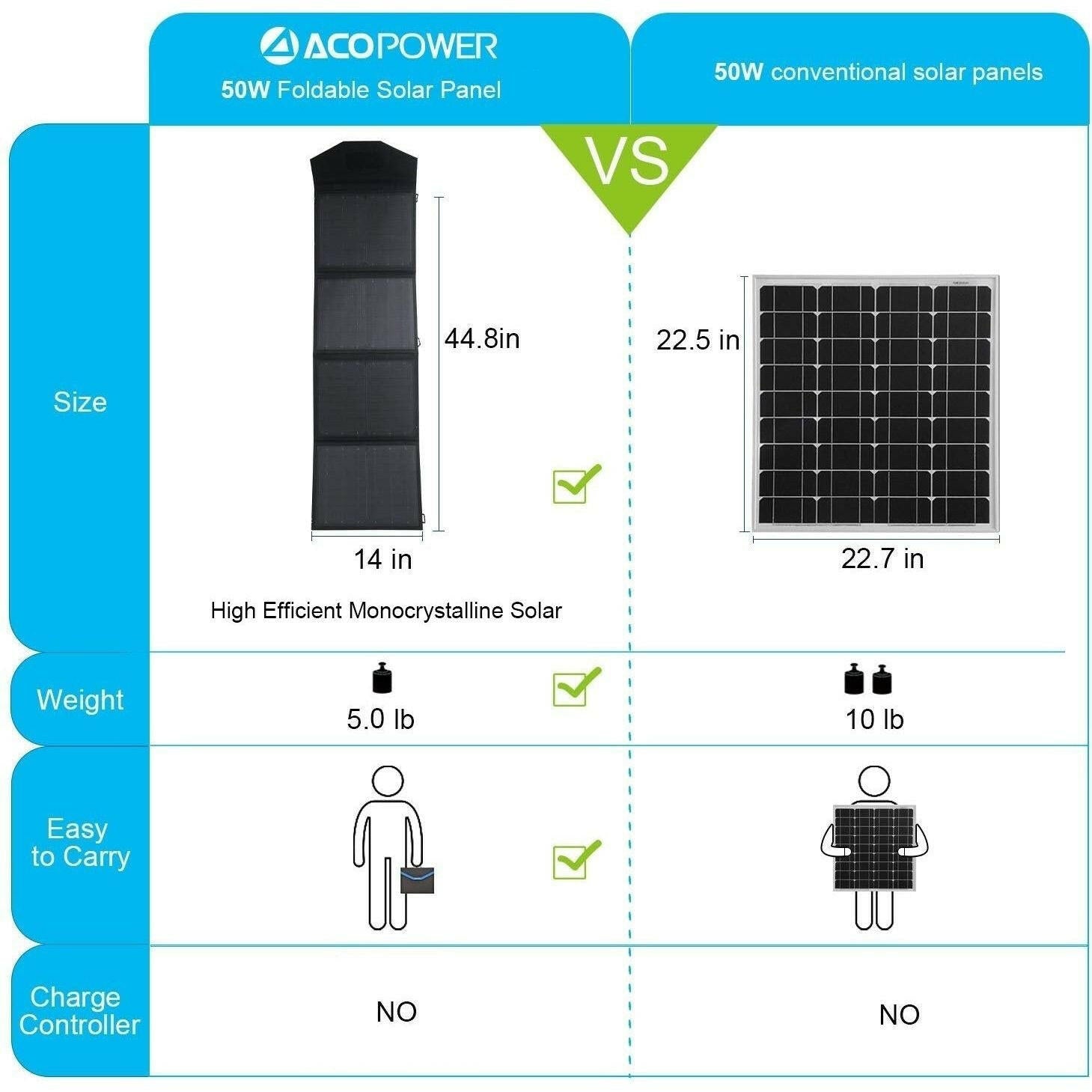 ACOPOWER 12V 50 Watt Portable Solar Panel Kit W/ 5A Charge Controller for RV, Boats, Camping