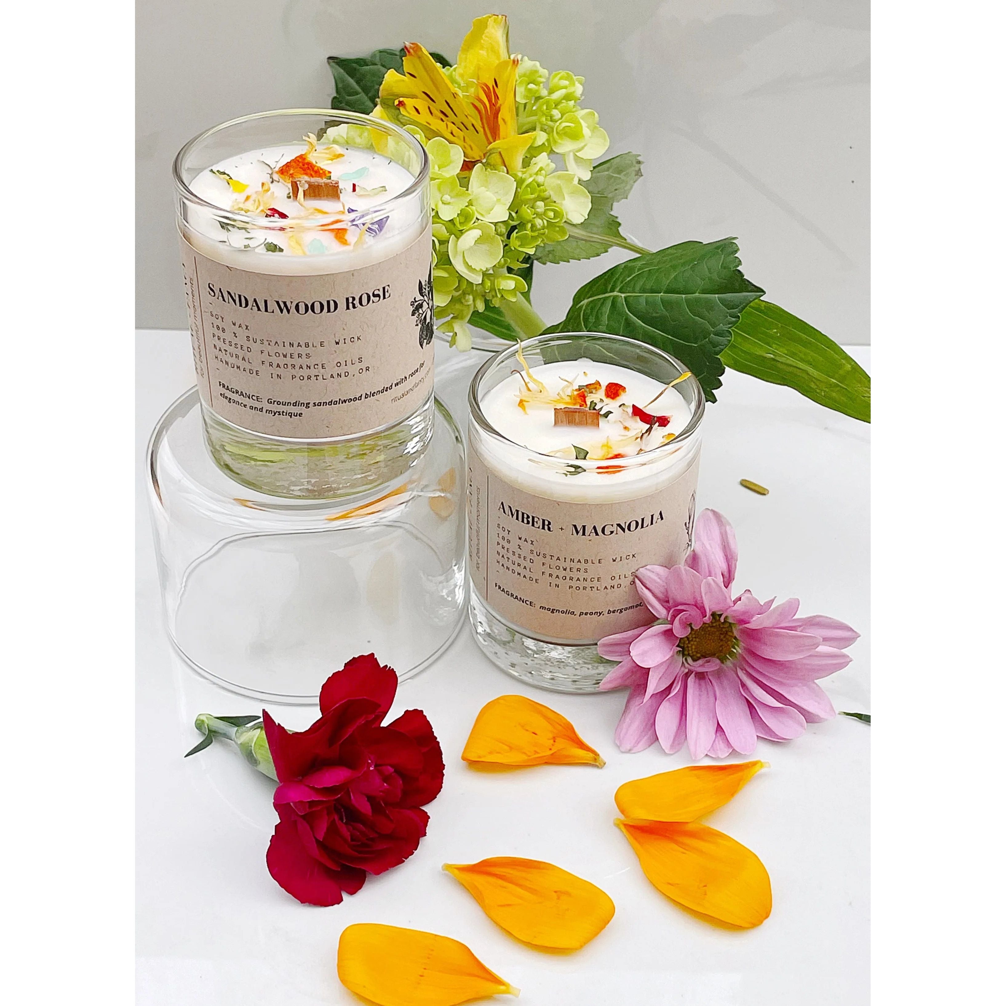 Ingredients: soy wax candle - cotton wick - clean fragrance - hand poured in Oregon (USA) - dried botanicals