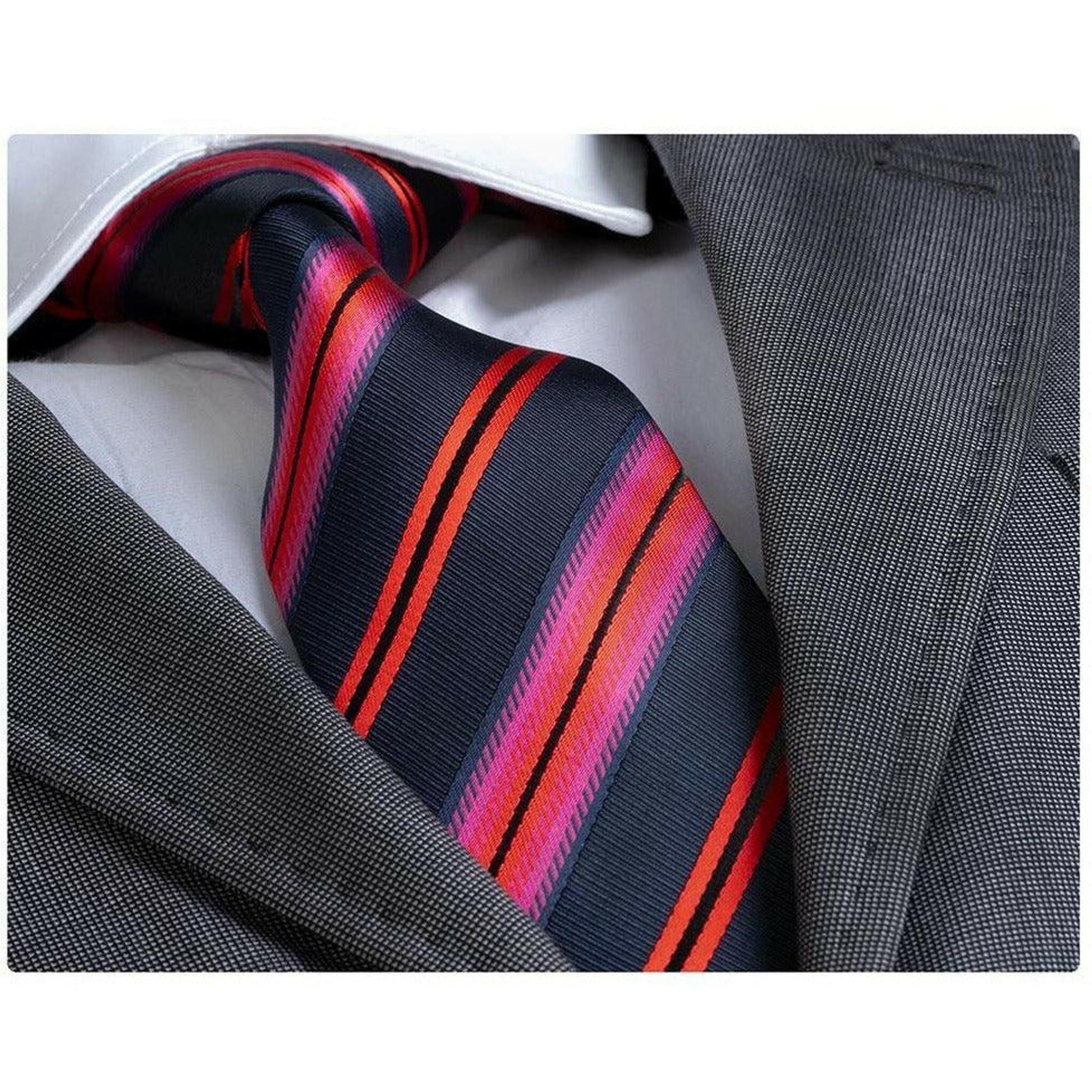 Men's Navy Blue Red Stripe Silk Neck Tie