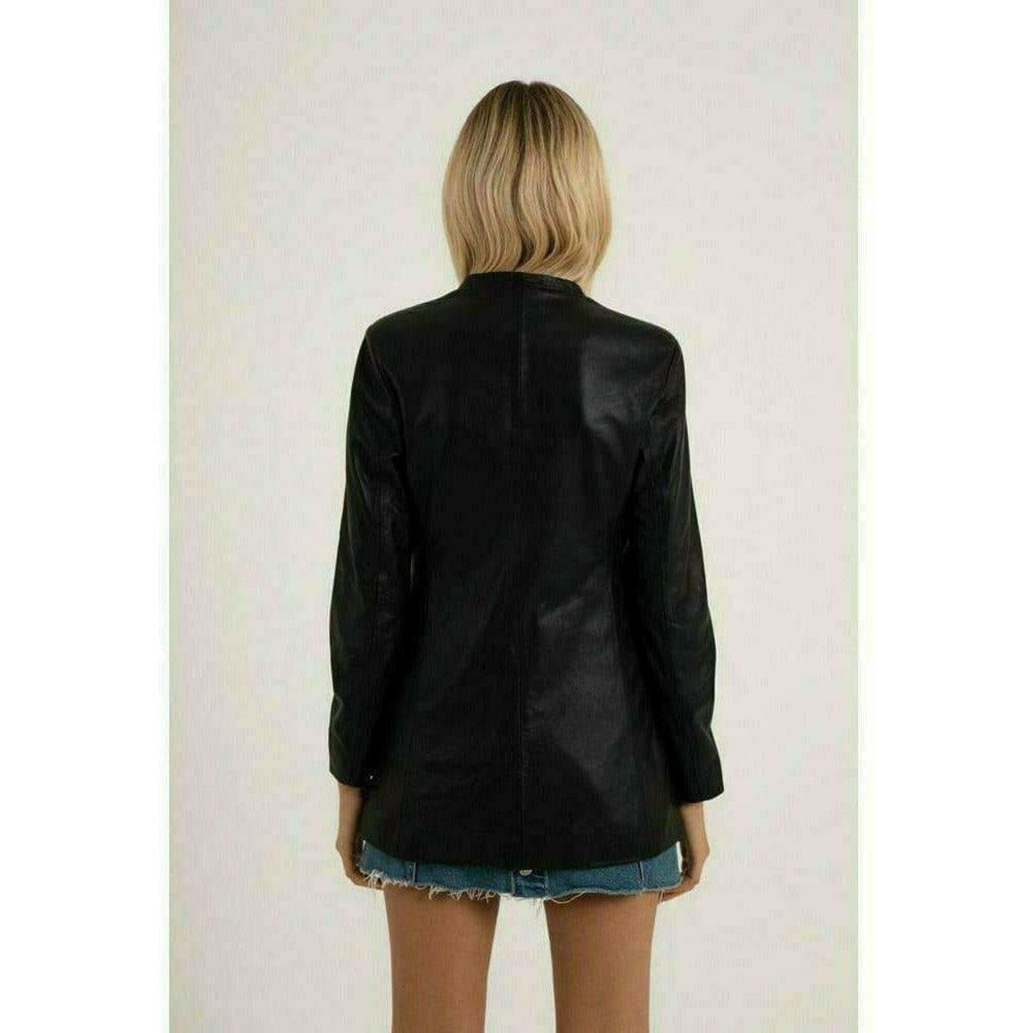 Made of soft lambskin, this Basic Biker is a staple of Anna P's collection. This Blazer is glamorous, simple, versatile, elegant. Internally lined with a black stretch viscose.