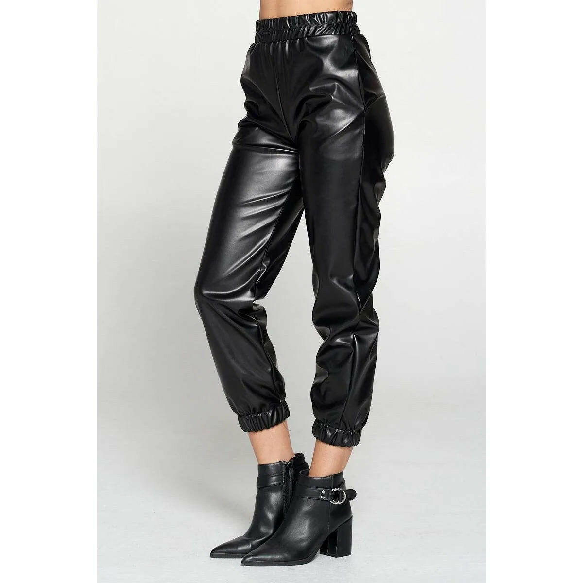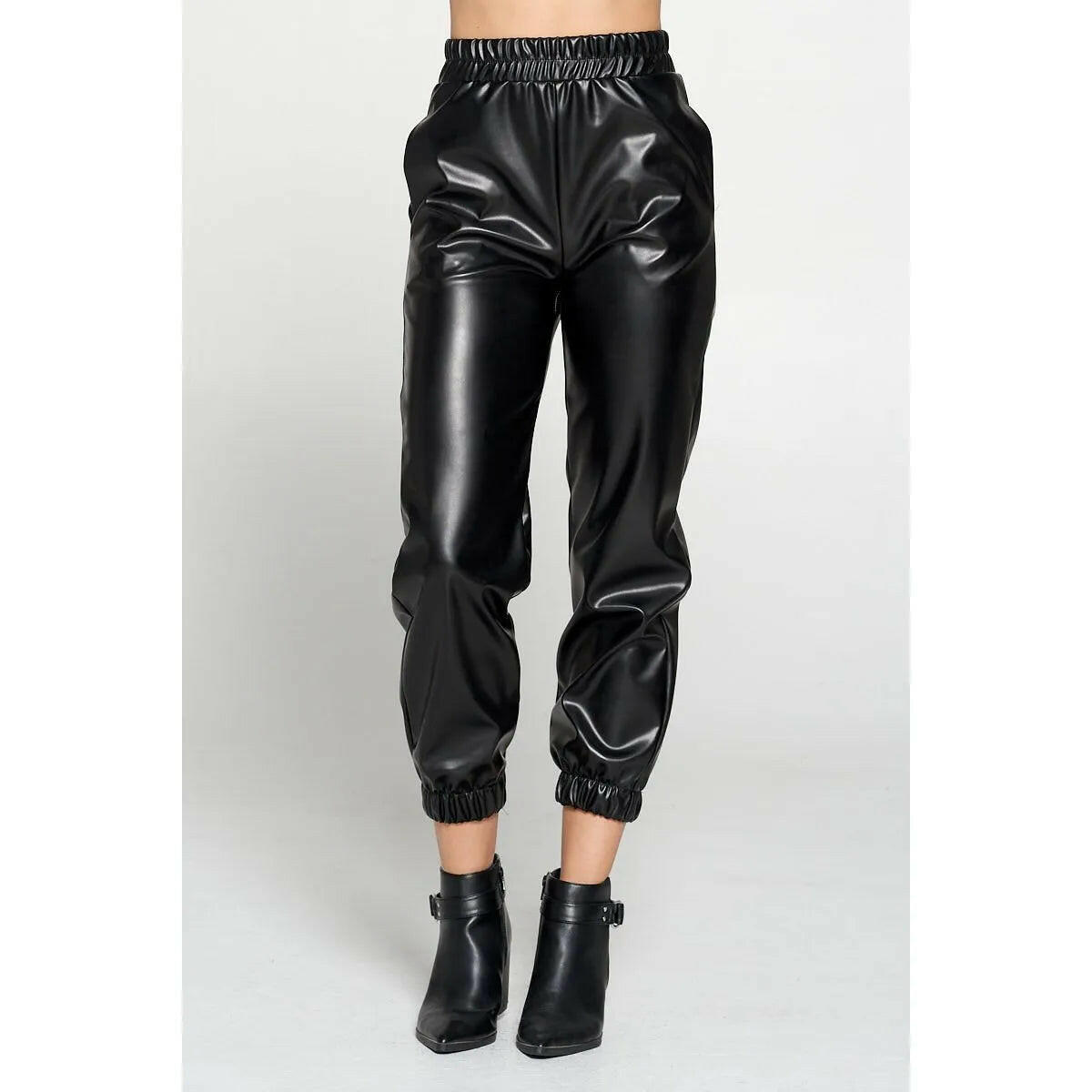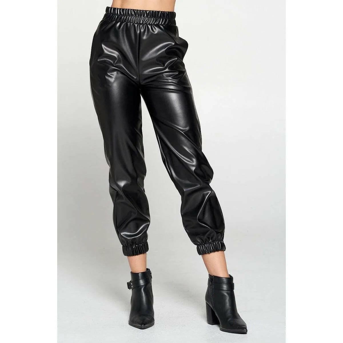These faux leather pants feature a stylish bottom cuff and are versatile enough to pair with tennis shoes, flats, or a chic heel. Experience comfort and style with these exceptional pants.