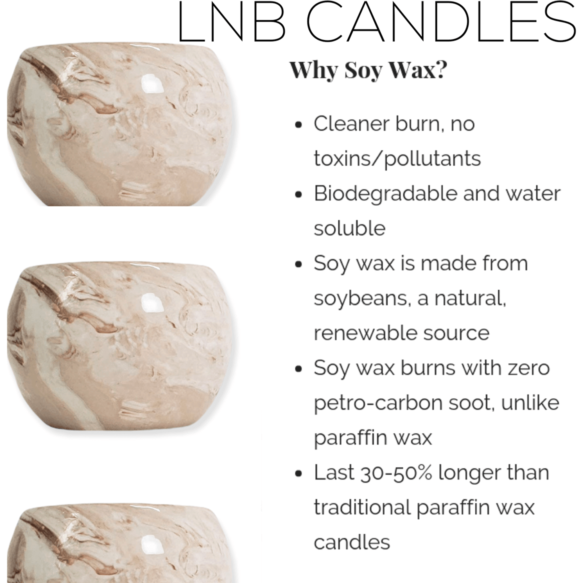 Transport yourself to the beaches of Hawaii with a simple lighting of the candle.  The candle holder with its swirls of sand colored marble is beautiful in any home decor setting.