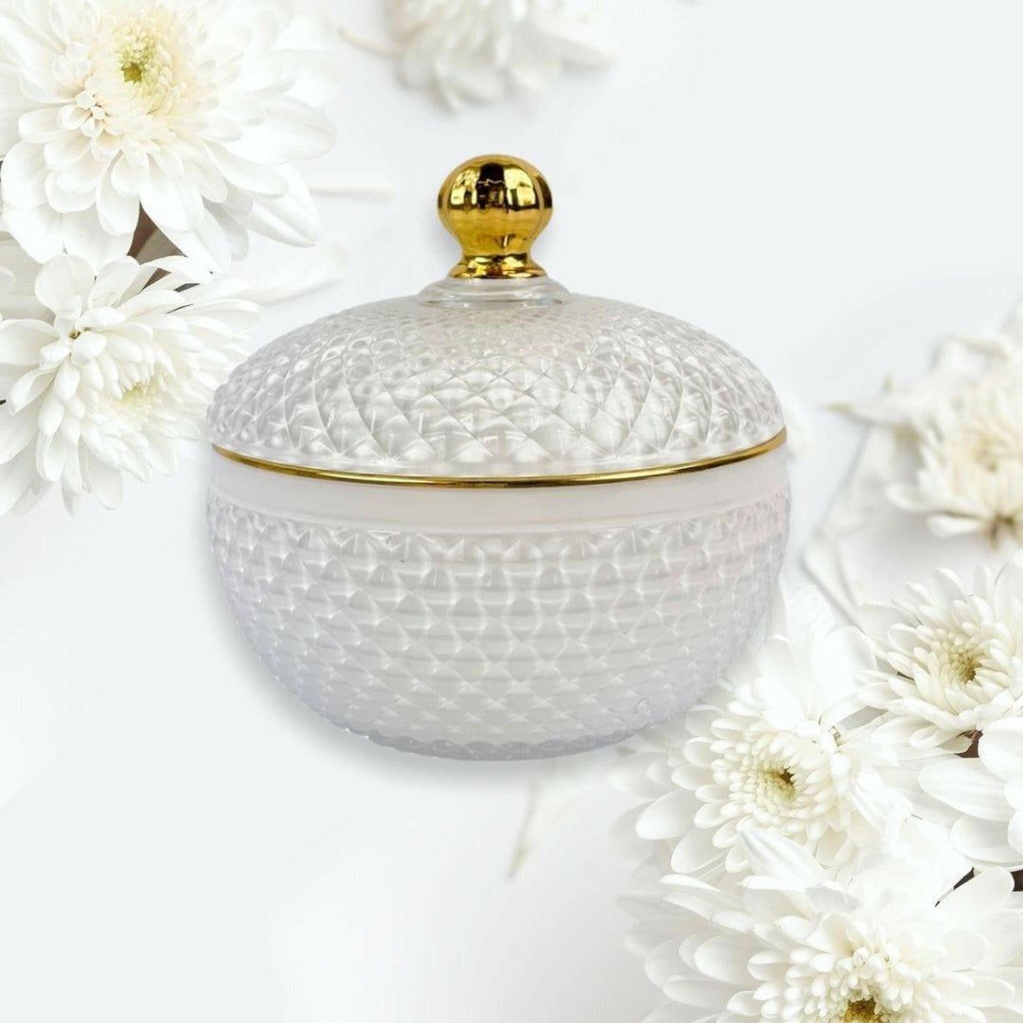 With each flick of the candle,the scent will captivate you. Set inside a gorgeous centerpiece of glass art this candle holder will bring elegance into any room of your home.