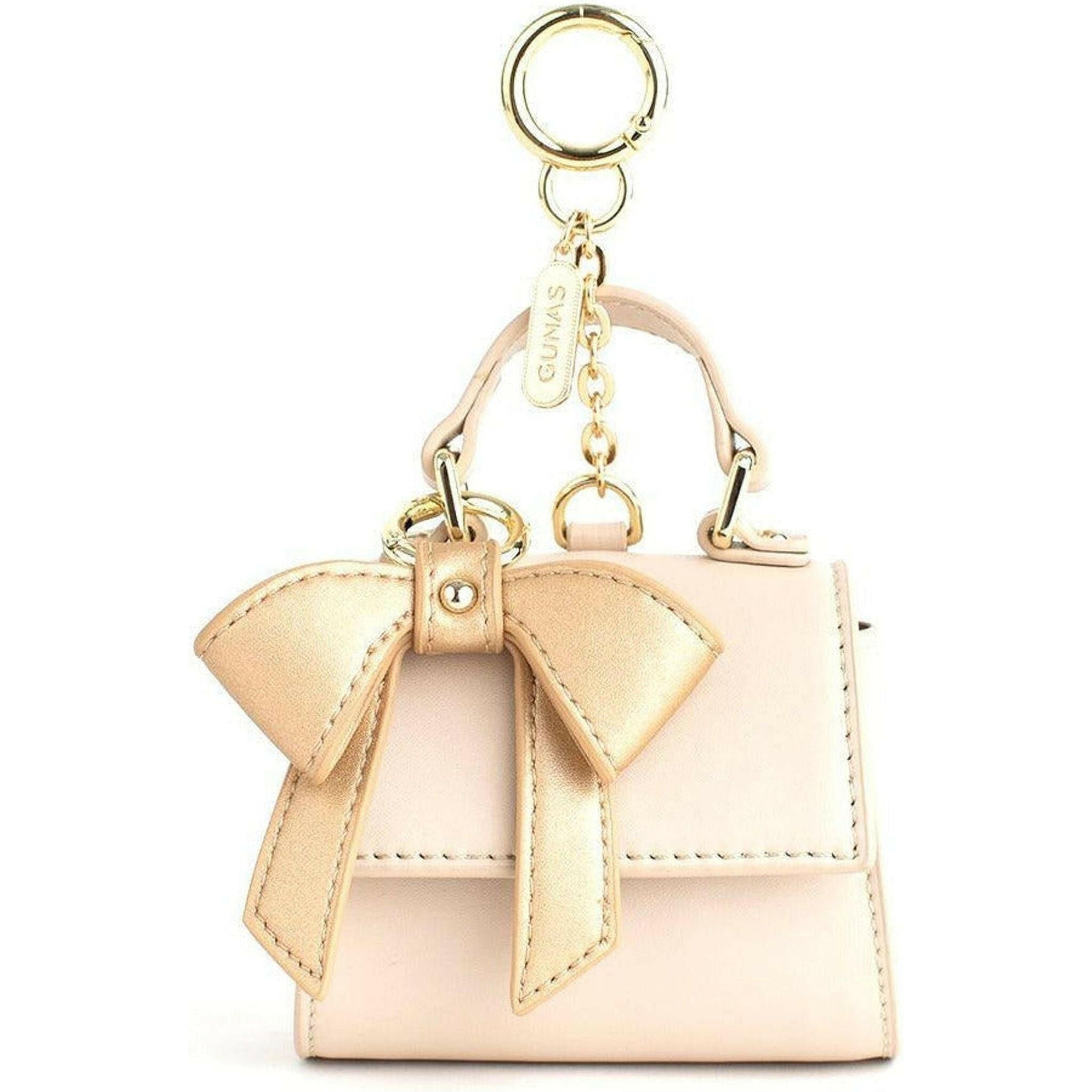 Scoop up this cute Cottontail Mini - Beige Vegan Leather Bag Keychain and use it as a bag charm or a keychain or both. Large enough to hold your AirPods, keys or small change. It is sure to steal your heart while keeping your belongings secure with its magnetic closure. We even made its bow removable! So buy it in as many colors as you like and swap the bows to customize.