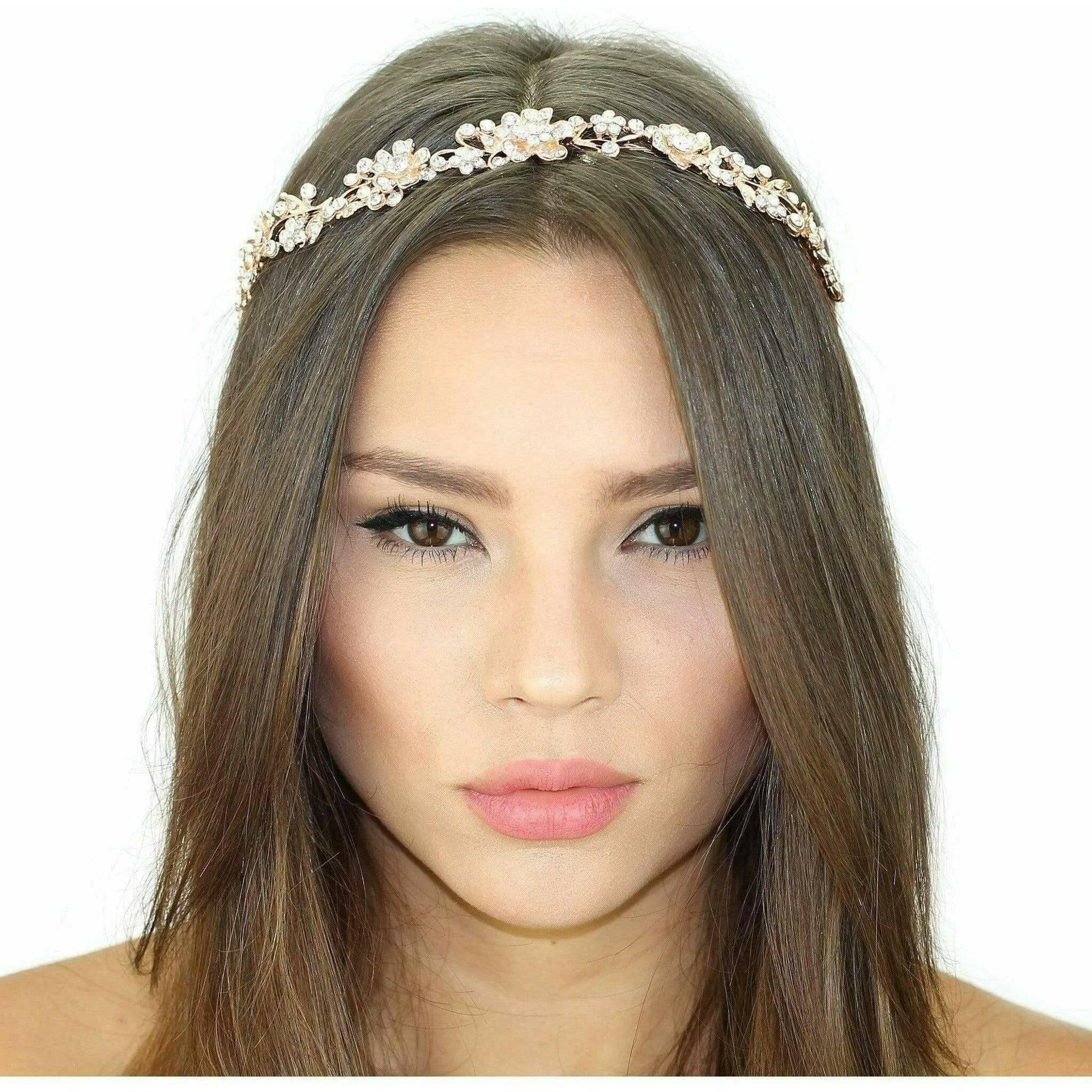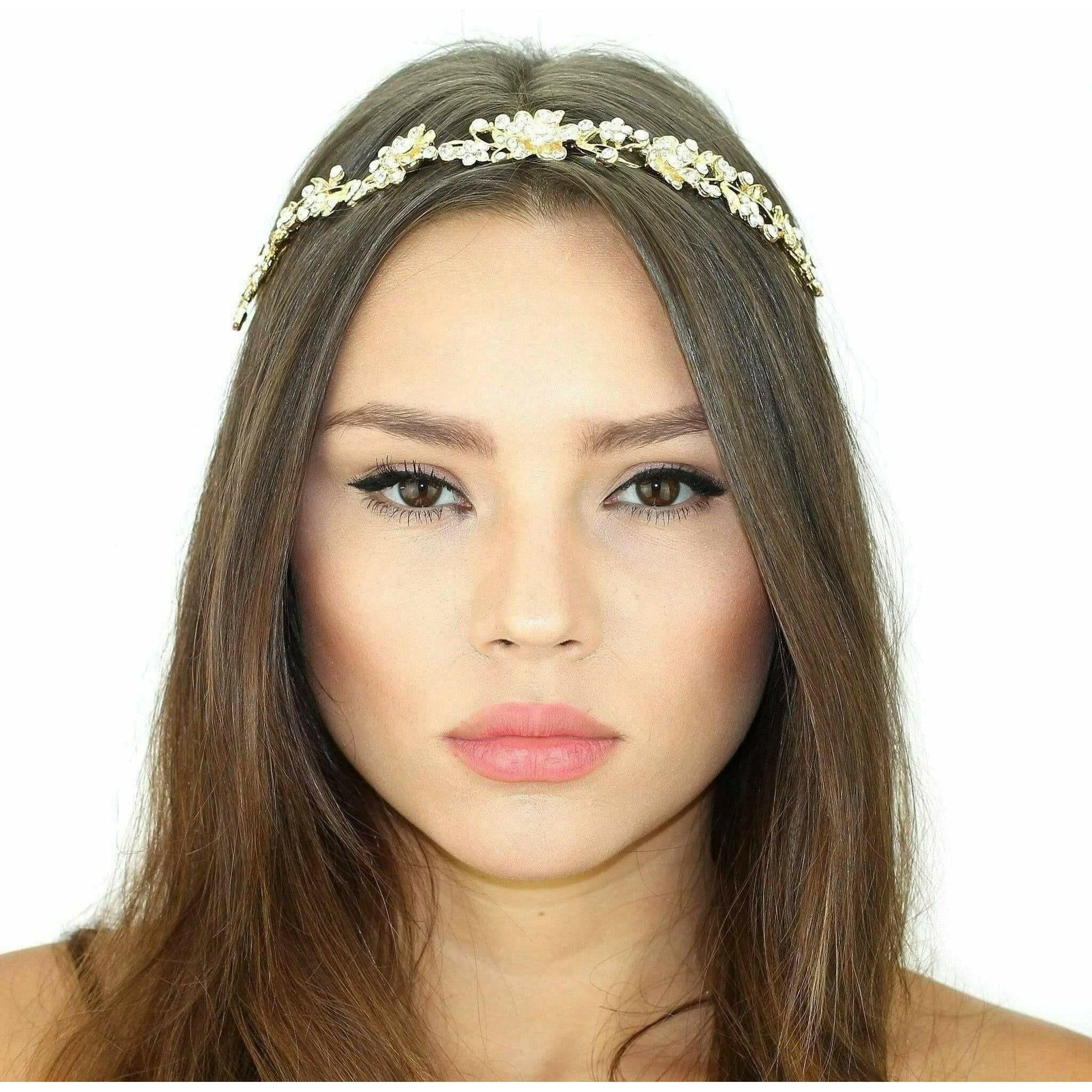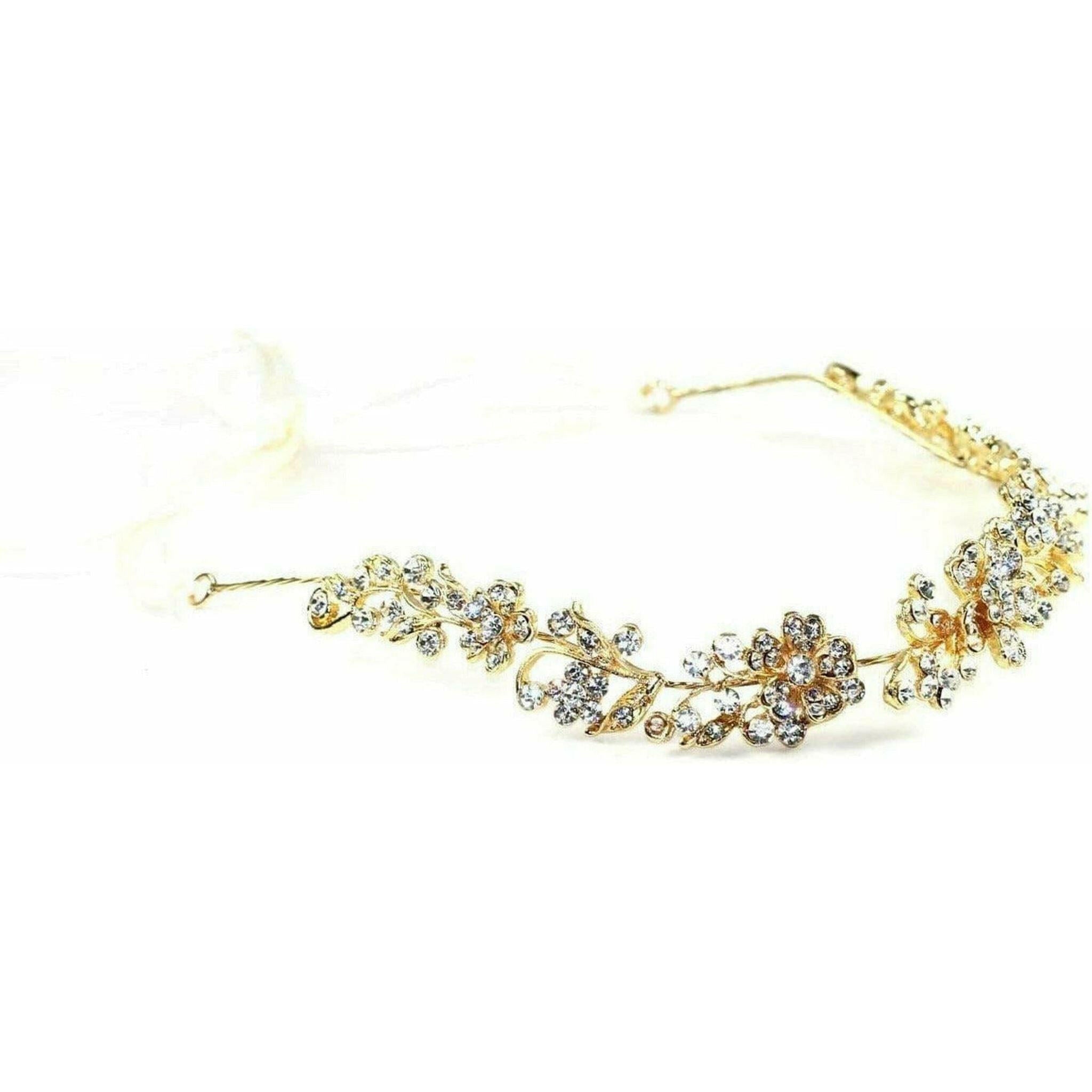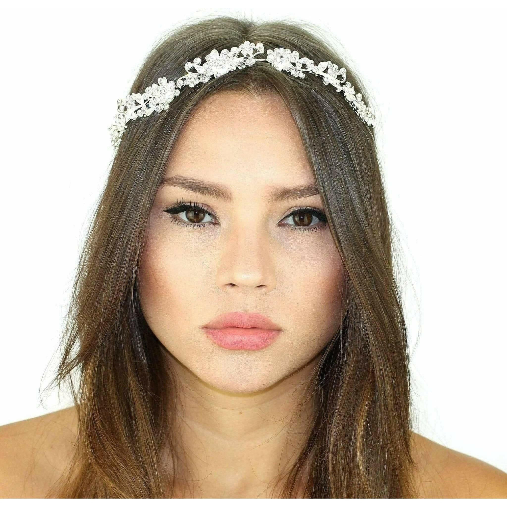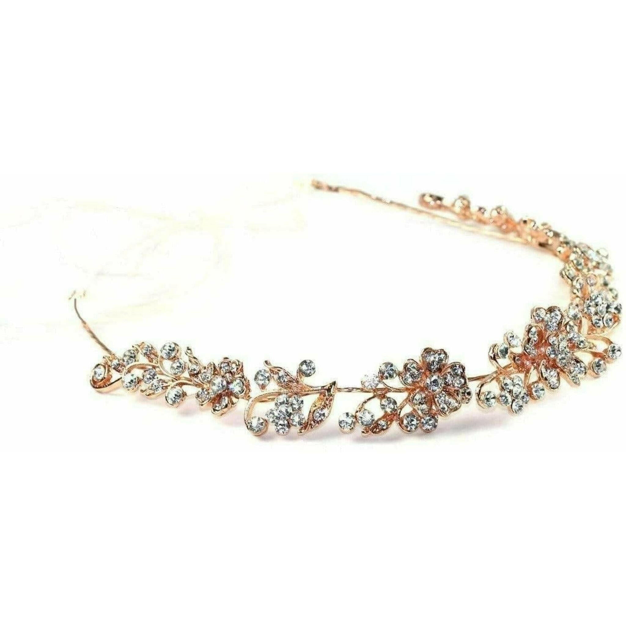 A sparkling wired vine headpiece covered in clear glass rhinestones. The vines are attached to a wire and can be molded around the head. Silk ties at back for a perfect fit.