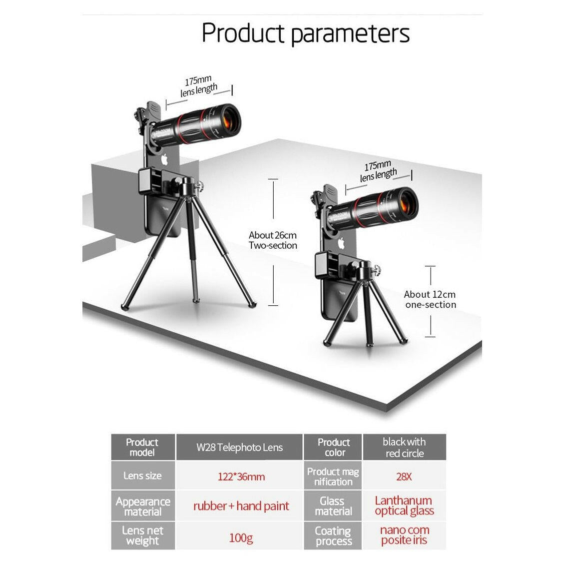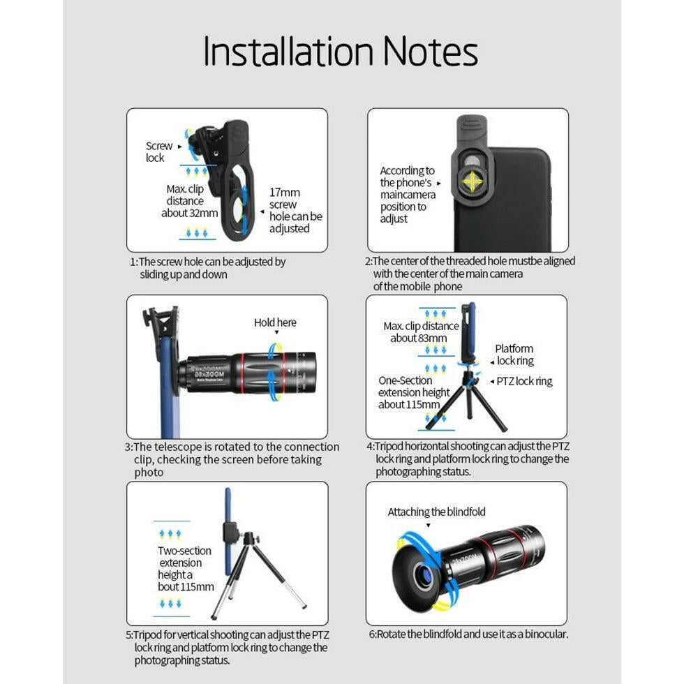 Dragon Bluetooth Ultra HD quality 28X Telescope Photo Lens for Mobile Phones. Comes with 3 extra theme lens and a Bluetooth button. The Telescope lens can help you shoot farther and clearer with its 28x Zoom capability and can be used as binoculars.