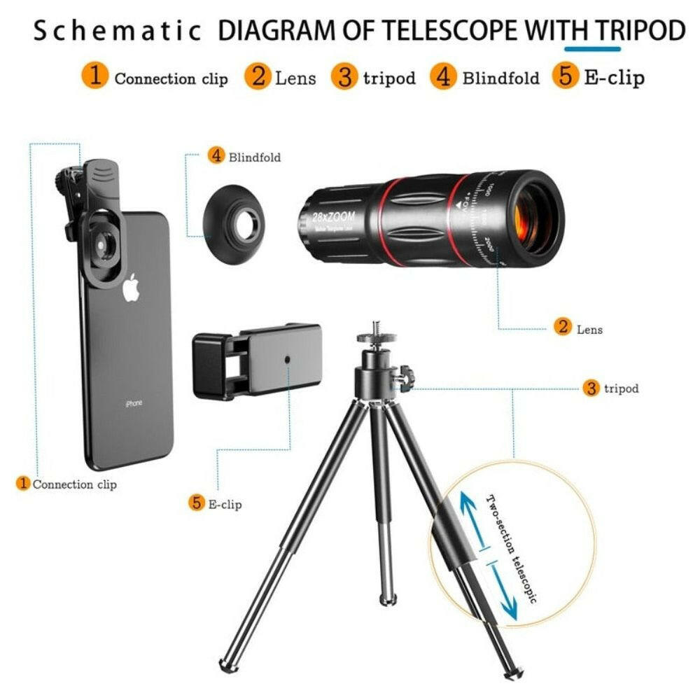 Dragon Bluetooth Ultra HD 28X Zoom Telescope Lens Tripod Kit
