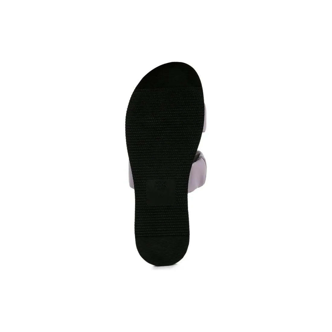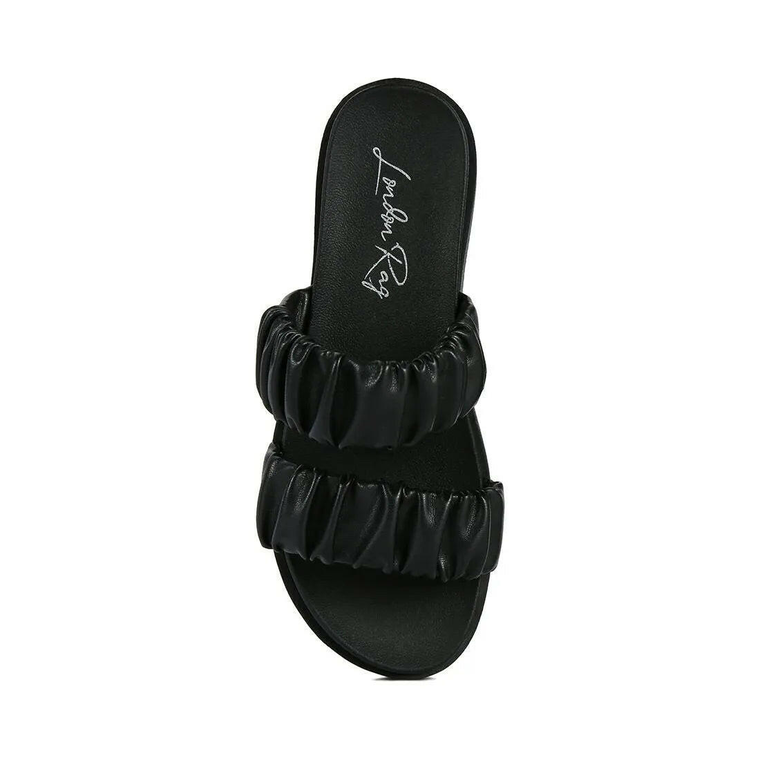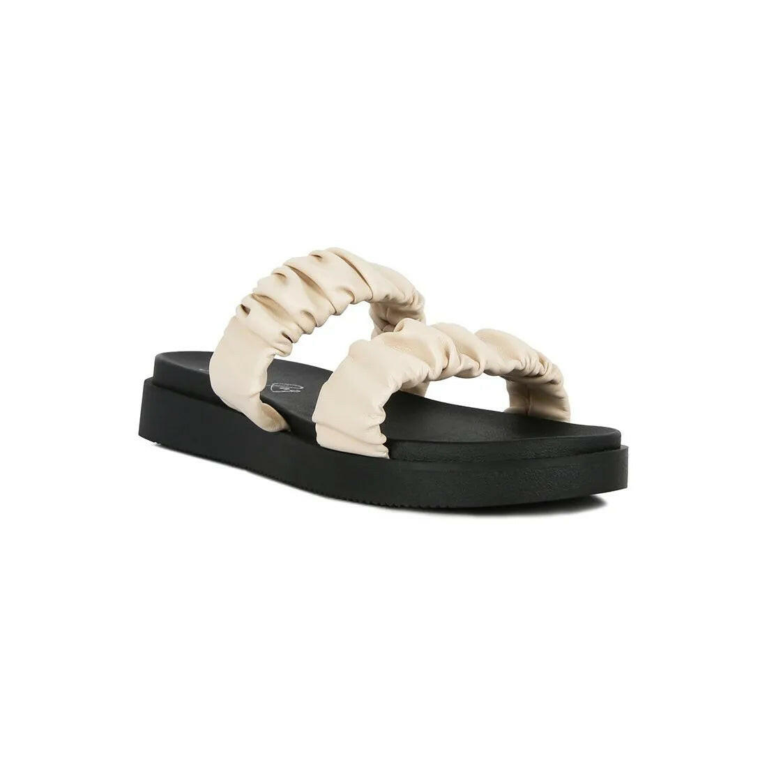Soft and comfy, this pair of ruched strap slider platform sandals is a perfect leisure shoe. Comes with a padded insole and anti-slip rubber outsole.