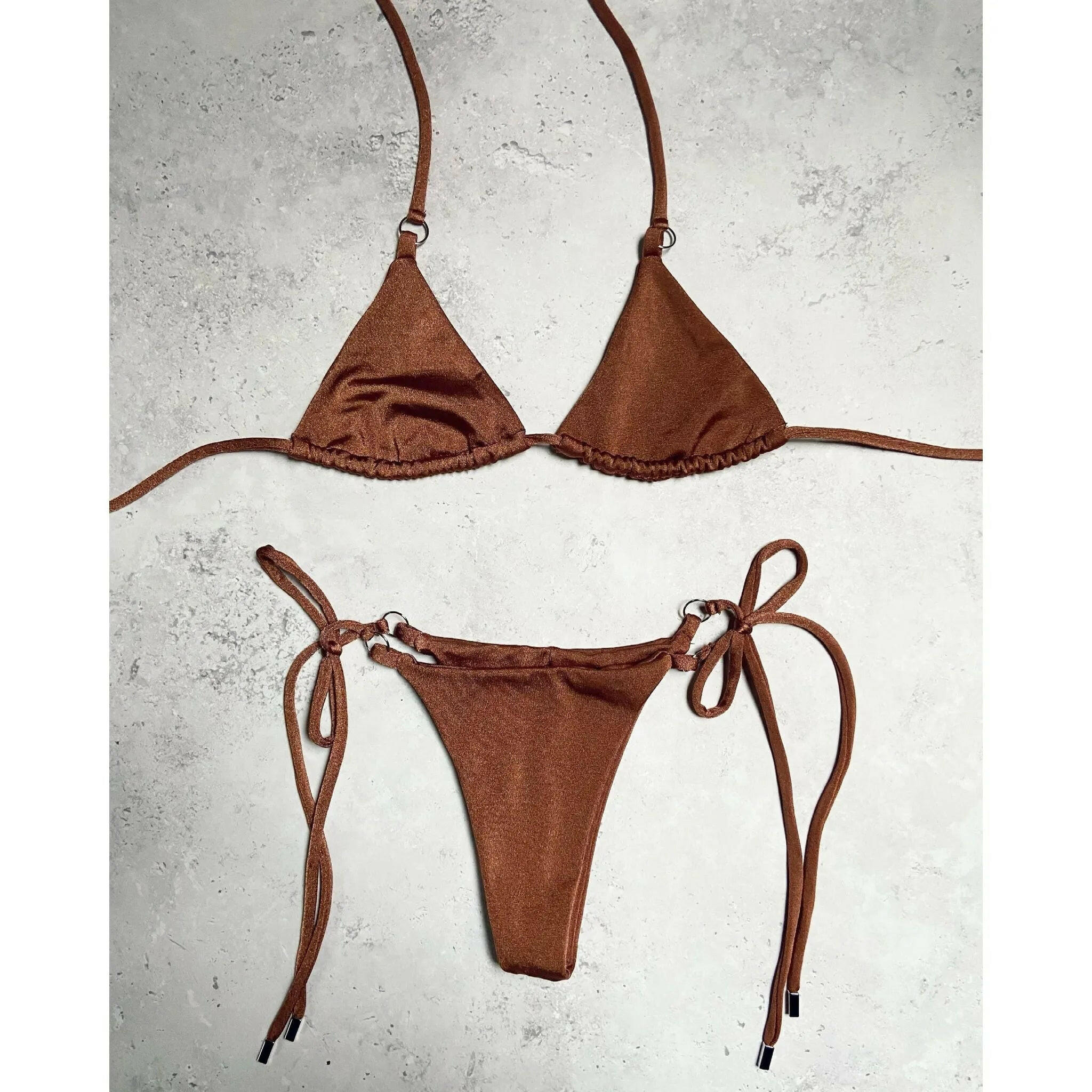 These versatile Essential Bottoms Bronze Shimmer add a subtle glow to your look this summer. Model Ali wears a size XS in top & bottom.