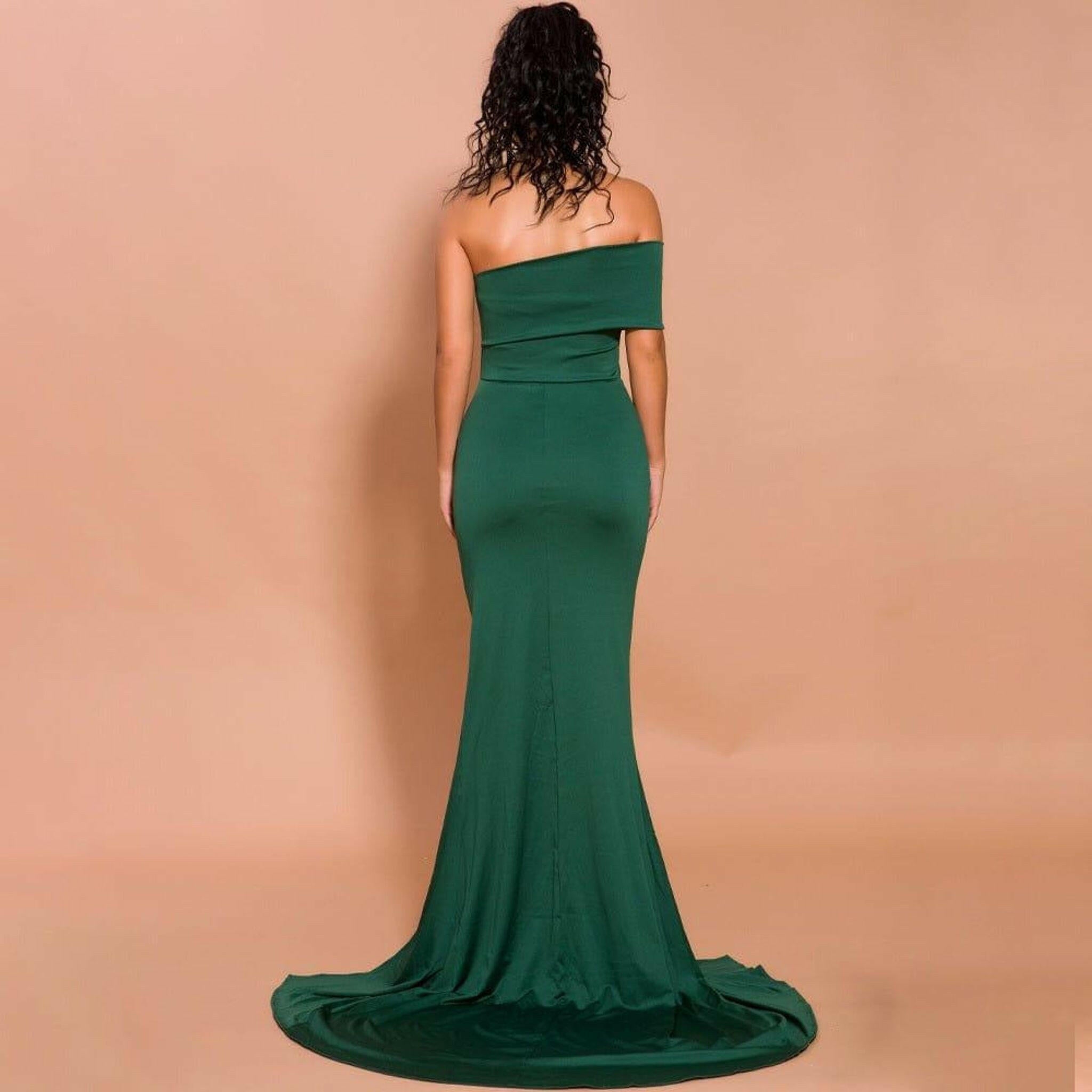 This high slit green evening gown is the perfect choice for any special occasion. With its plain and elegant design, you'll look and feel beautiful while turning heads on the night out.