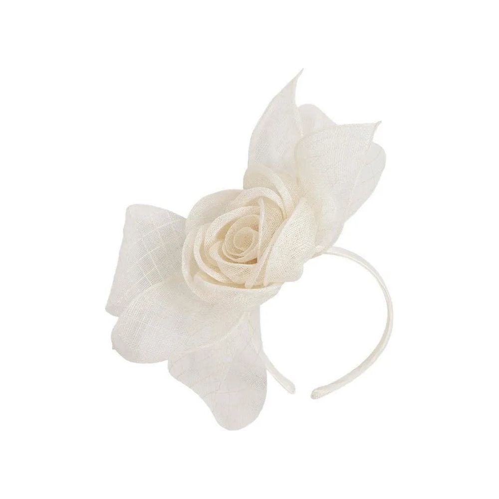 Beautiful cream hand-made bow with flower centre. Handmade from real sinamay, this fascinator will be a complement to any outfit.