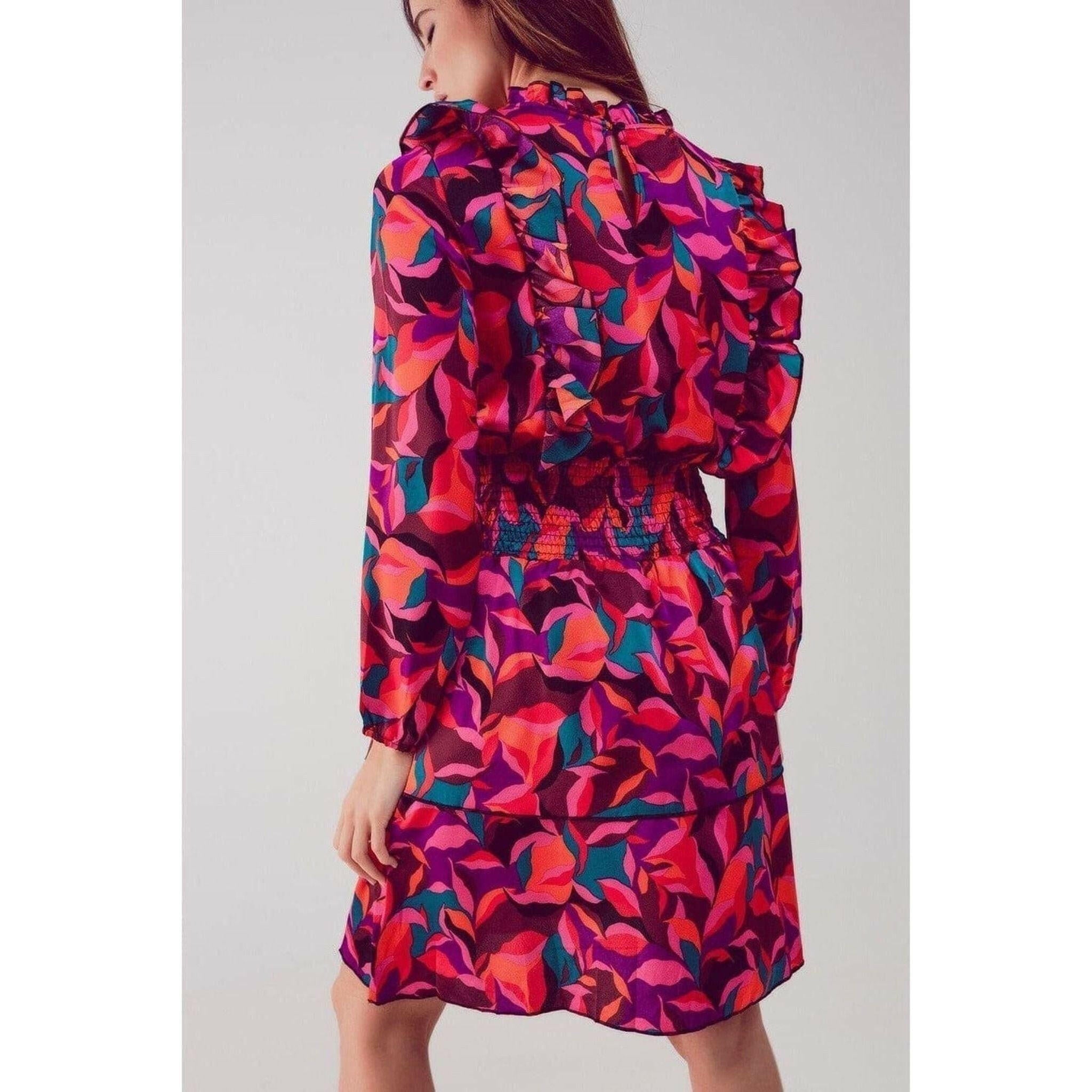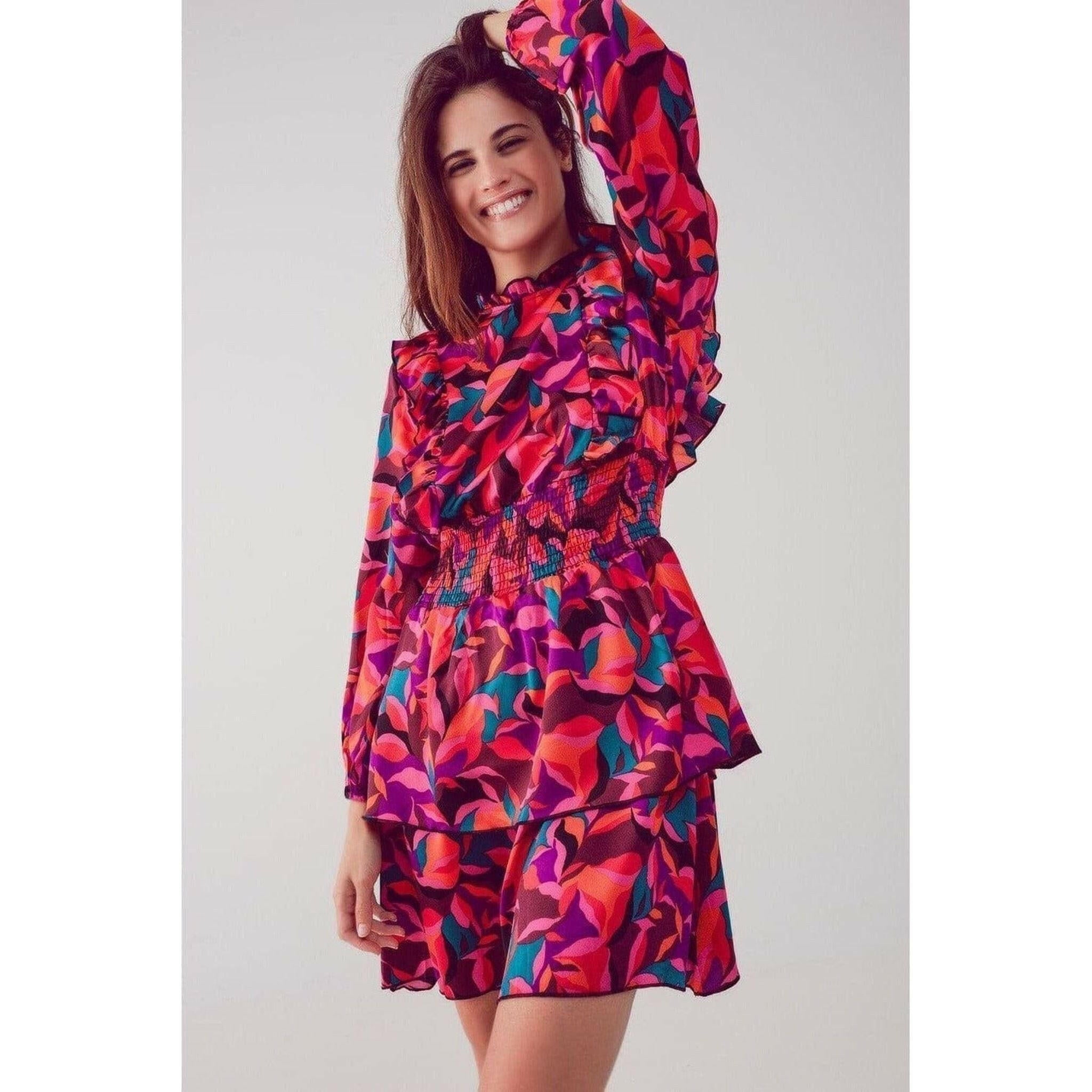 Layered Frill Mini Dress in Fucshia Floral