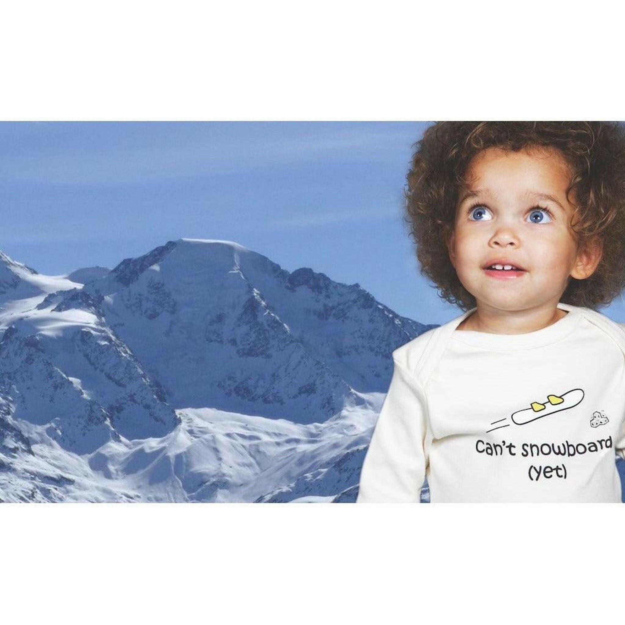 Not quite ready to try a nose and tail roll yet but they’ll love it when they get the chance. Funky baby clothing for the tiny baby boy snowboarder-to-be.
