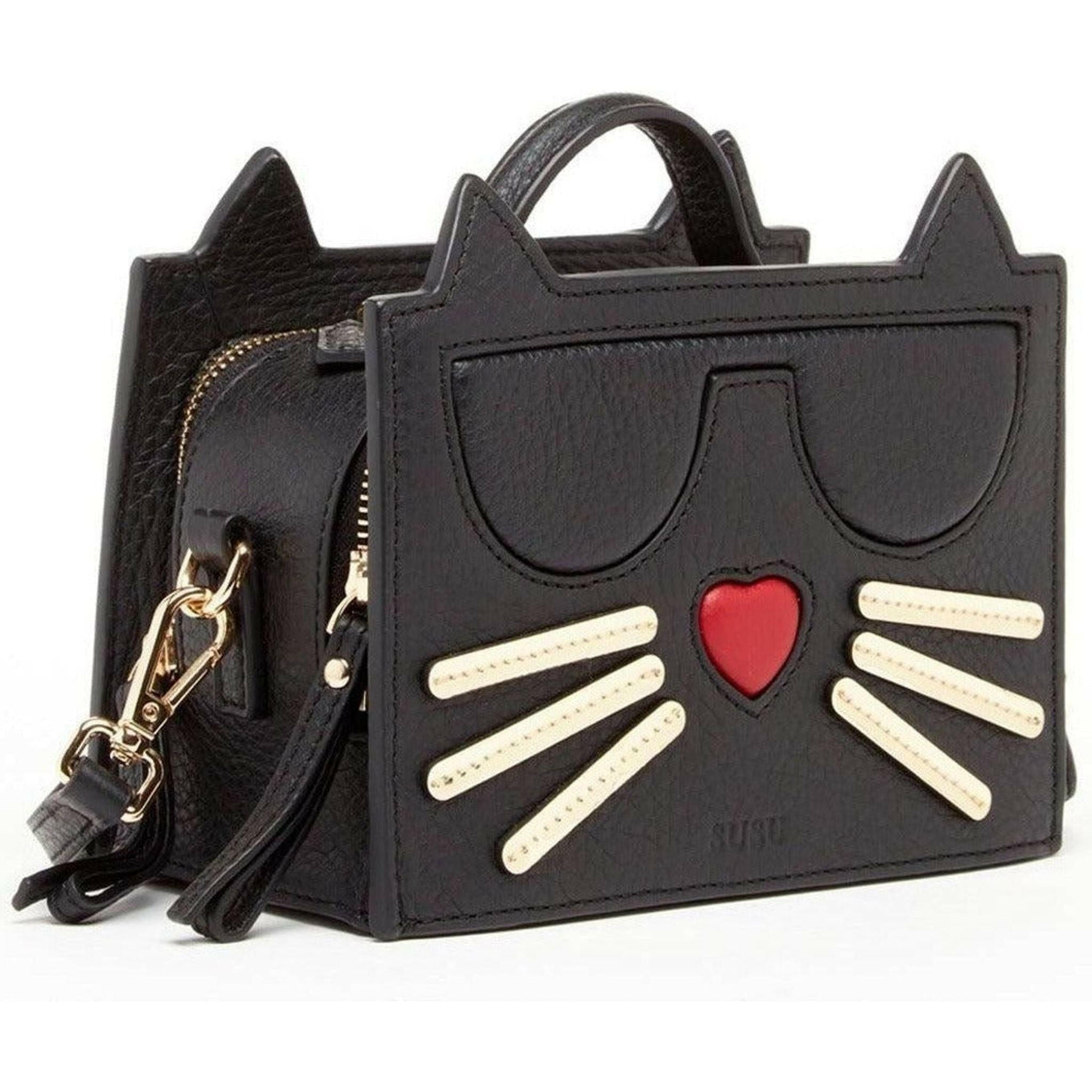 This stylish black cat crossbody bag is made from soft, supple leather. Features a compact design, ideal for everyday use, while the adjustable strap means it can be worn crossbody or over the shoulder. The playful cat design adds a touch of whimsy to any outfit.