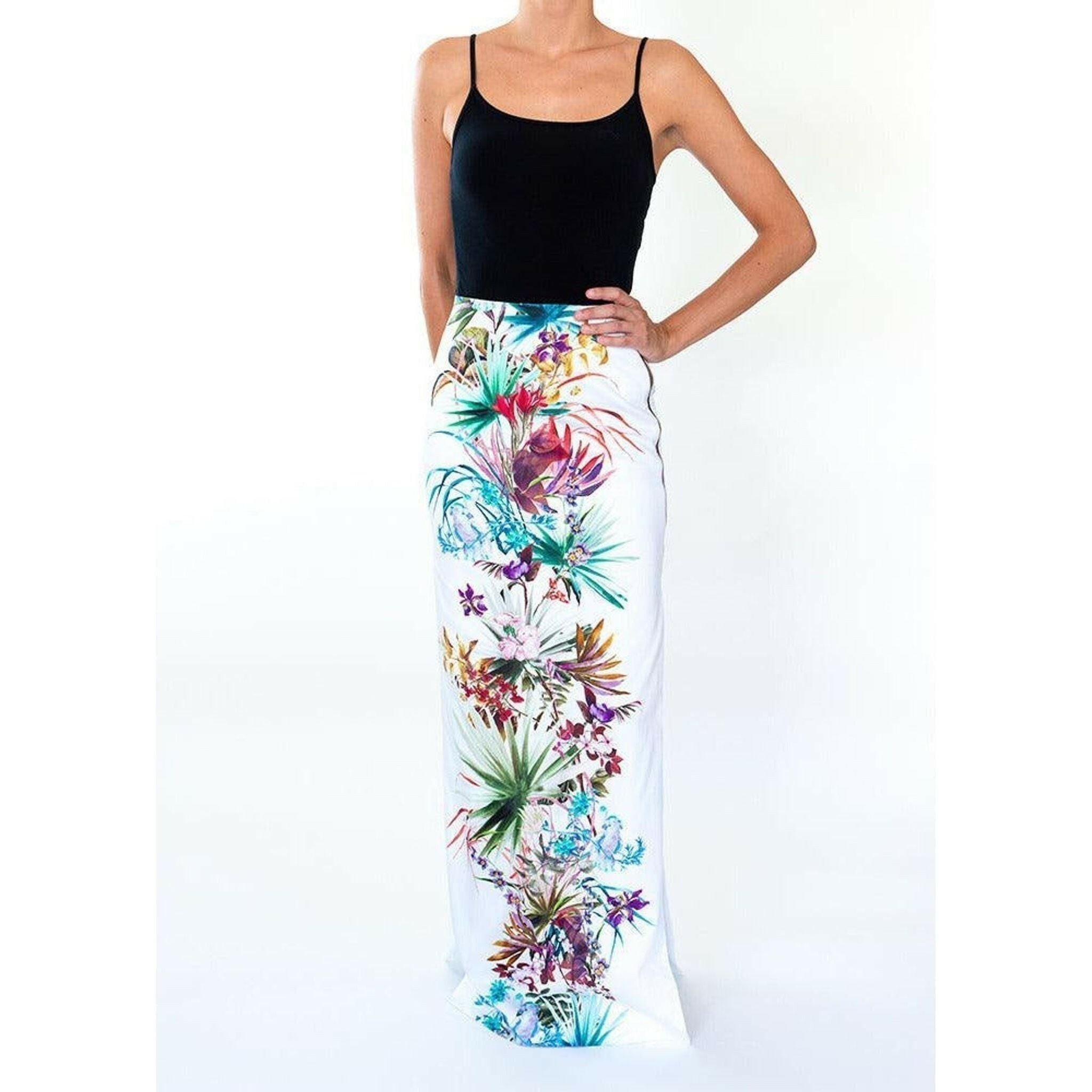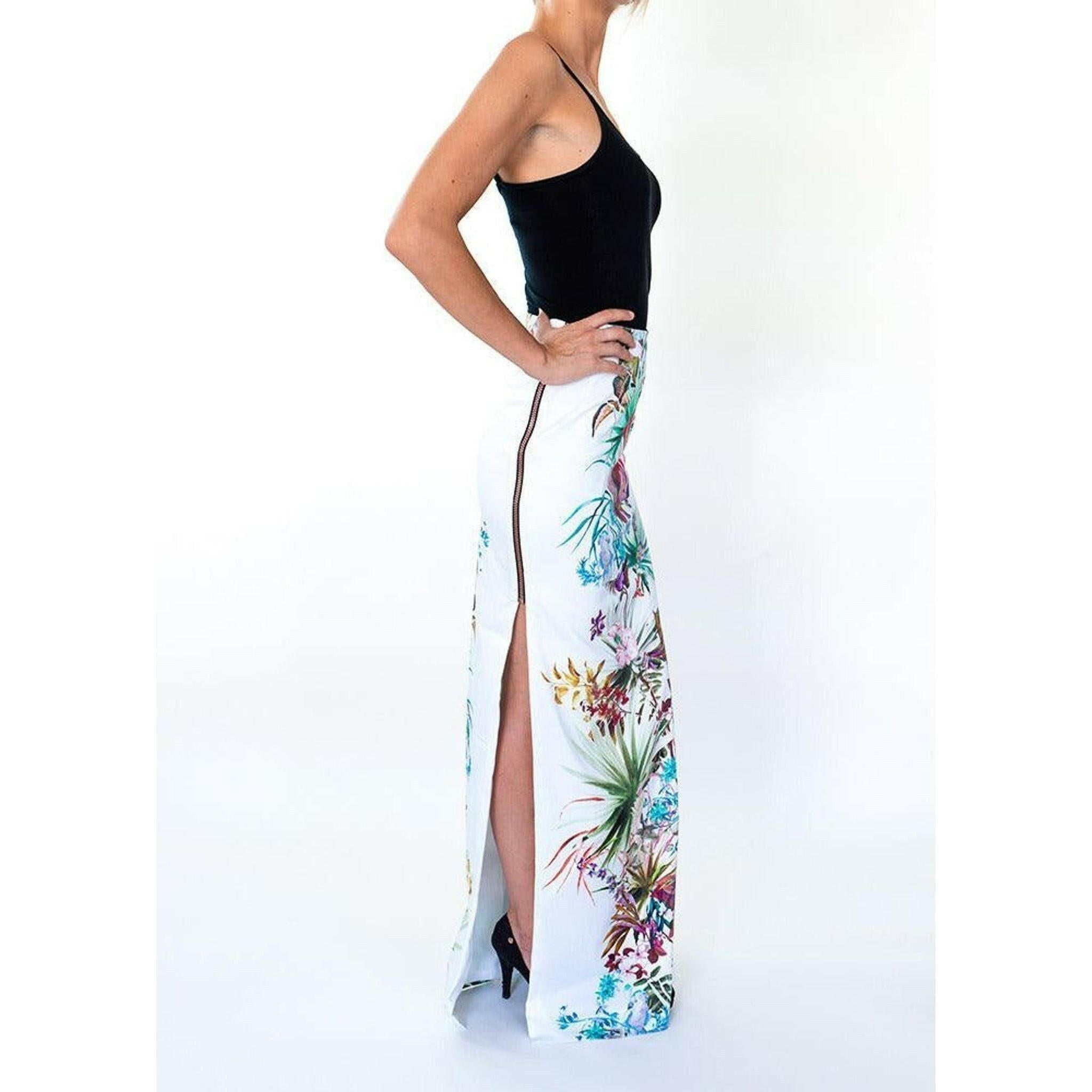 The vibrant tropical print, is connected front and back by the short zip, giving you a great toned silhouette. The right choice for a night in the spotlight.