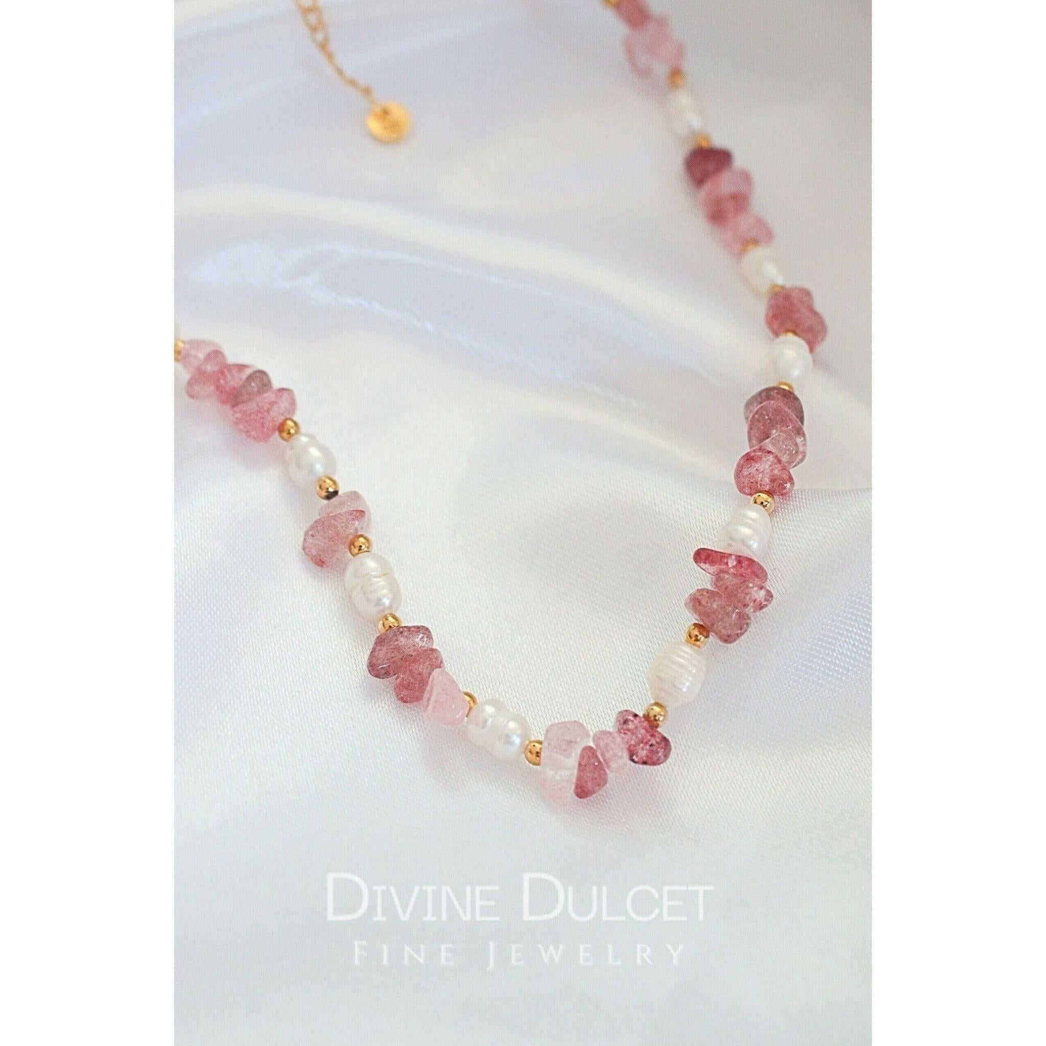 • MATERIAL: Natural Strawberry Quartz beads in chips shape and freshwater pearls
