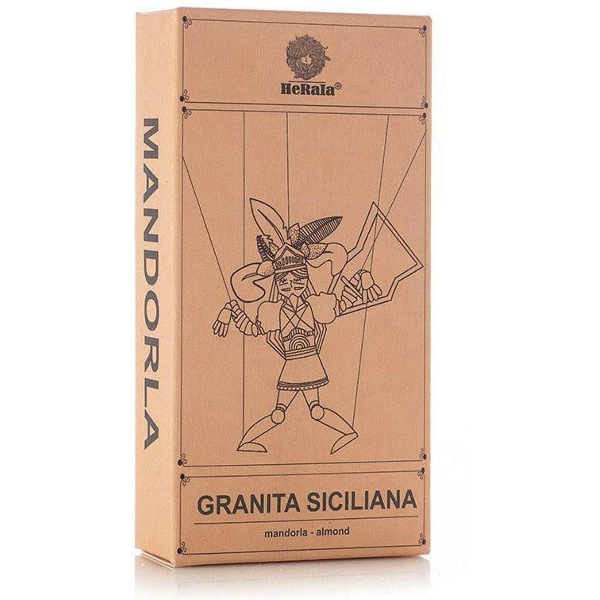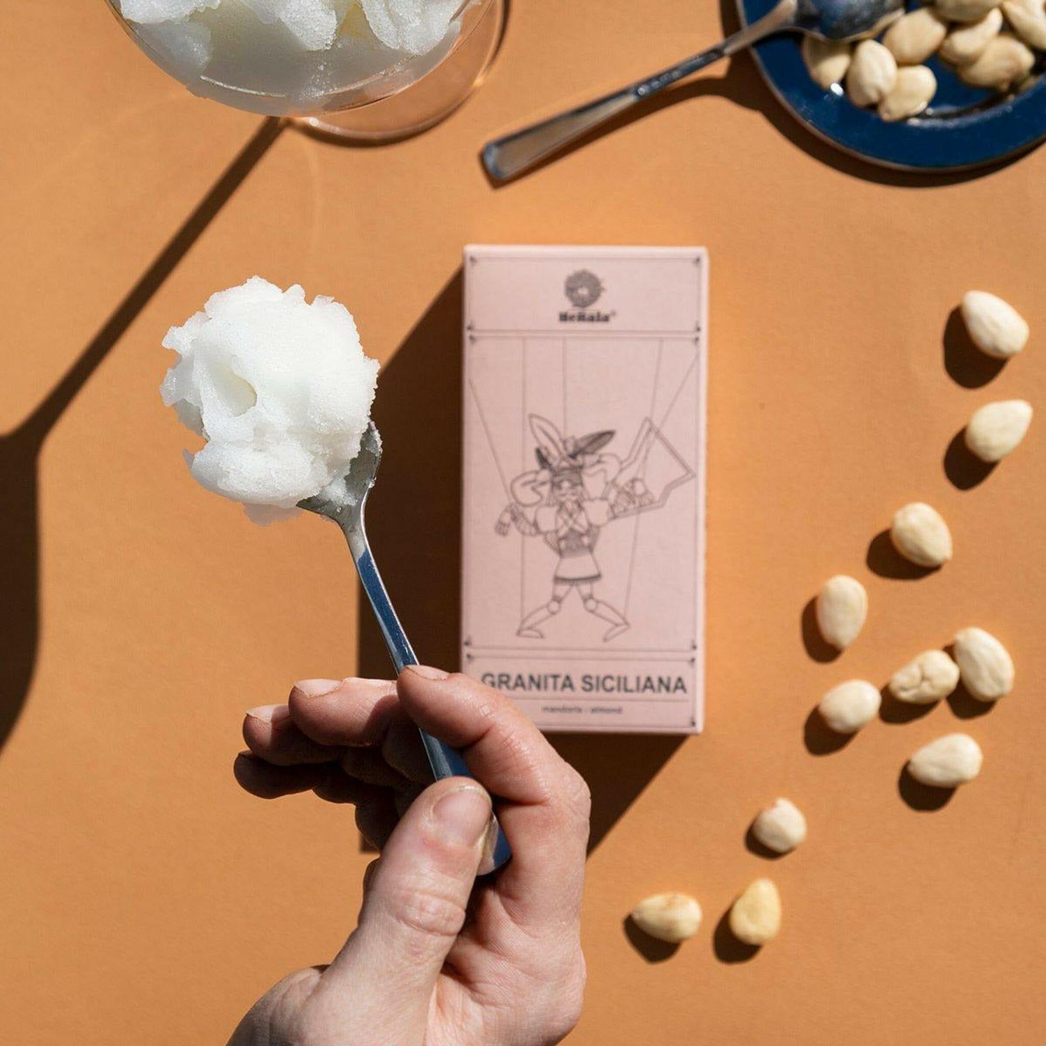 A liquid preparation to make the authentic Sicilian granita with toasted almond flavor directly at home. Just follow the instructions on the back label or on the explanatory page to make this special Sicilian granita directly at your home in 20 minutes.
