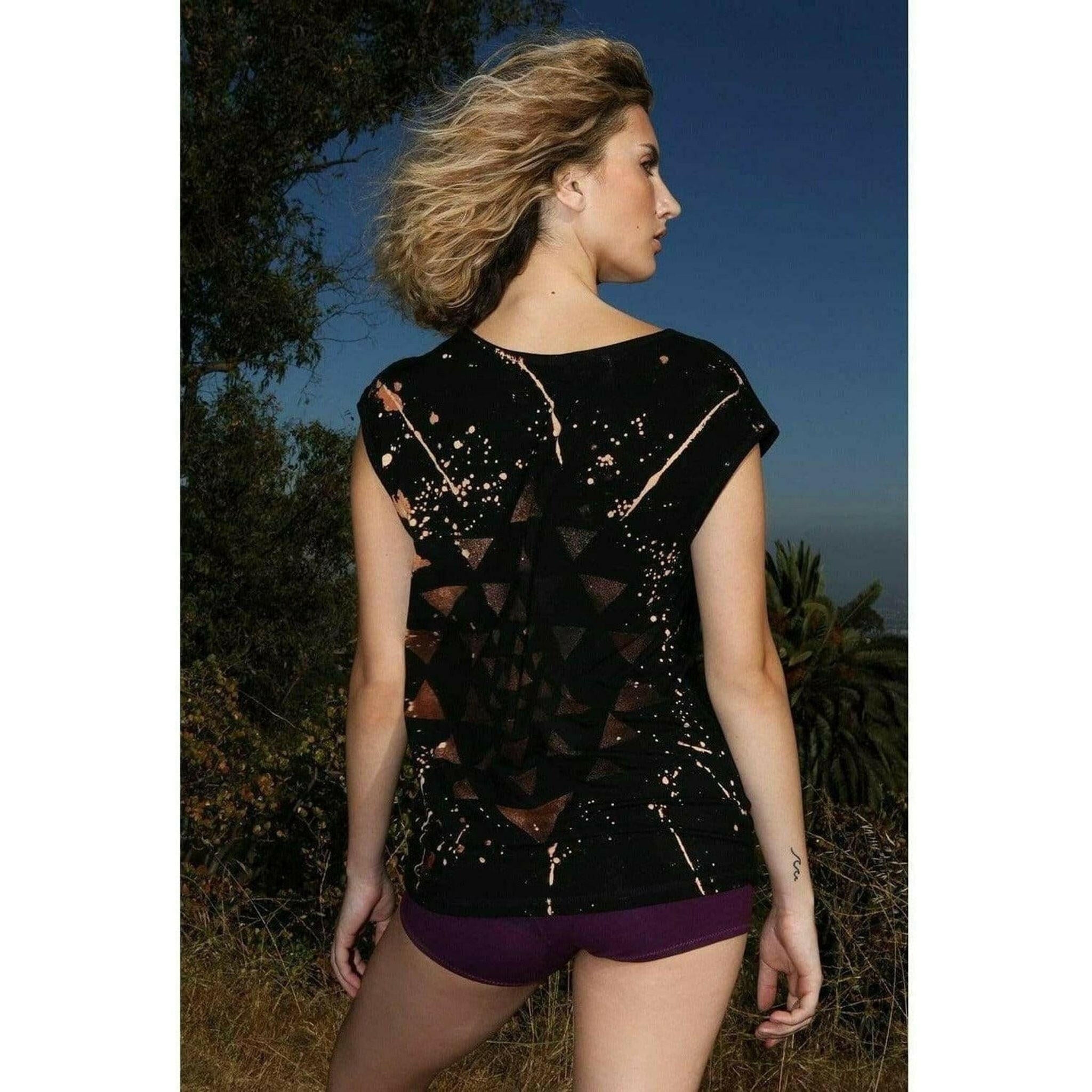 Star Yantra Yoga Tee Black with Gold
