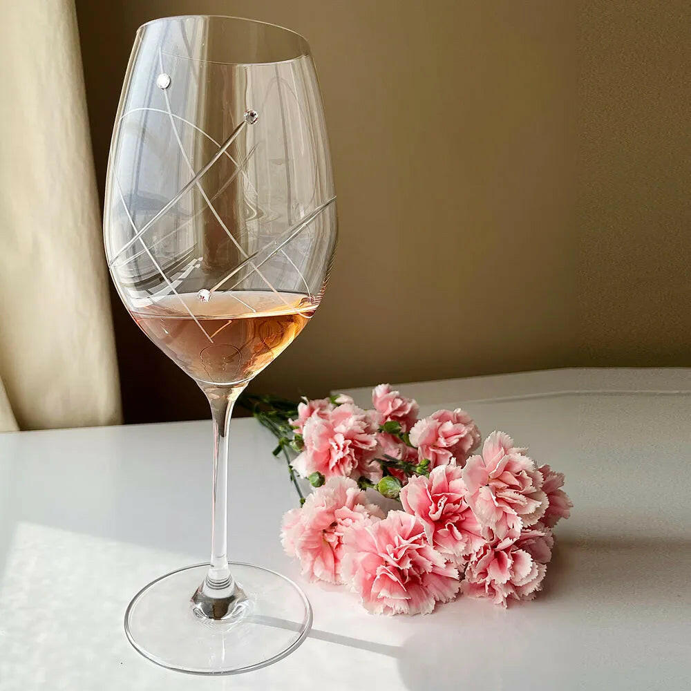 When a wine in the glass is swirled, literally hundreds of different aromas are released, which can only be detected with the nose. The Swirl elegant wine glasses from lead-free crystal offer the perfect space for your wine to breath so you can smell aromas, improving its taste and getting the best experience. The handcrafted details with clear Swarovski crystal stones add an exquisite look and feel.