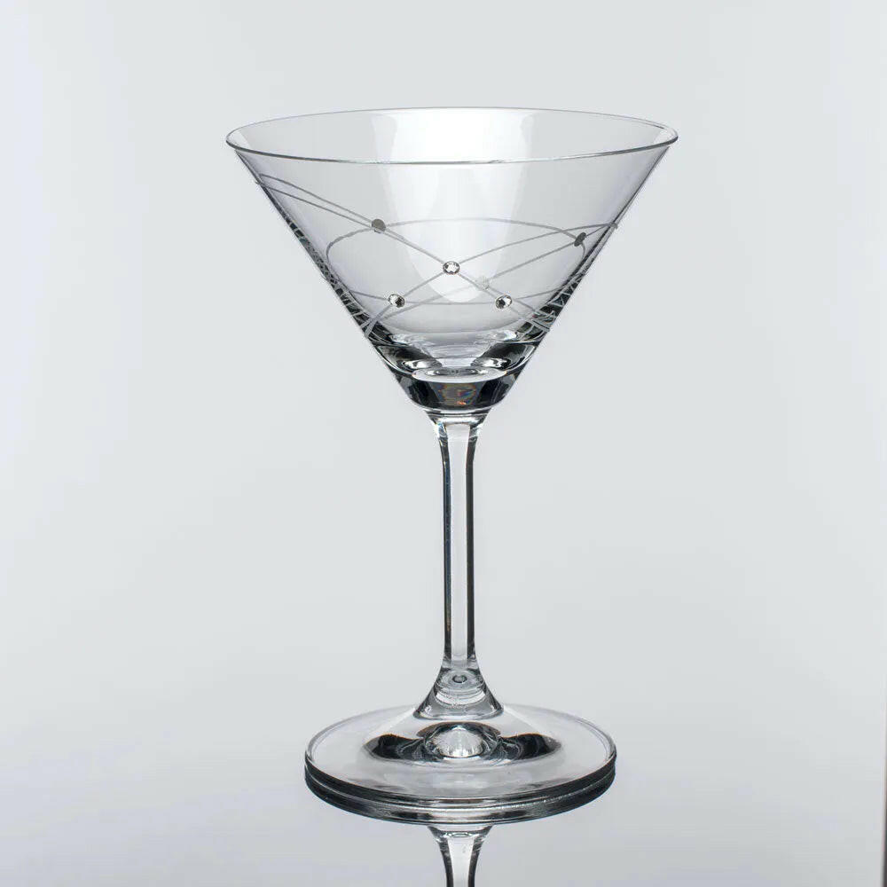 The Galaxy Spirals Martini Glasses are perfect for your cocktail parties or any festive gatherings. Designed to enhance the enjoyment of beverages the sparkling glasses with handcrafting design are one of a kind gift for someone special (including you). The design of this collection features three spirals crossing with each other at six points. The illusion of a galaxy is enhanced with beautiful crystal stones presented as stars and set in each crossing of three spirals. They are grouped by three on both sides. There are six crystal stones on a glass.