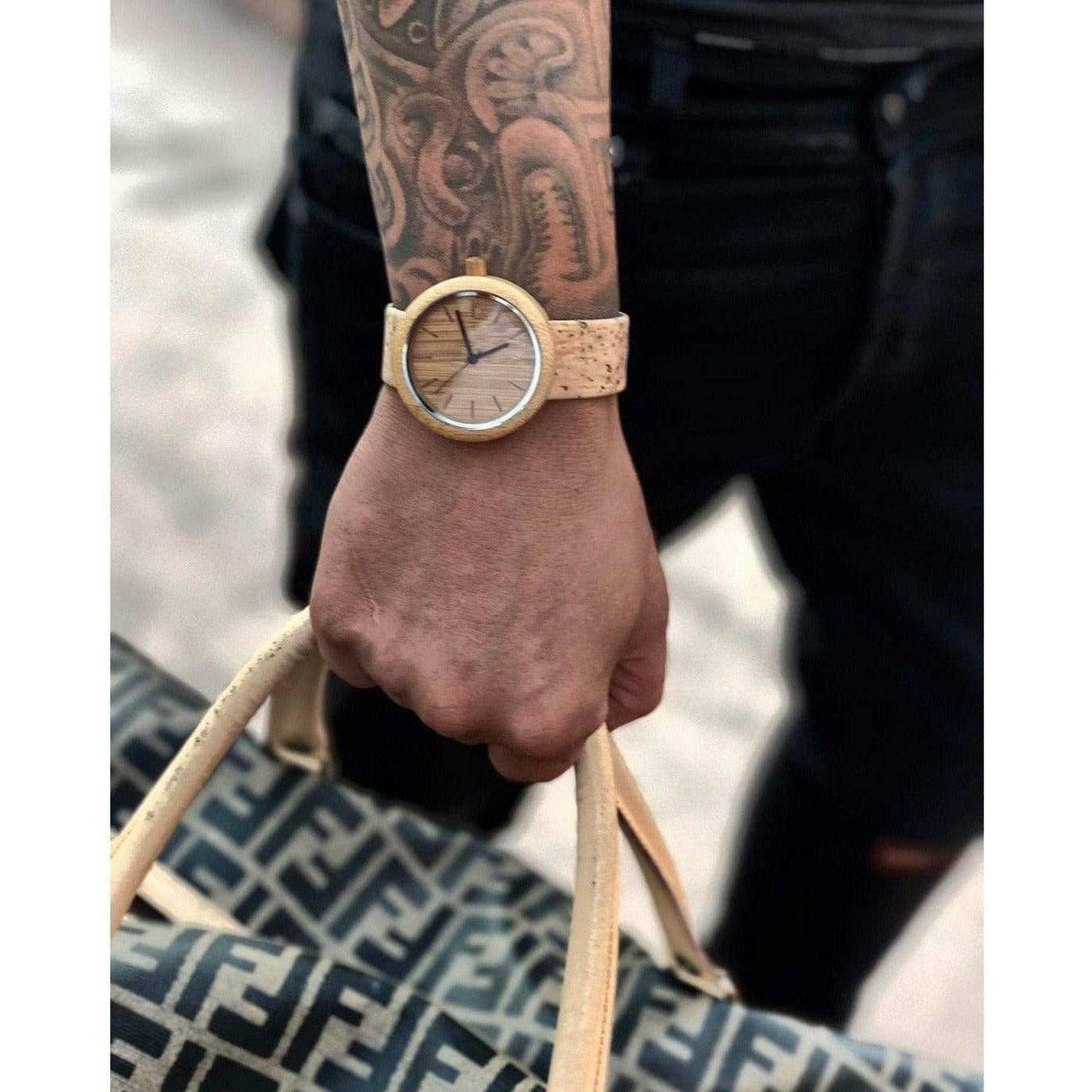 The Panda Watch features a premium minimalist design fused with sustainable elements. Every watch is handcrafted by blending natural materials like Bamboo and Portuguese cork with a Swiss Movement internal mechanism, creating a timepiece of exceptional quality and design.