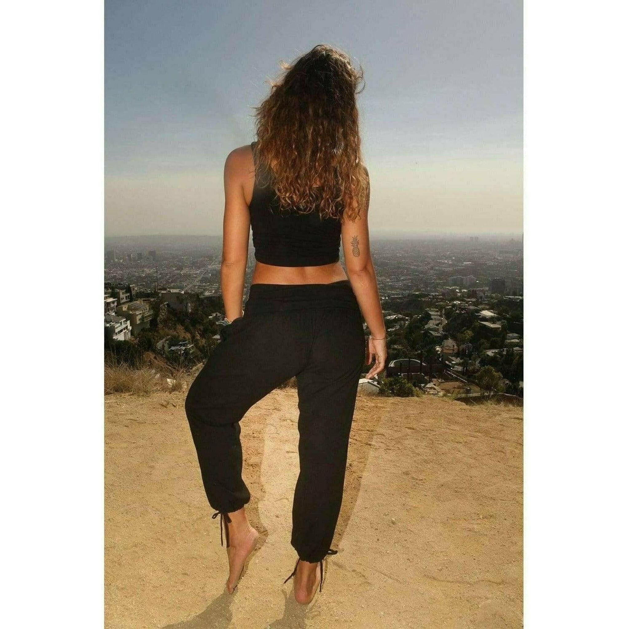 This Women's Yoga Kung Fu Pants Long is made with organic poplin lining, so the white pants are non see through for underwear. It comes with a bamboo waistband belt for extra comfort and deep pockets and tie string bottoms.