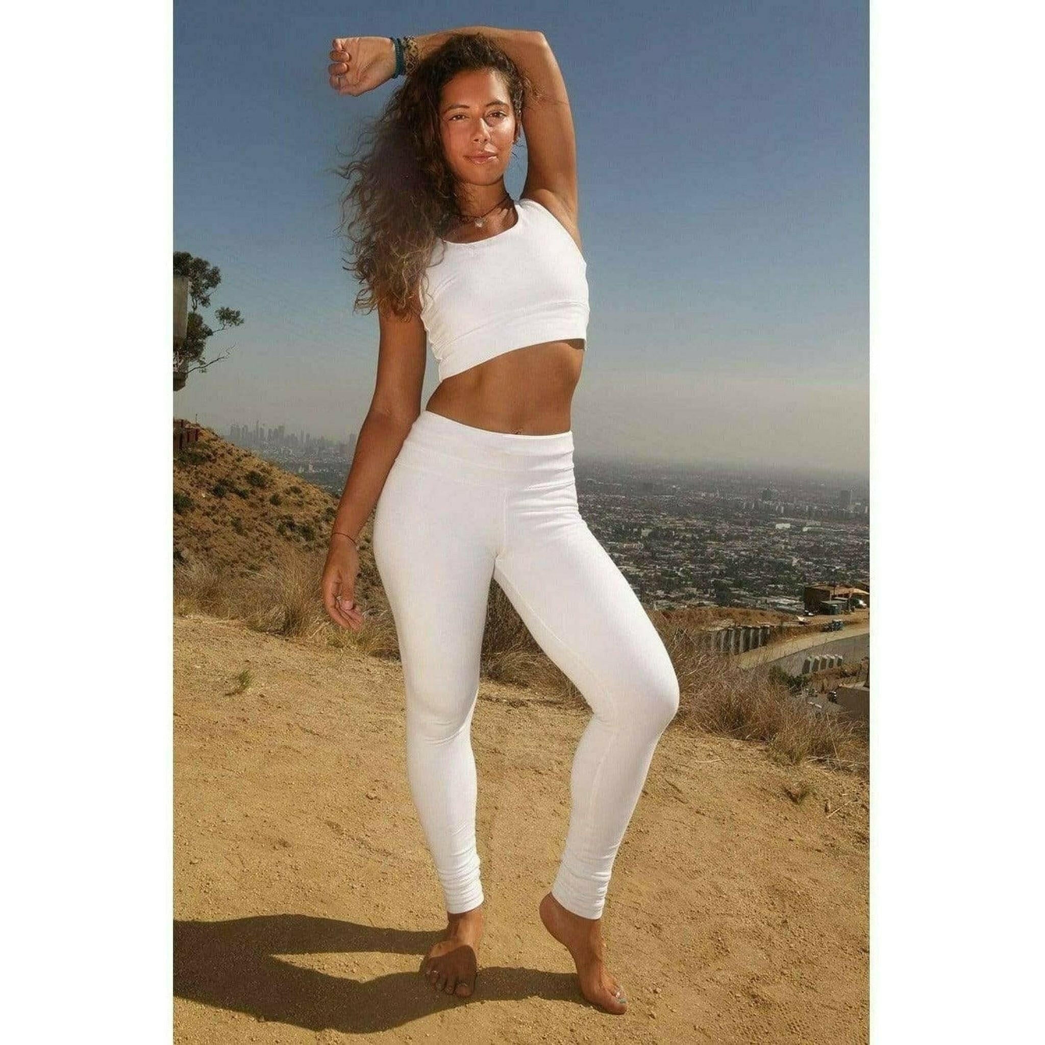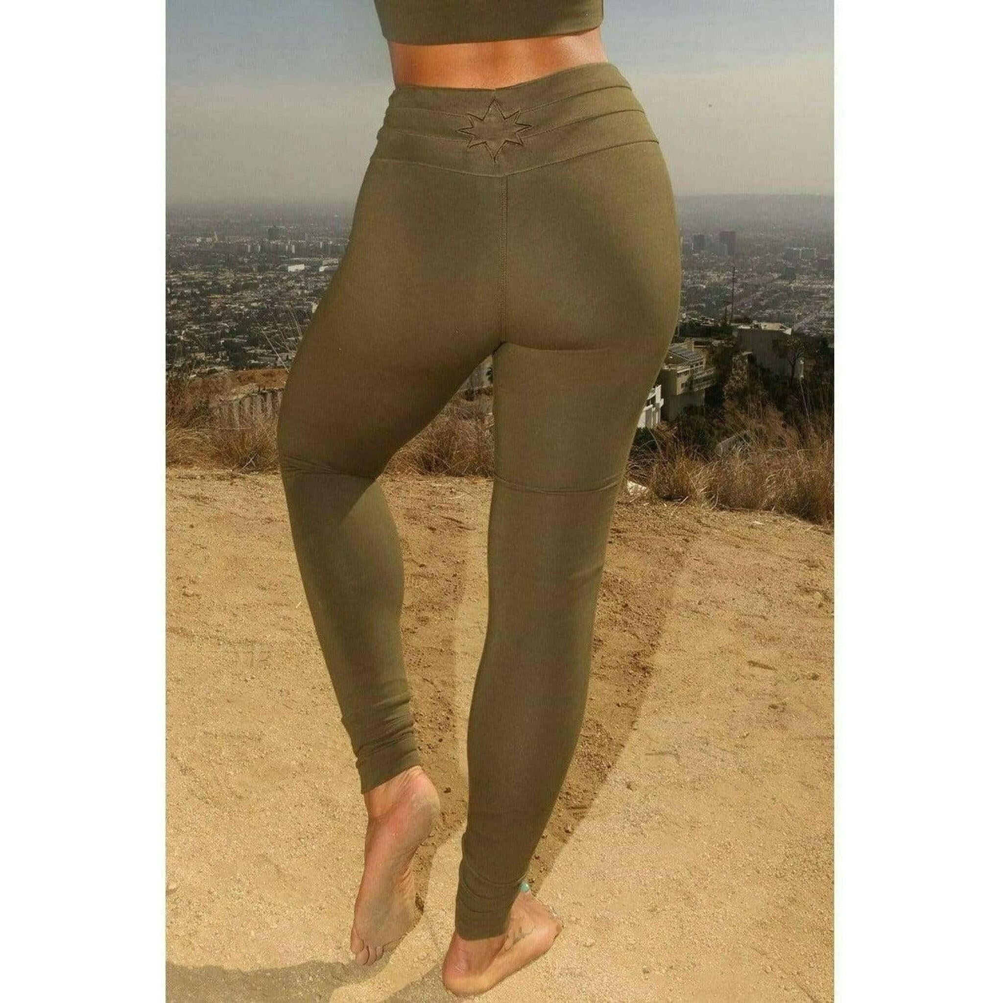 This Women's Yoga "Tri Star Leggings" are high waisted with 8 pointed star embroidered on the back and 3 ankle bands. These yoga leggings have a lining and use thick Organic Cotton with Spandex for great stretch while still emphasizing your sexy shape.