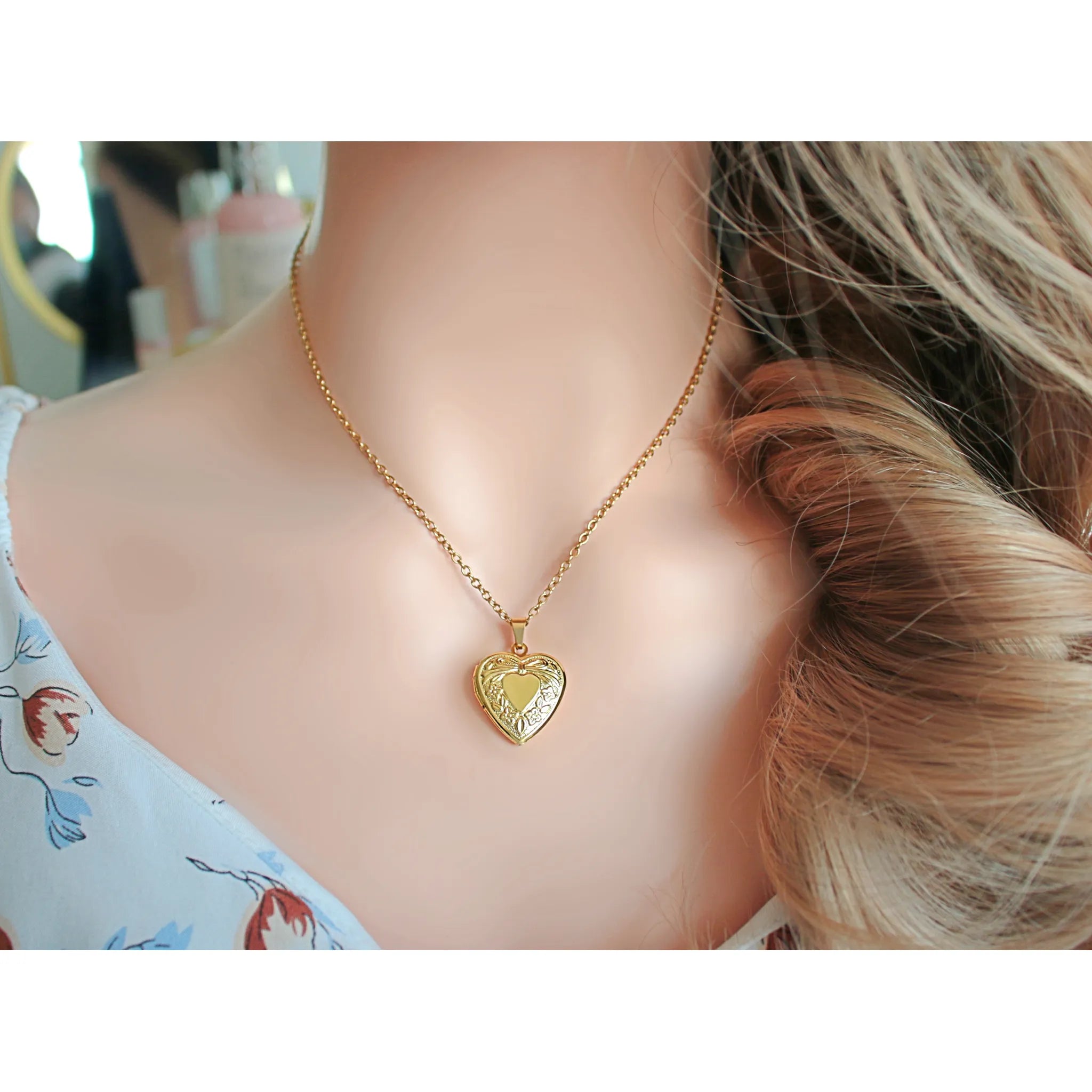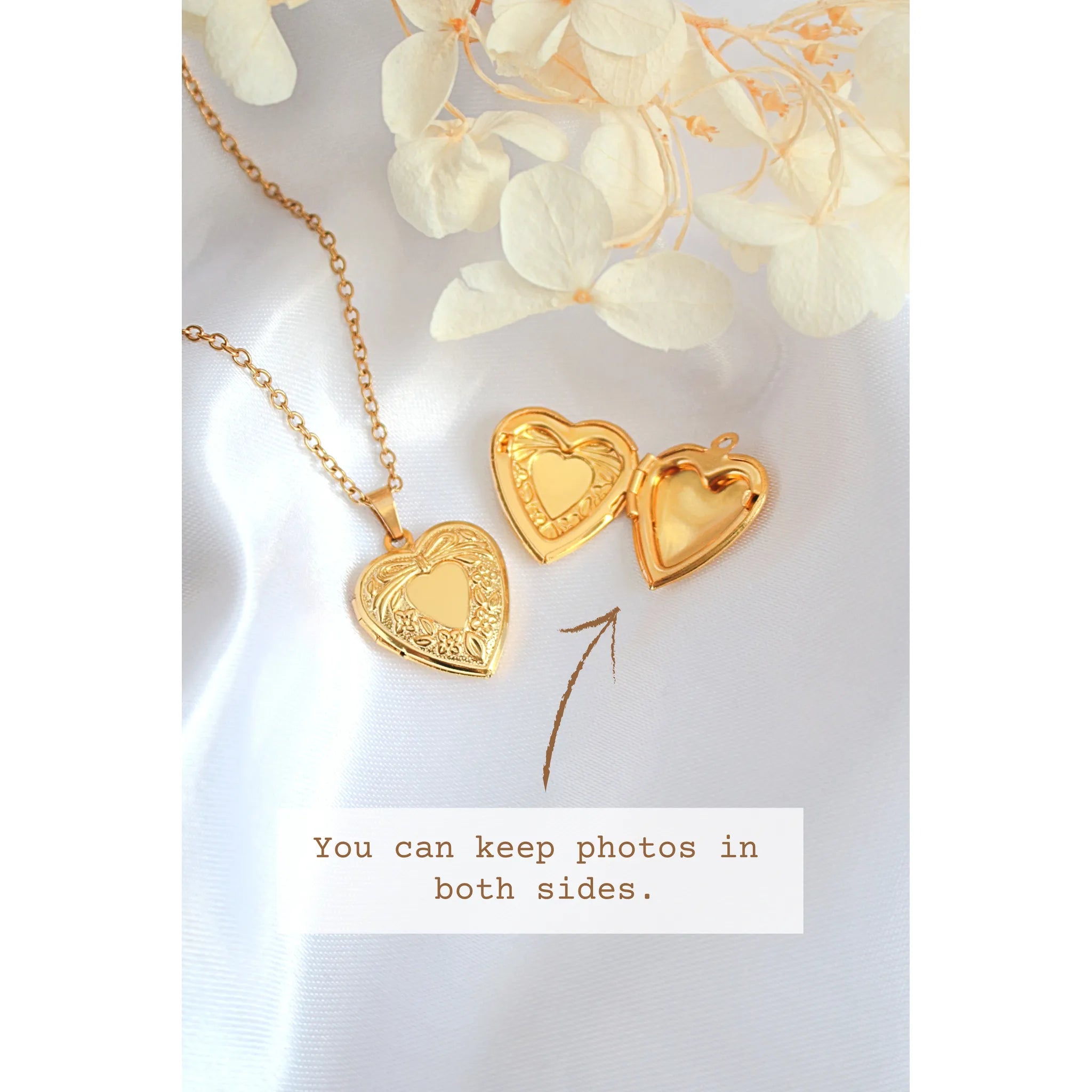 Cute and meaningful heart locket necklace, the best way to bring your loved ones close to your heart. This unique necklace is made with high quality materials, 24 karats gold plated stainless steel.
