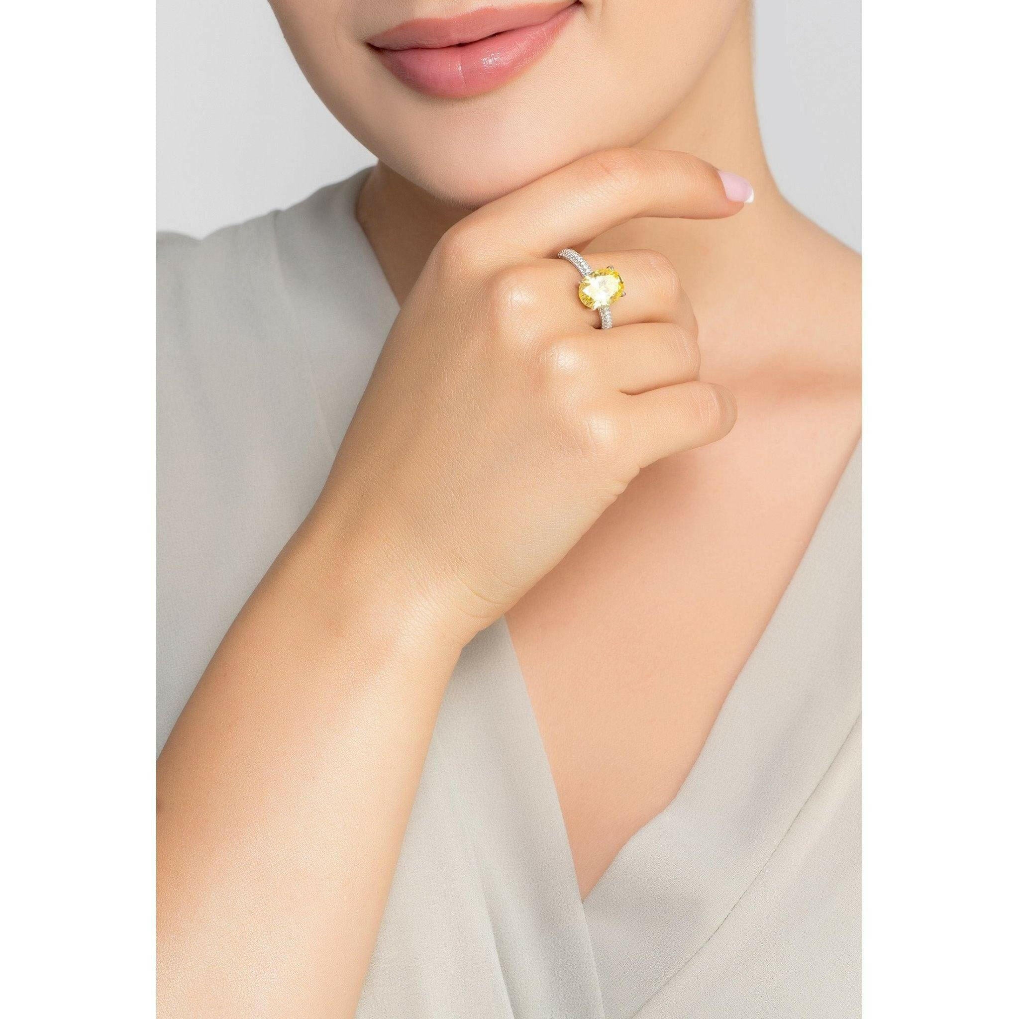 Alexandra Oval Cocktail Ring Lemon Topaz Silver