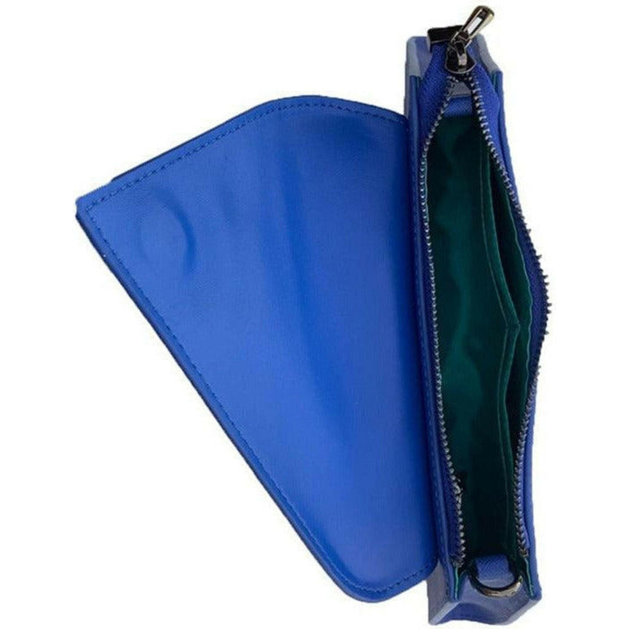 The Angelica is a sleek cobalt blue leather clutch purse crafted from crosshatched leather and is accented with a diagonal flap. This dazzling blue elegant evening bag features a fabric-lined interior with a zipped pocket and a zip closure at the top. With a removable chain strap, The unique Angelica can be worn over the shoulder or as an envelope clutch. This will be your go-to day to night designer handbag.