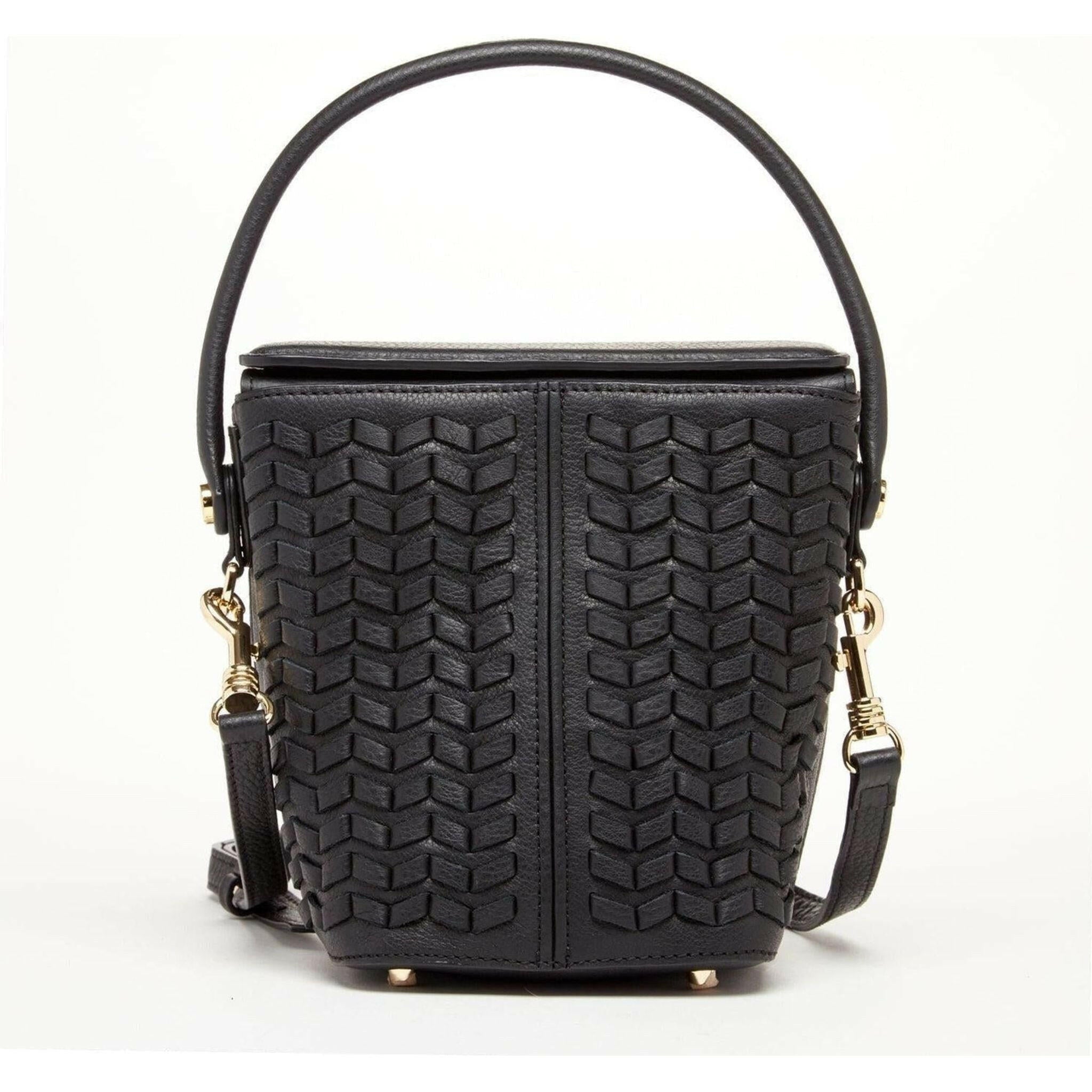 This Anna Woven leather bag in black is the perfect accessory for any fashion-savvy individual. Made with genuine Italian leather, it boasts a unique weave design that adds texture and dimension to its minimalist aesthetic. The adjustable strap allows you to wear it comfortably as a crossbody or shorten the strap to carry it as a shoulder bag. The long crossbody strap is removable, and you can also carry this weave leather bag by its top handle. The strong magnetic closure keeps your belongings secure and provides easy access. The interior features multiple pockets and compartments to keep your essentials organized and easily accessible. Whether you're running errands or heading out for a night on the town, this versatile leather bucket bag will elevate any outfit.