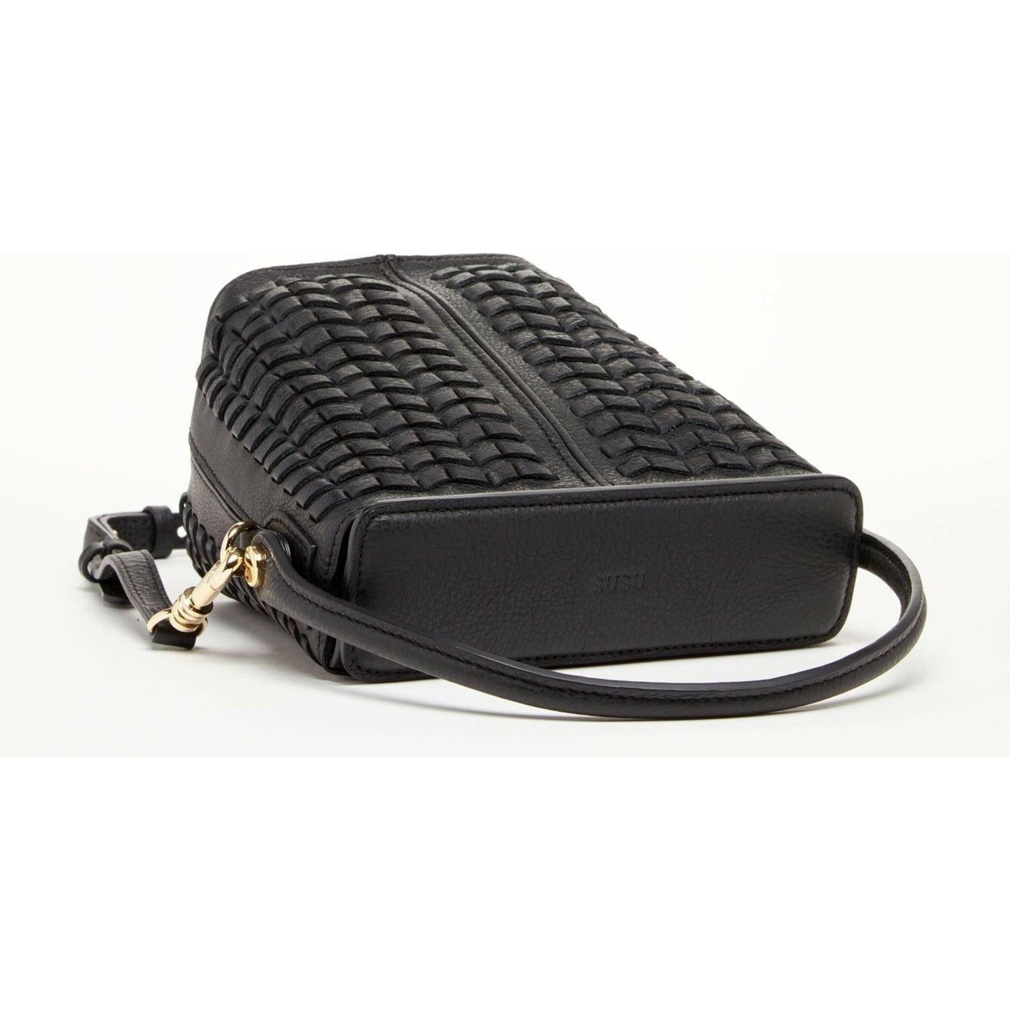 This Anna Woven leather bag in black is the perfect accessory for any fashion-savvy individual. Made with genuine Italian leather, it boasts a unique weave design that adds texture and dimension to its minimalist aesthetic. The adjustable strap allows you to wear it comfortably as a crossbody or shorten the strap to carry it as a shoulder bag. The long crossbody strap is removable, and you can also carry this weave leather bag by its top handle. The strong magnetic closure keeps your belongings