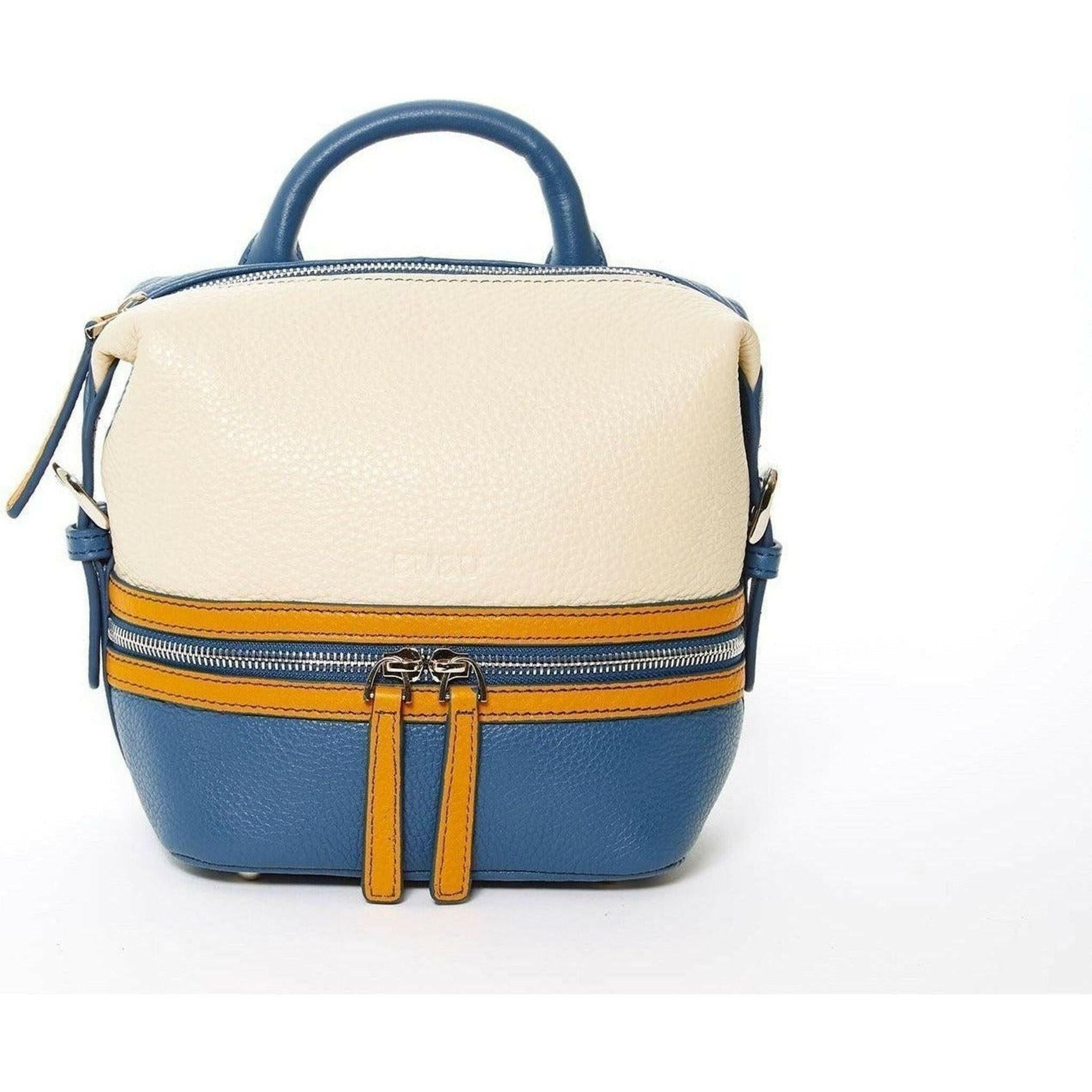 Ashley Small Leather Backpack in White Yellow Blue