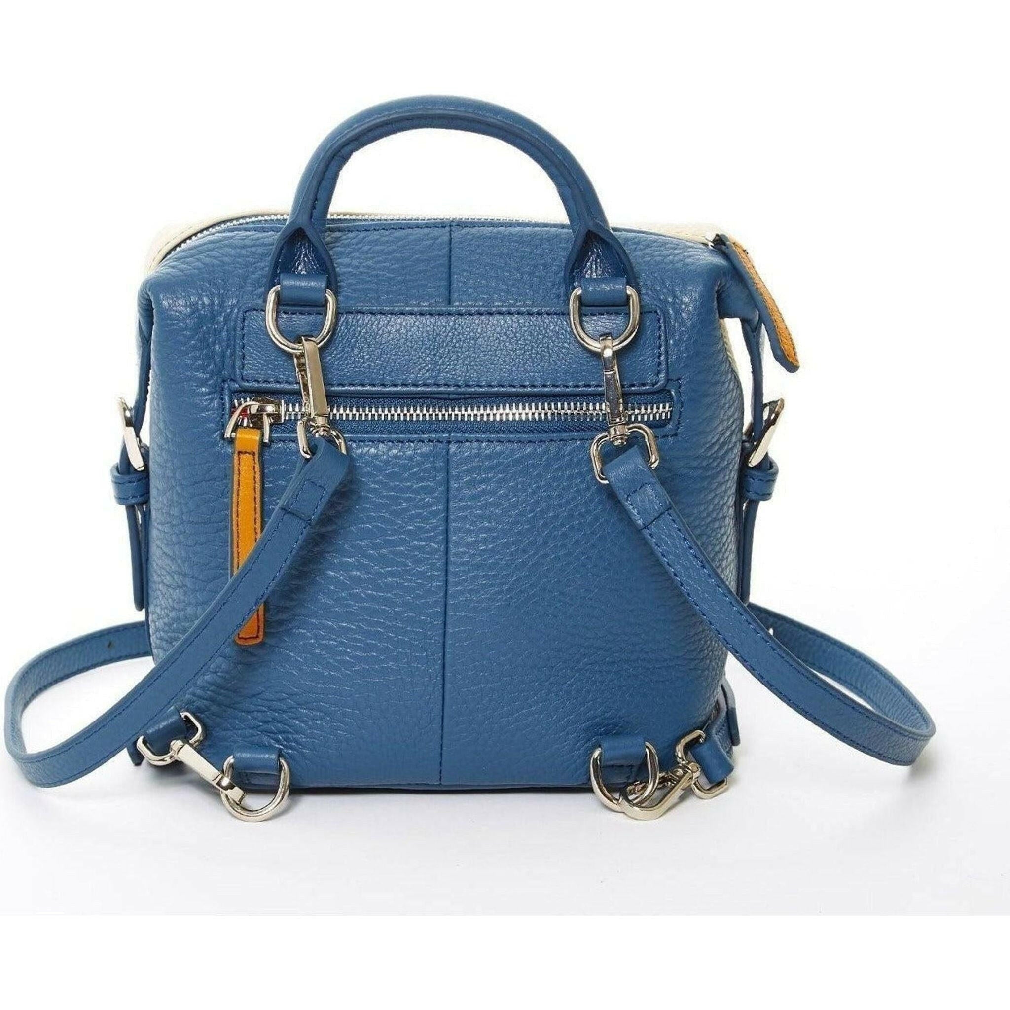 The multicolor Ashley is a chic convertible leather backpack that is made with genuine pebble leather, silver zippers, and simple leather tassels. It’s roomy fabric-lined interior includes 1 large zipped side pocket, a middle zipped compartment and 1 cell phone slot. It is equally as perfect to wear to work or on a fun weekend excursion.