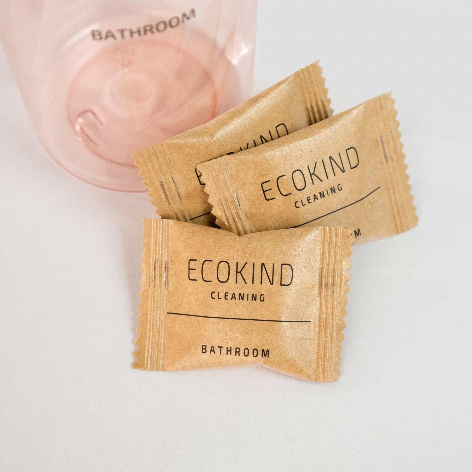 Reduce, reuse, refill with ECOKIND Cleaning Bathroom refill tablets, designed to be effective without the harsh chemicals. From your tub to your tile, eco-friendly ingredients work hard to wash away soap scum and grime. Say hello to a cleaner bathroom and planet.