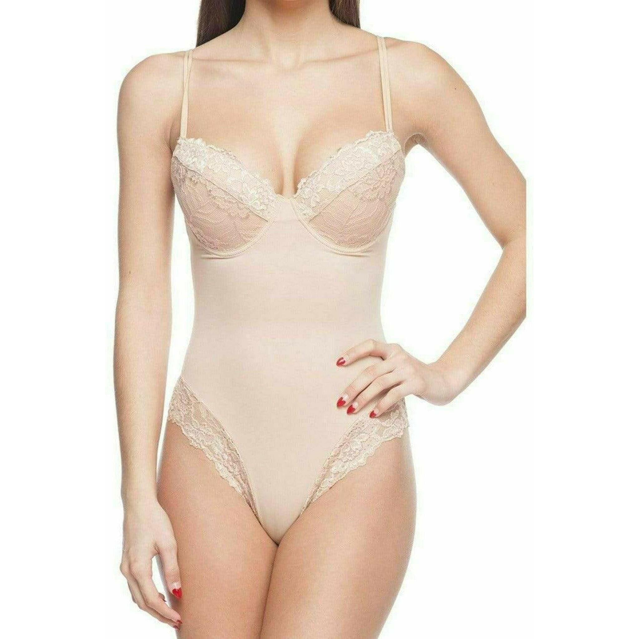 Bodysuit Shaper with Built-In Wire Bra and Lace Trim in Nude