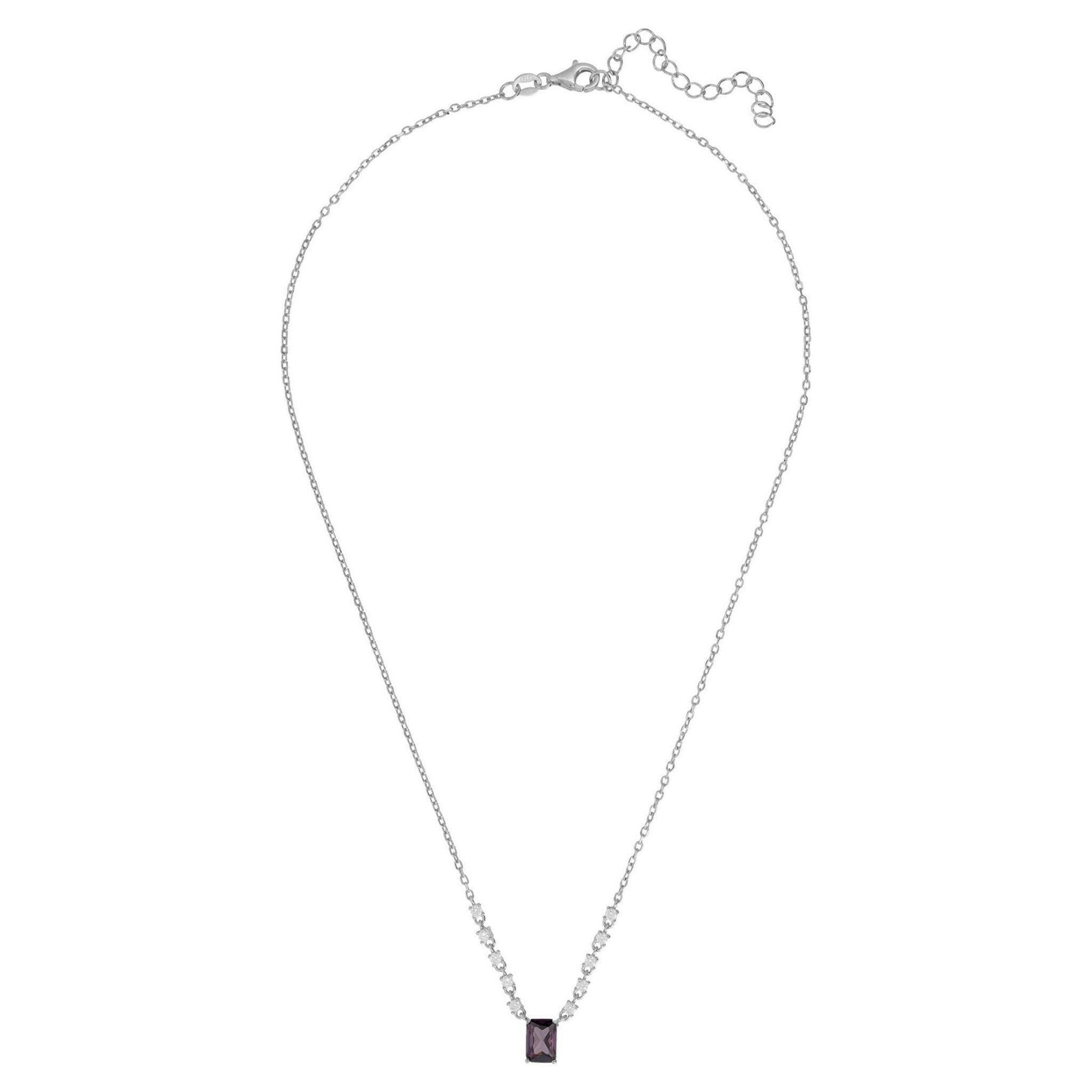 The Claudia Gemstone Pendant Necklace Silver is crafted with 925 sterling silver and features a gorgeous rectangular lab-created lilac Amethyst that hangs delicately from the necklace’s chain. The cubic zirconia inlay on the front of the necklace chain adds a sparkly touch. The chain is adjustable between 40-45 cm in length and weighs only 3.4 grams.
