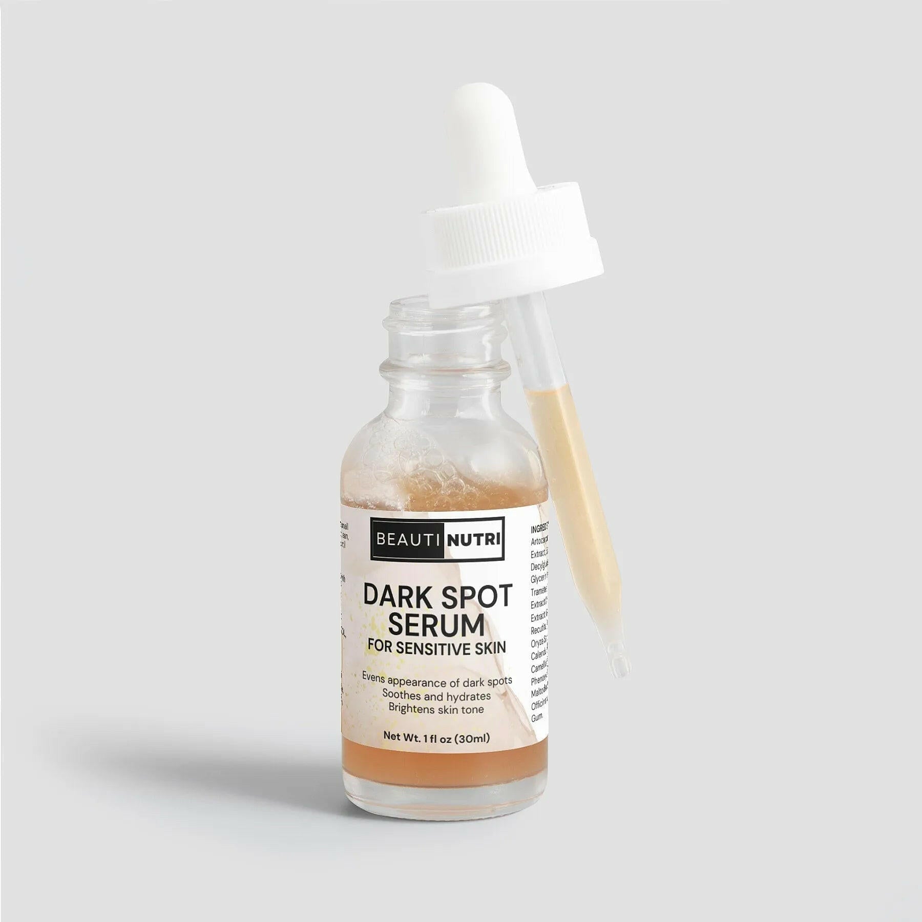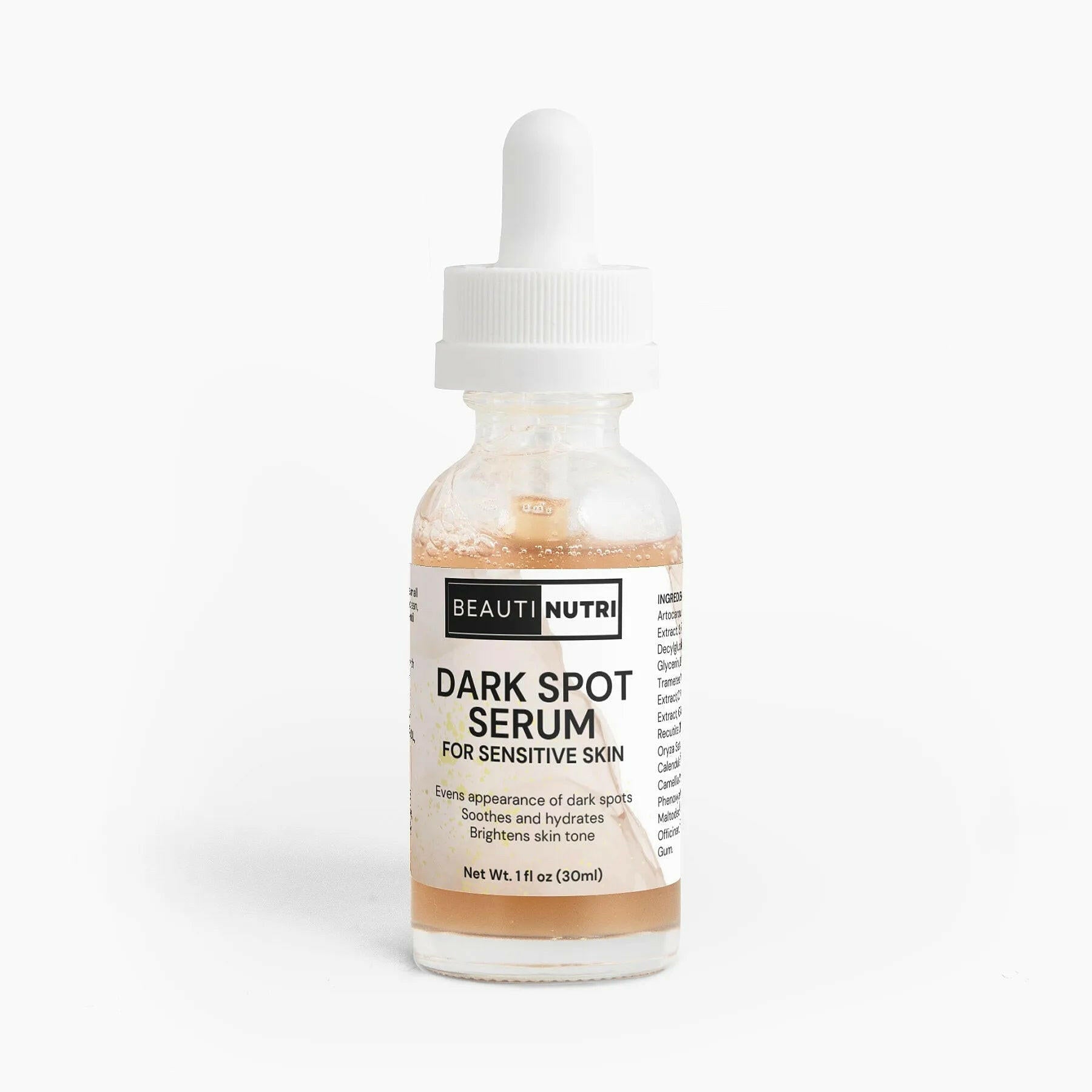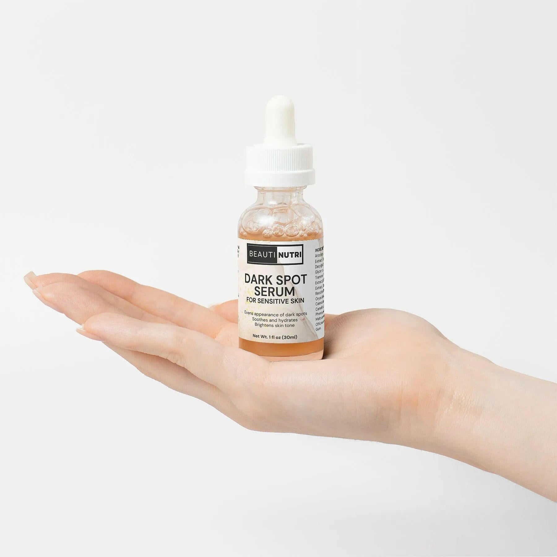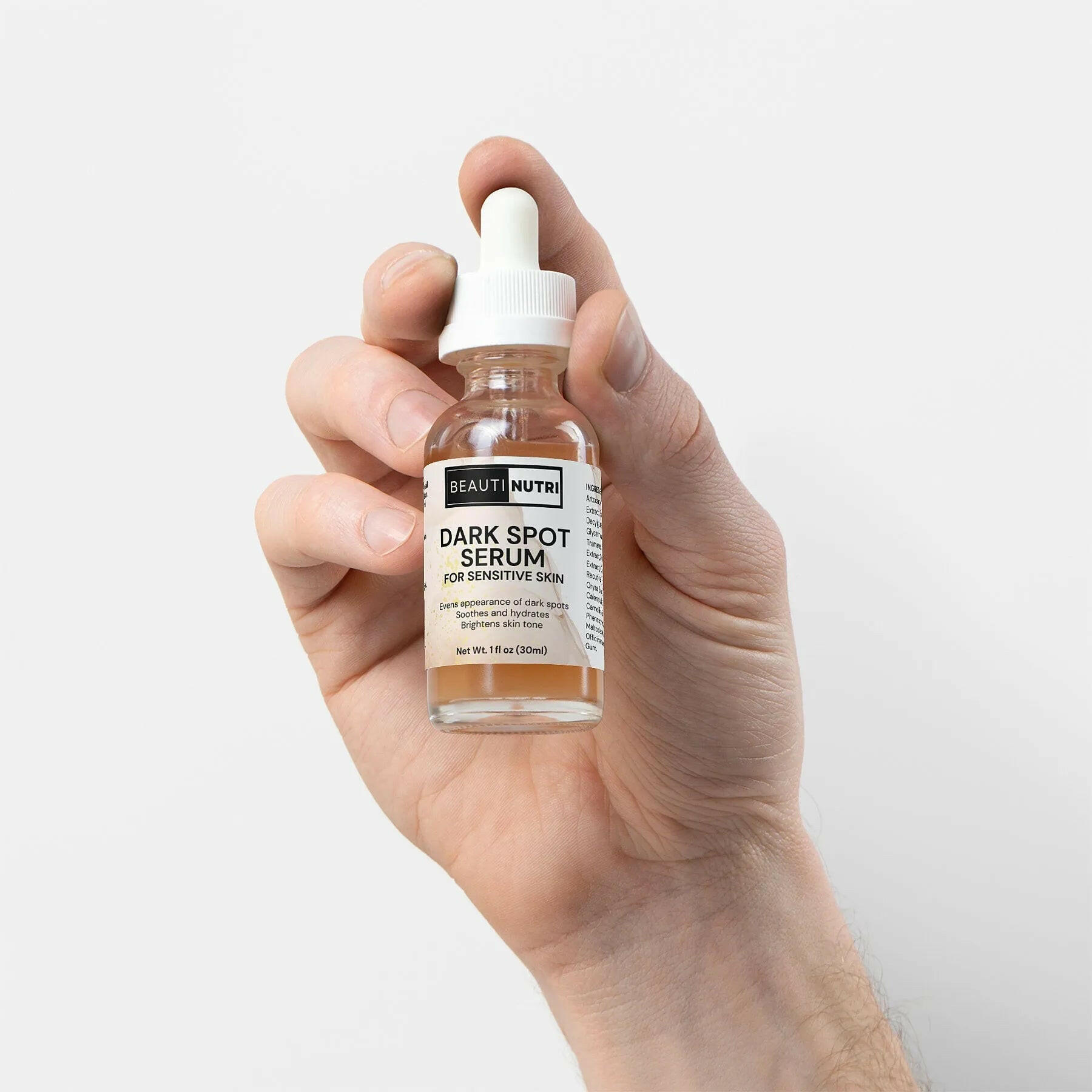 Introducing this Dark Spot Serum, designed for sensitive skin. Hydration sets the stage for targeted dark spot reduction. Natural extracts work together to brighten and even skin tone while providing soothing repair.