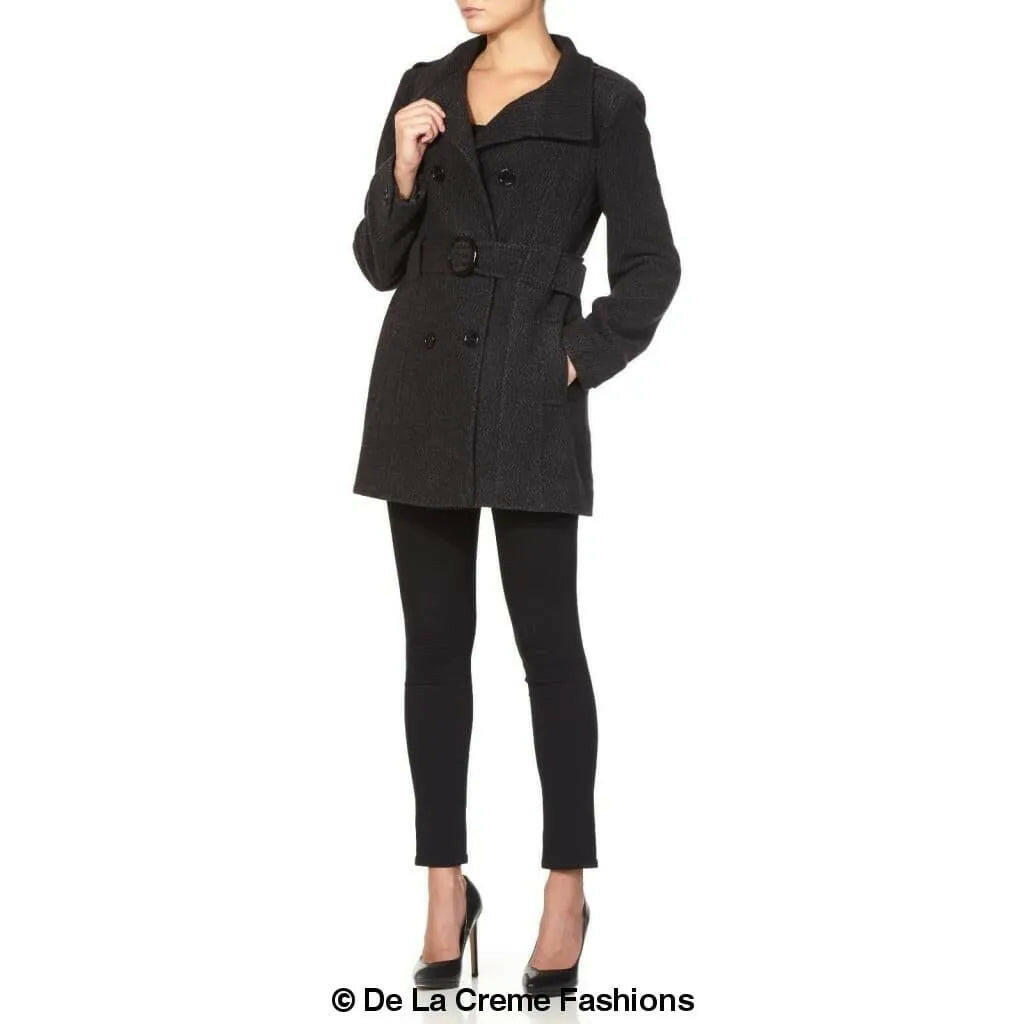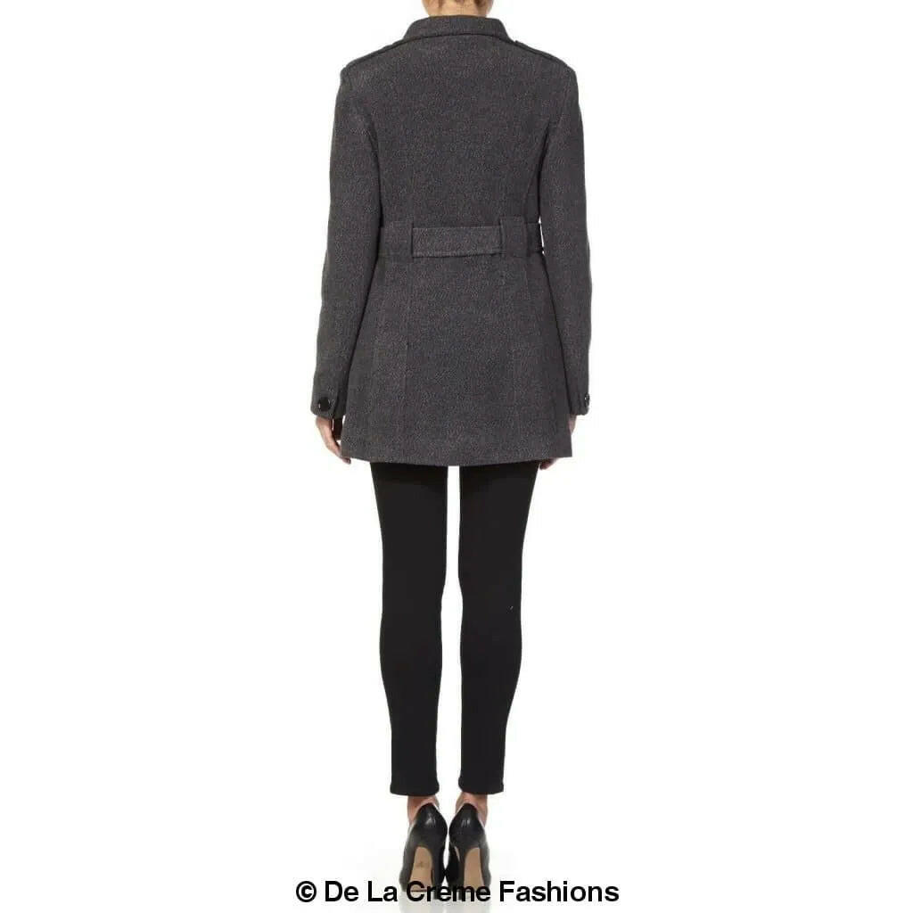 Add some style to your everyday look with this military-inspired coat. Its unique herringbone pattern and wool blend fabric make it a must-have for any fashion-forward wardrobe. And with its flattering belted design, you'll always be ready to conquer the day with confidence (and warmth)!