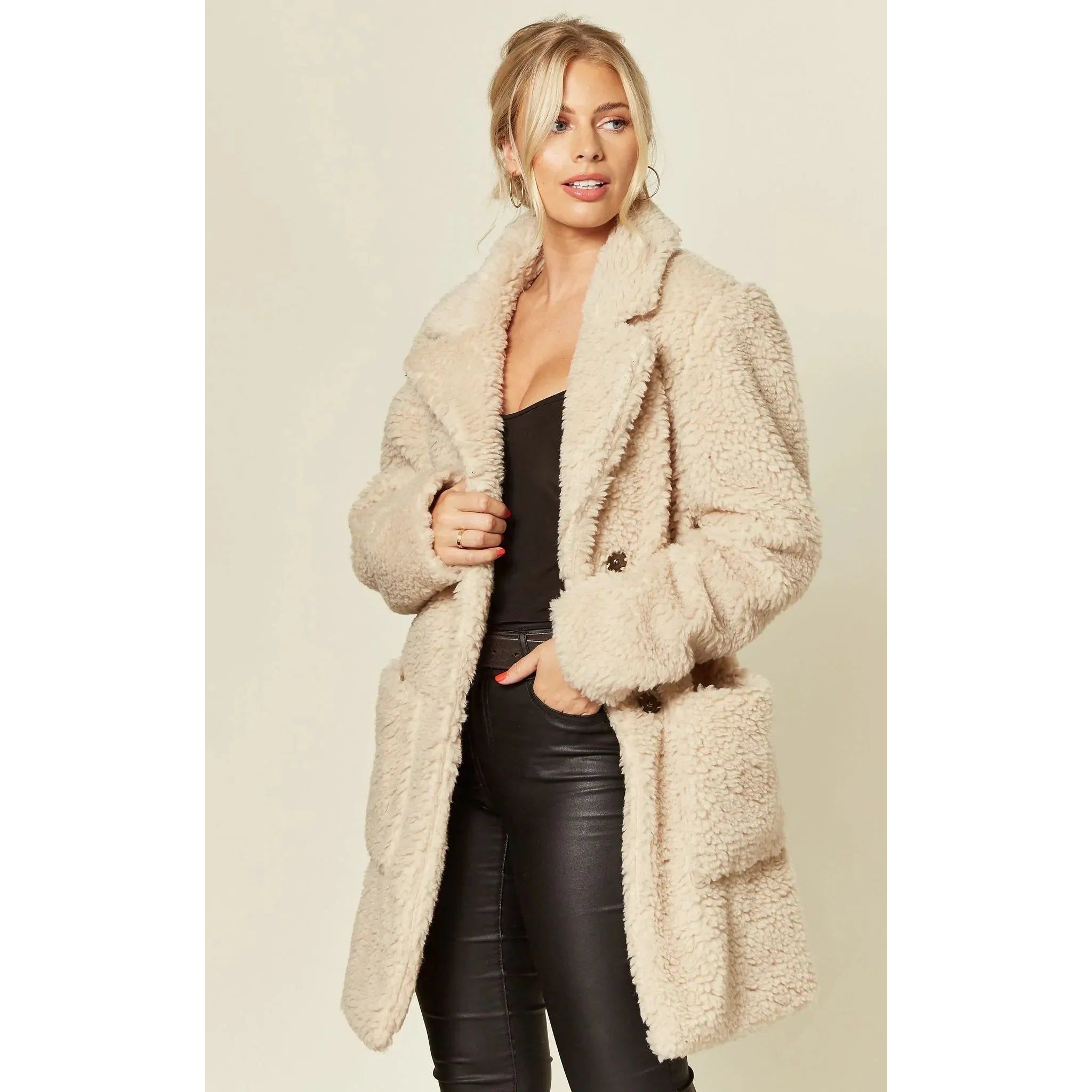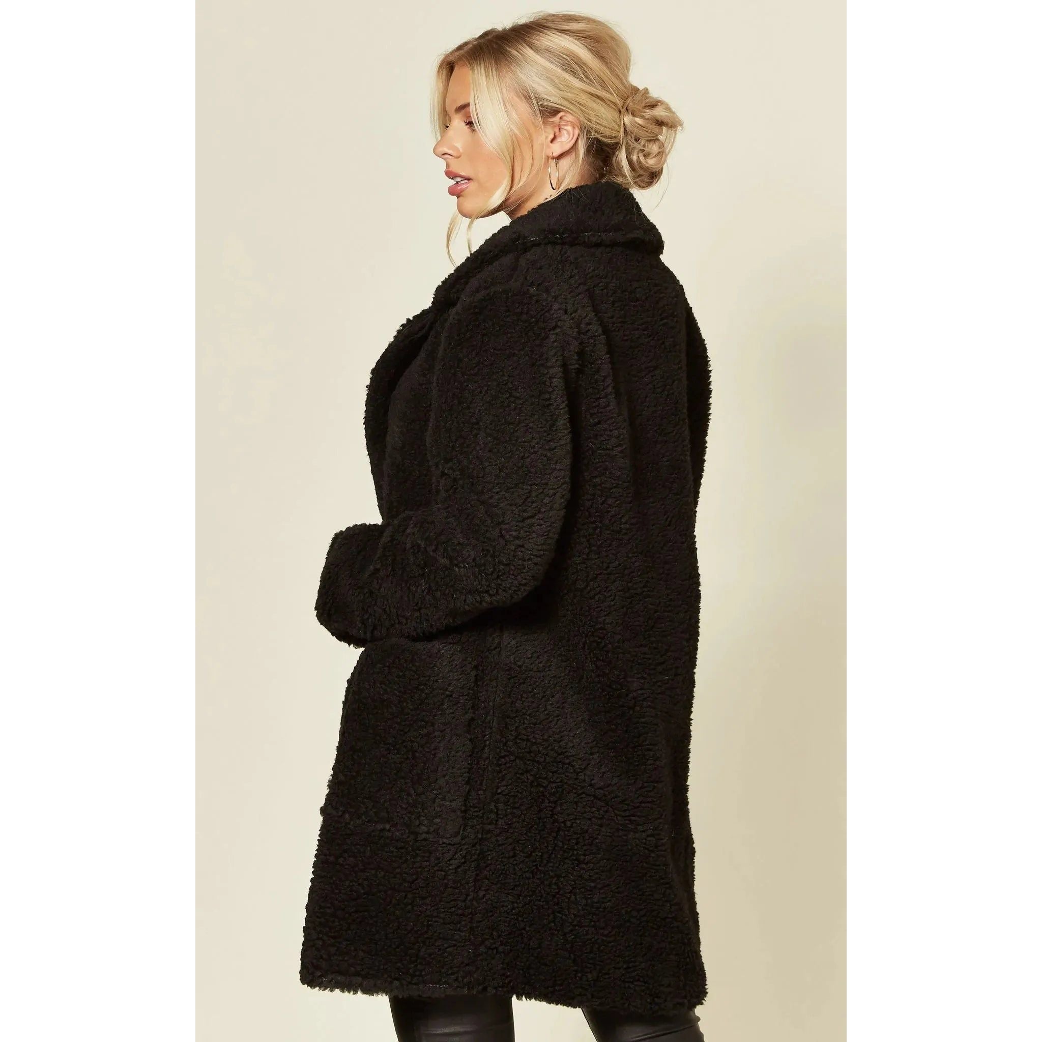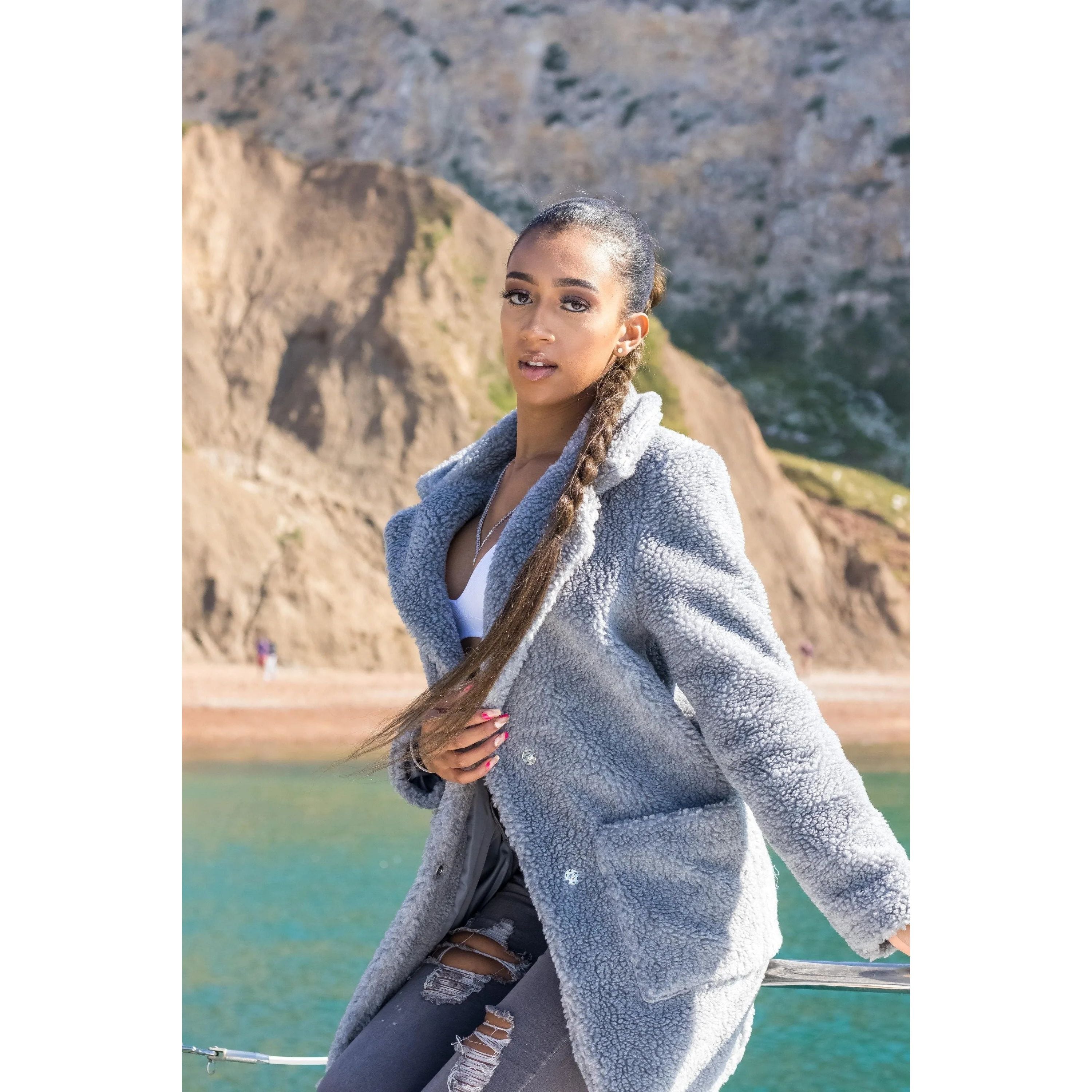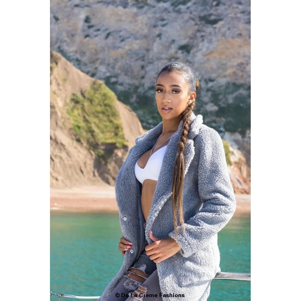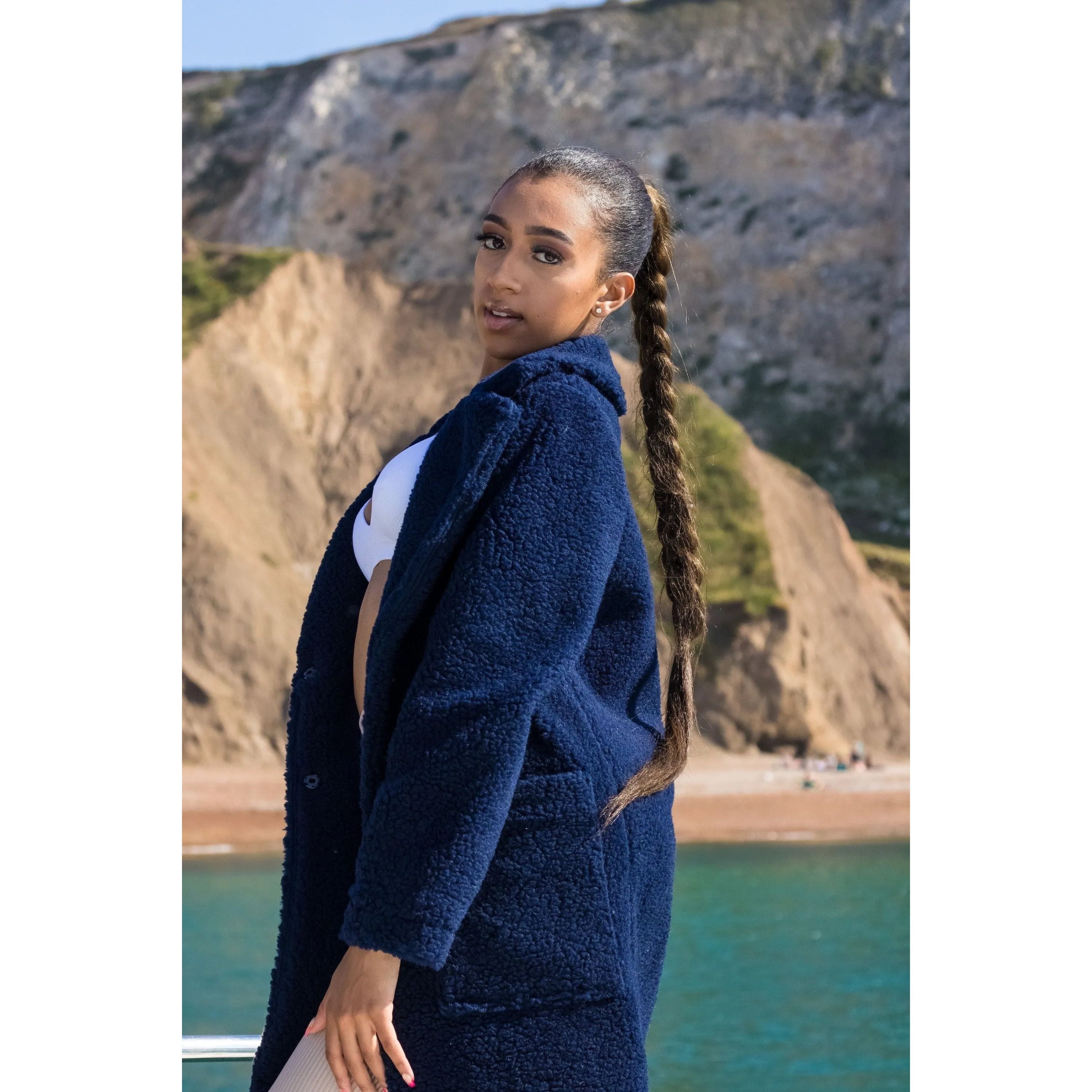 A big and cozy coat with a borg teddy finish, perfect for rocking the oversized look. Made in England and featuring an oversized fit, this coat is sure to keep you warm and stylish. It's even got popper button fastening and 2 side pockets for added convenience. Fully lined with 100% polyester, you'll never want to take this coat off!