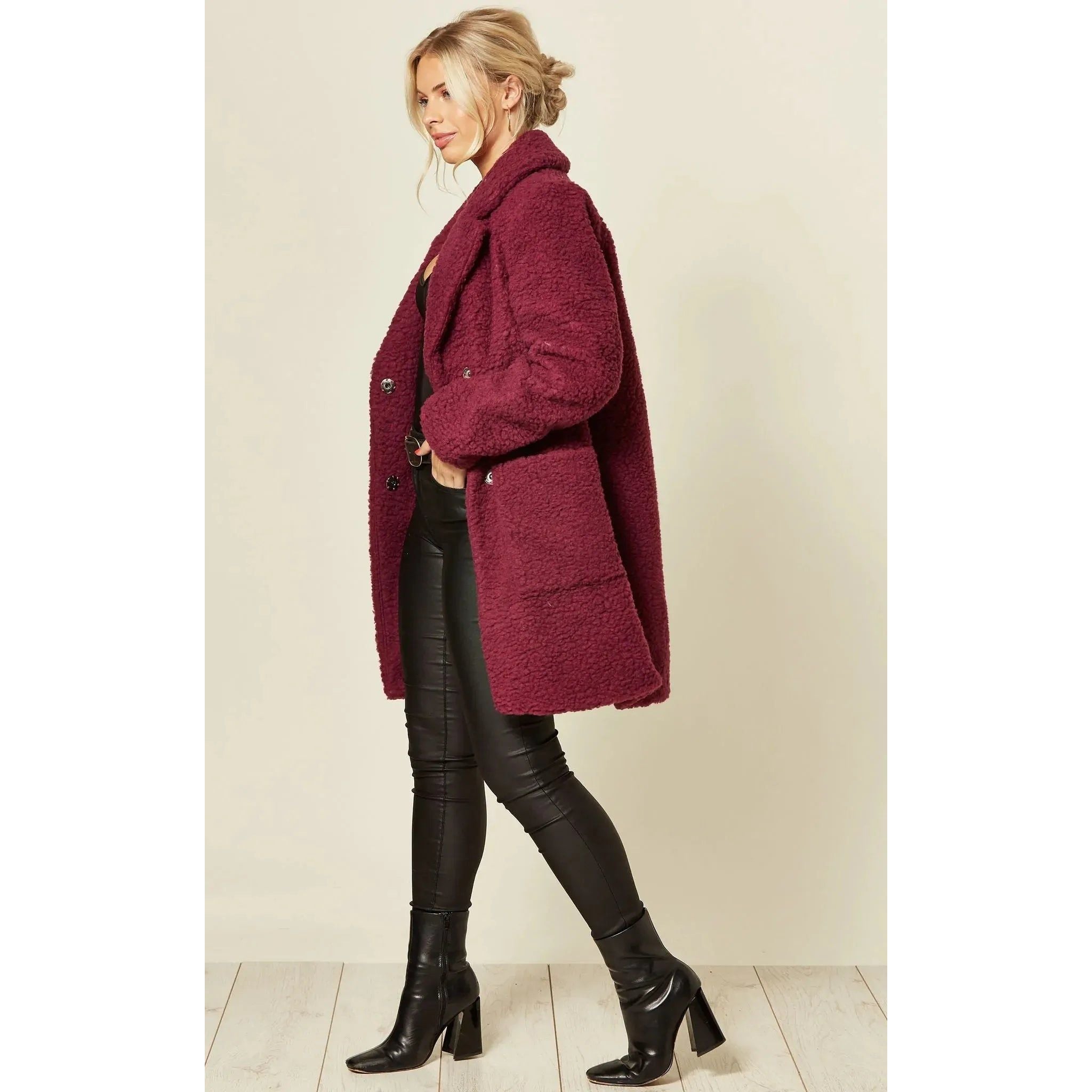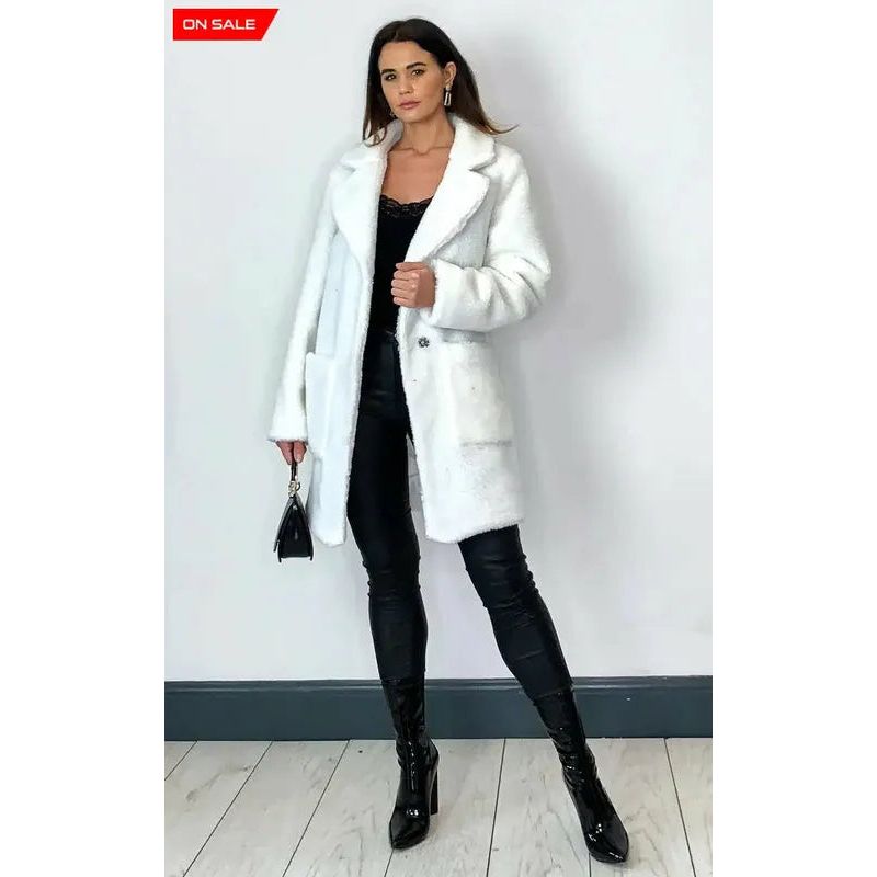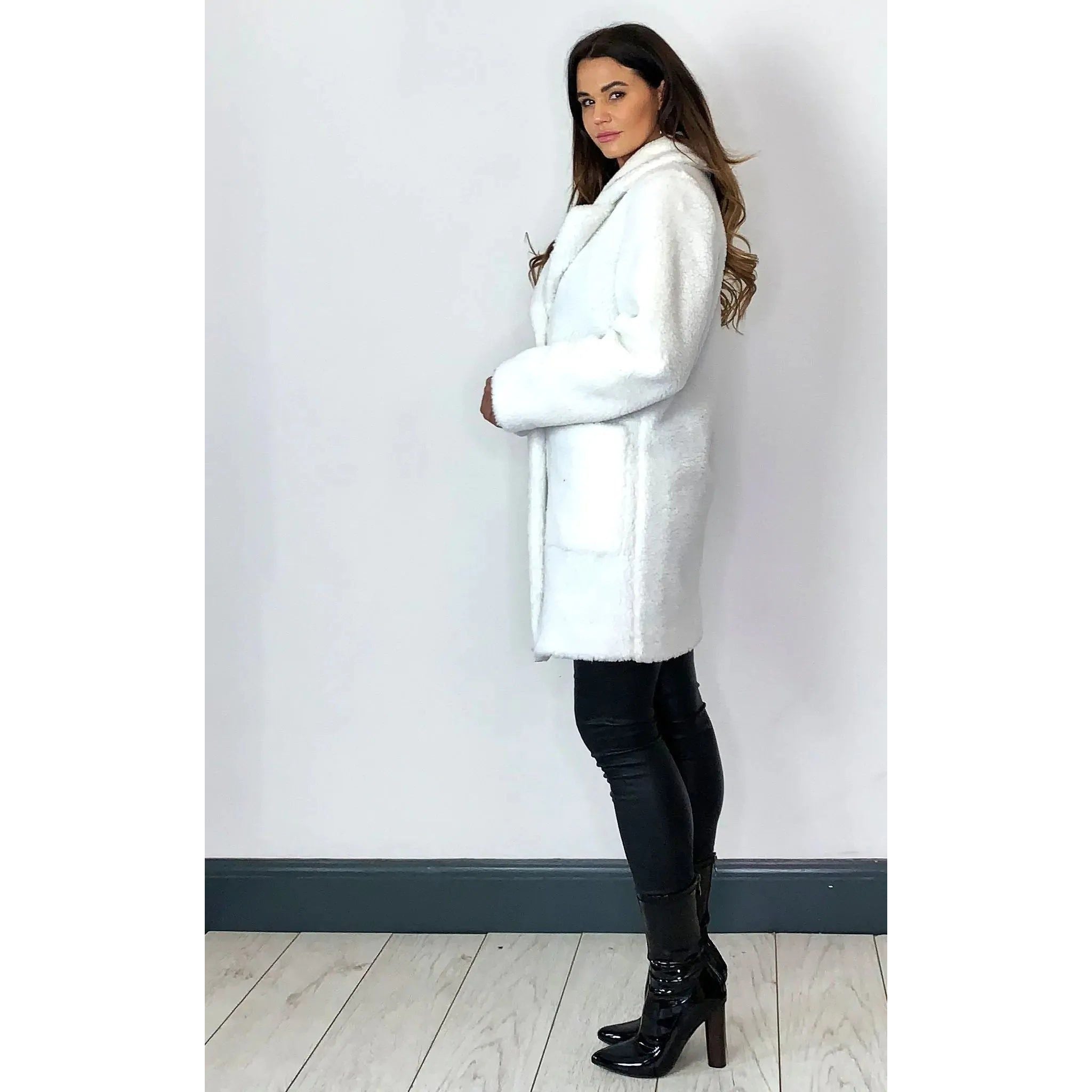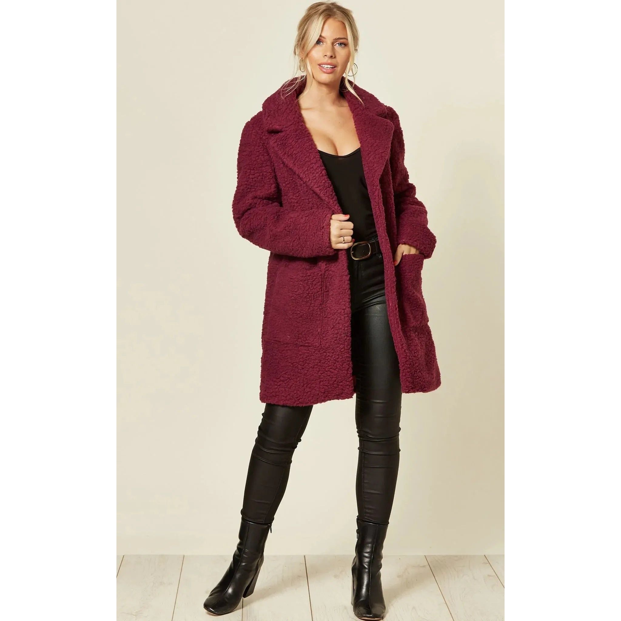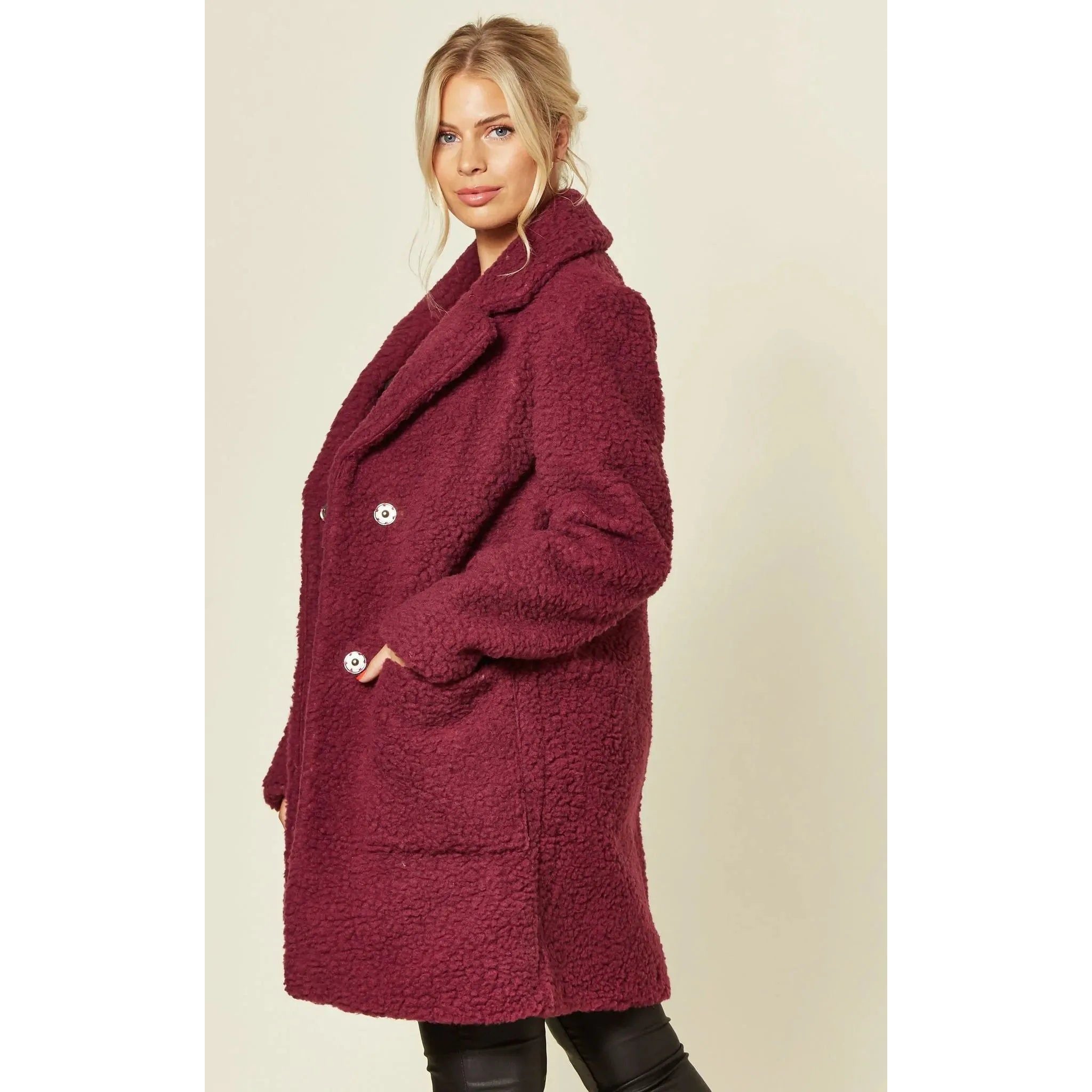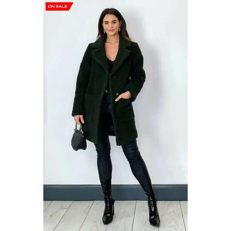 A big and cozy coat with a borg teddy finish, perfect for rocking the oversized look. Made in England and featuring an oversized fit, this coat is sure to keep you warm and stylish. It's even got popper button fastening and 2 side pockets for added convenience. Fully lined with 100% polyester, you'll never want to take this coat off!
