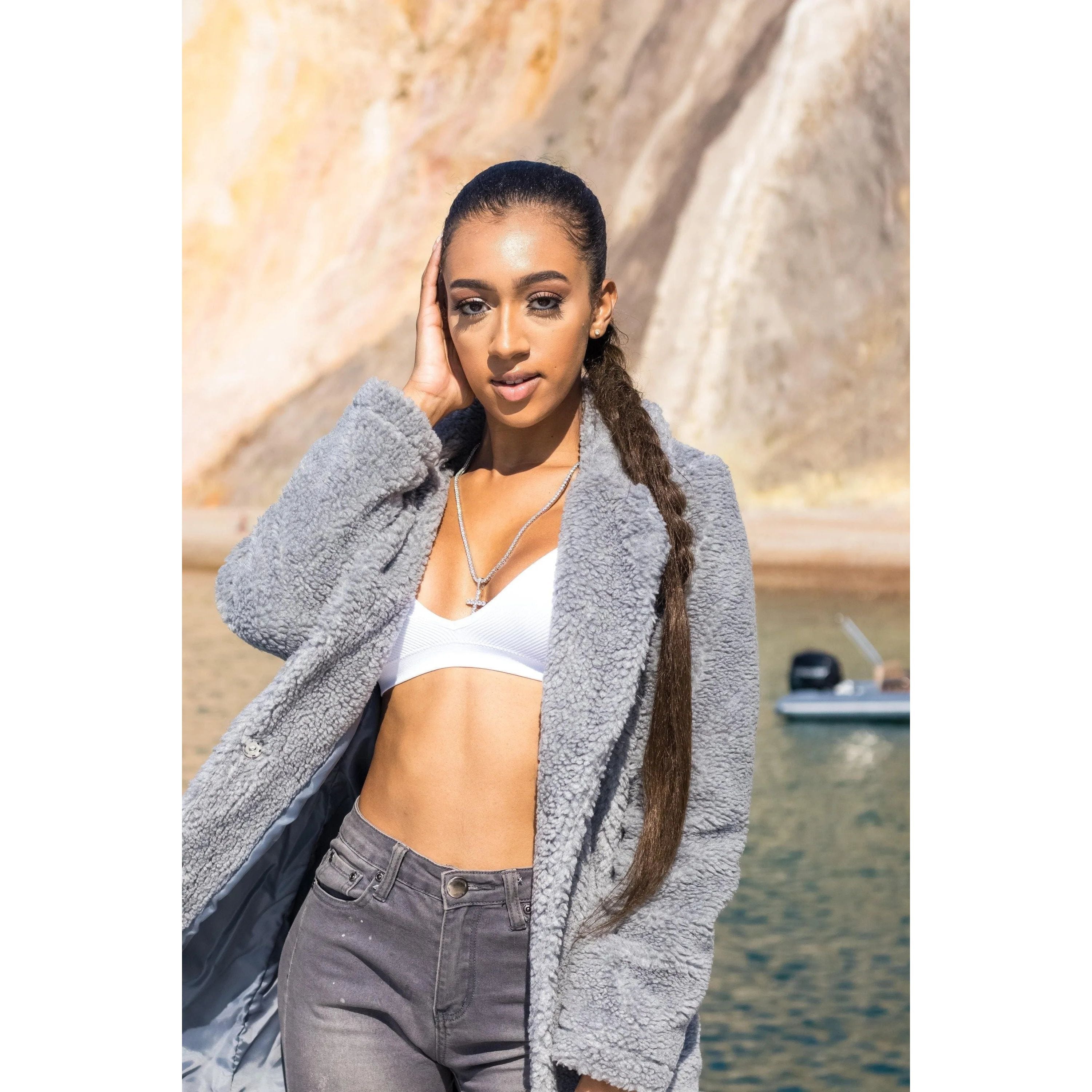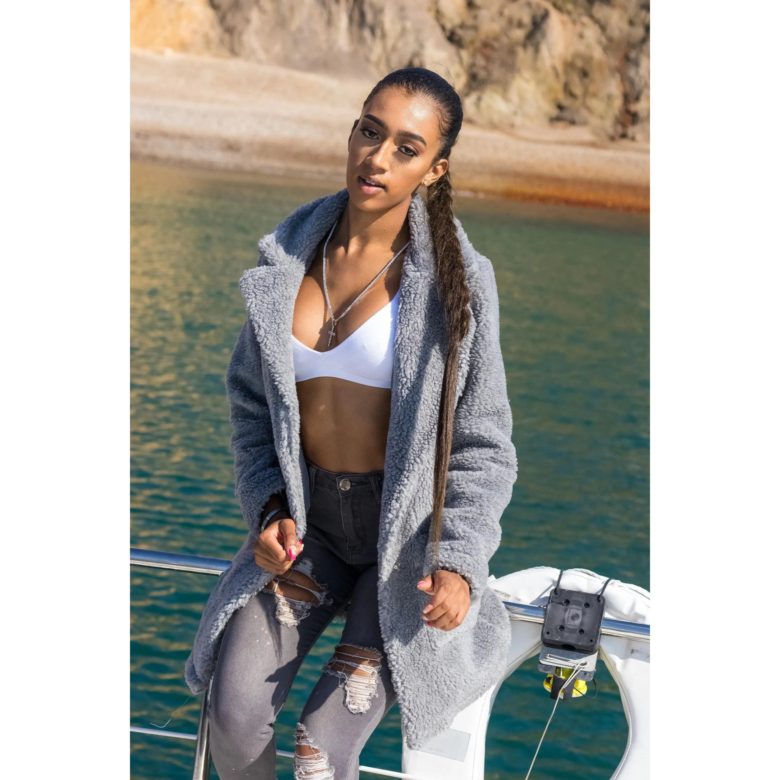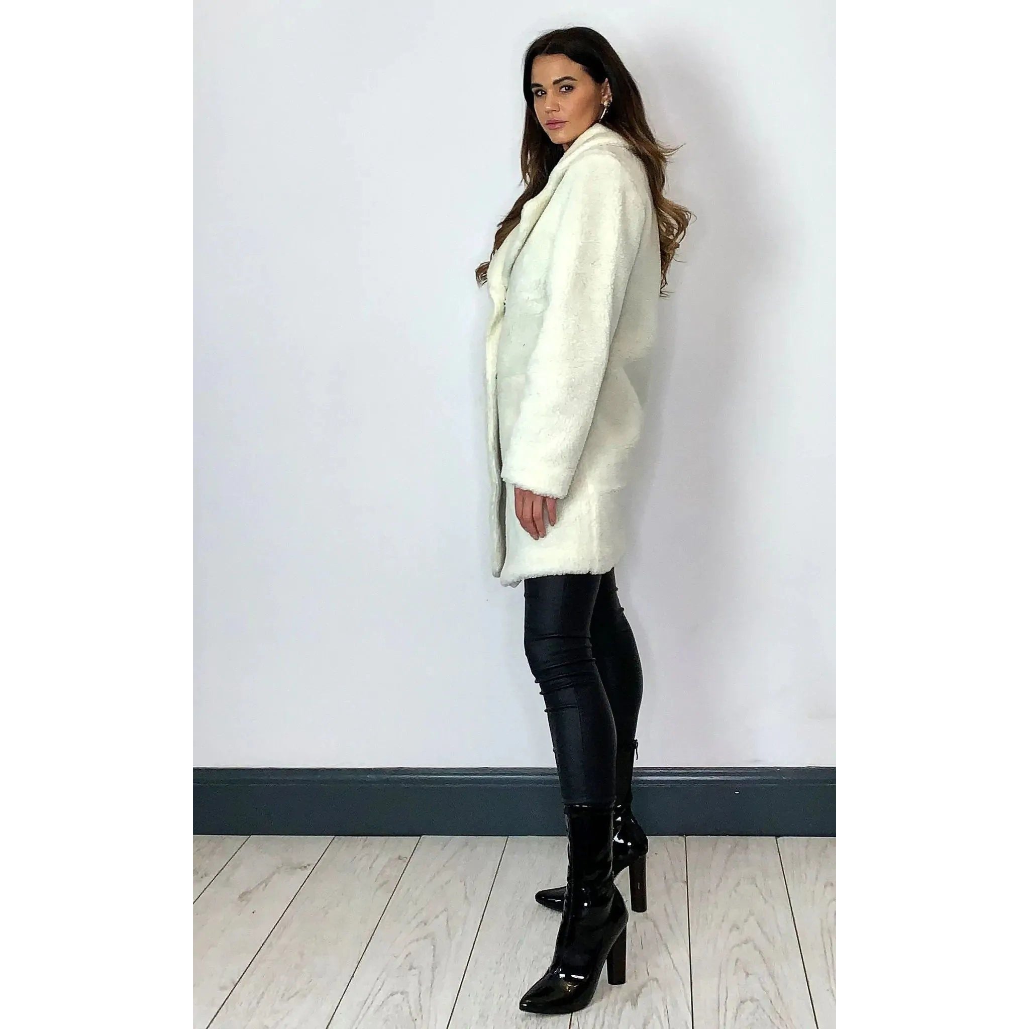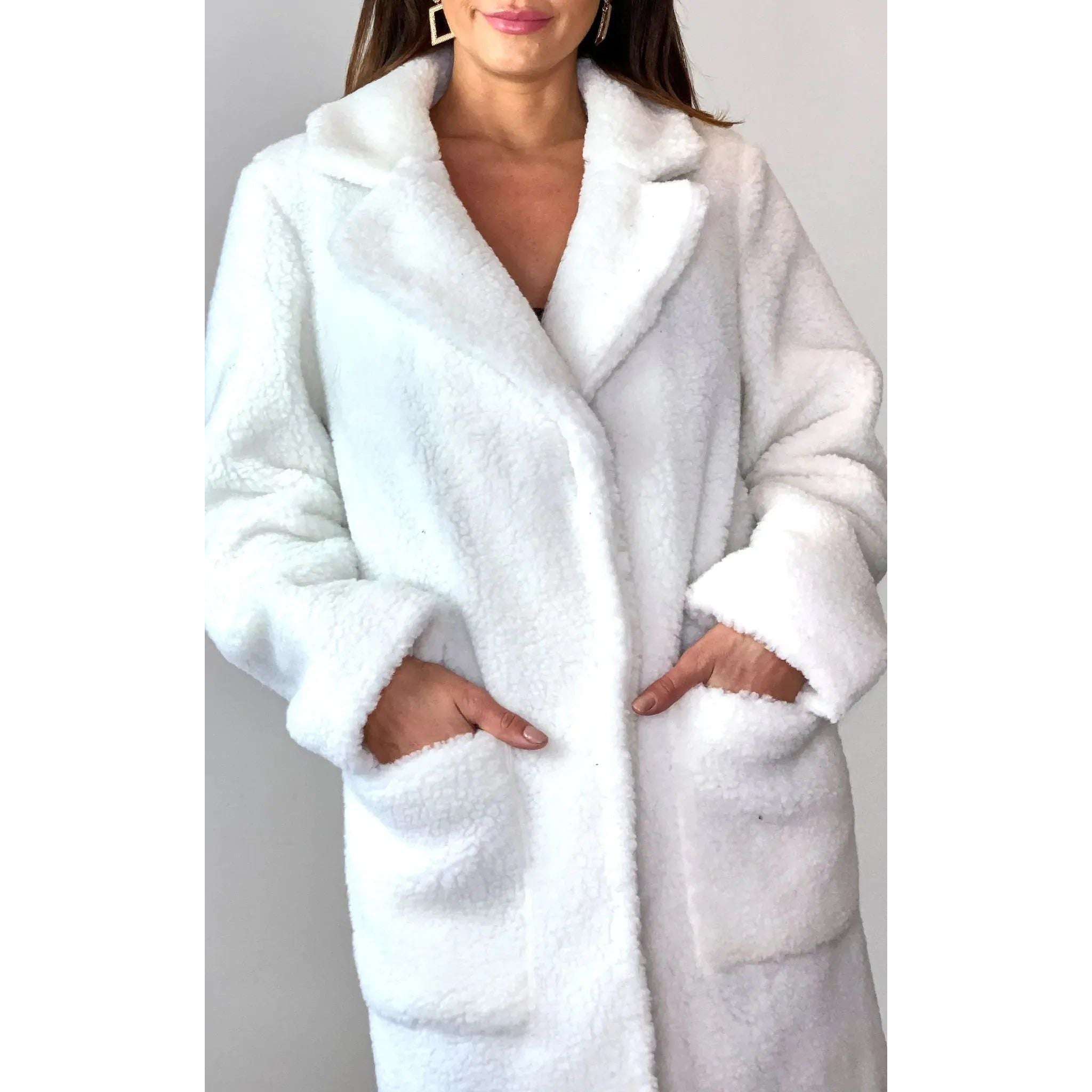 A big and cozy coat with a borg teddy finish, perfect for rocking the oversized look. Made in England and featuring an oversized fit, this coat is sure to keep you warm and stylish. It's even got popper button fastening and 2 side pockets for added convenience. Fully lined with 100% polyester, you'll never want to take this coat off!