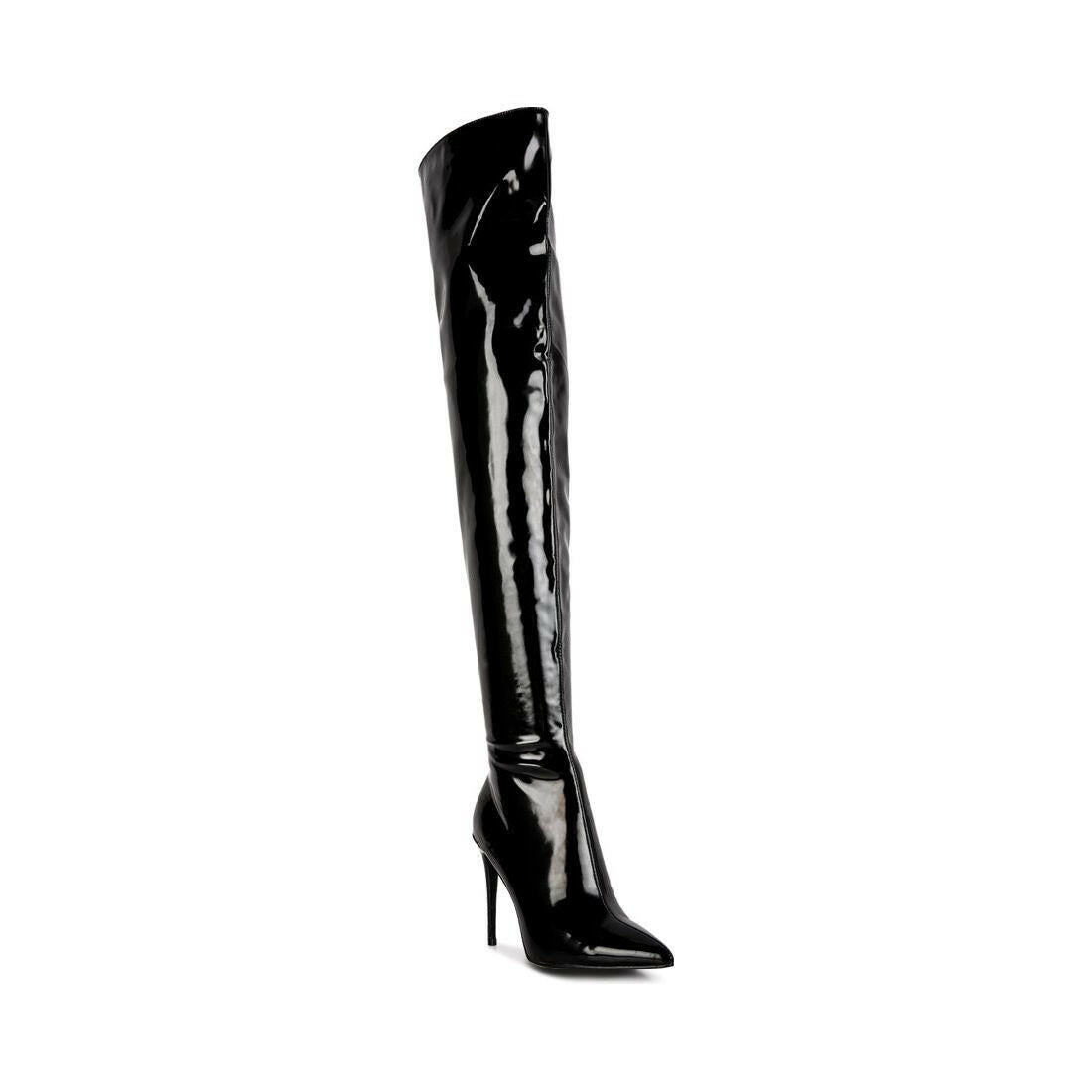 Stiletto high heel boots are the perfect boots for a night out on the town. They are attractive and fashionable. The twin zipper facility provides excellent stability and support. Look sharp, petite, and dazzling in this pair of stretch Patent PU long boots.