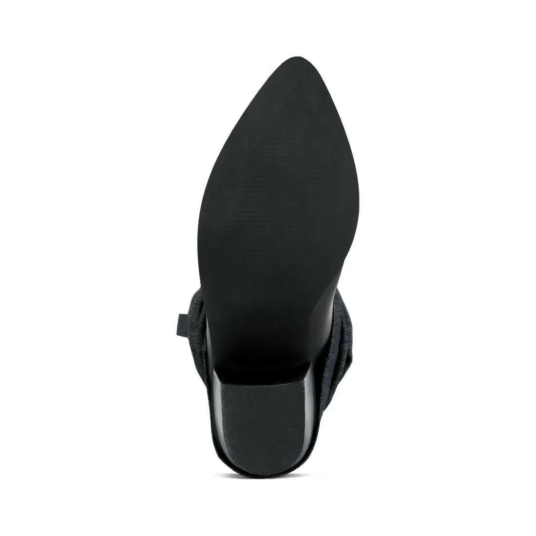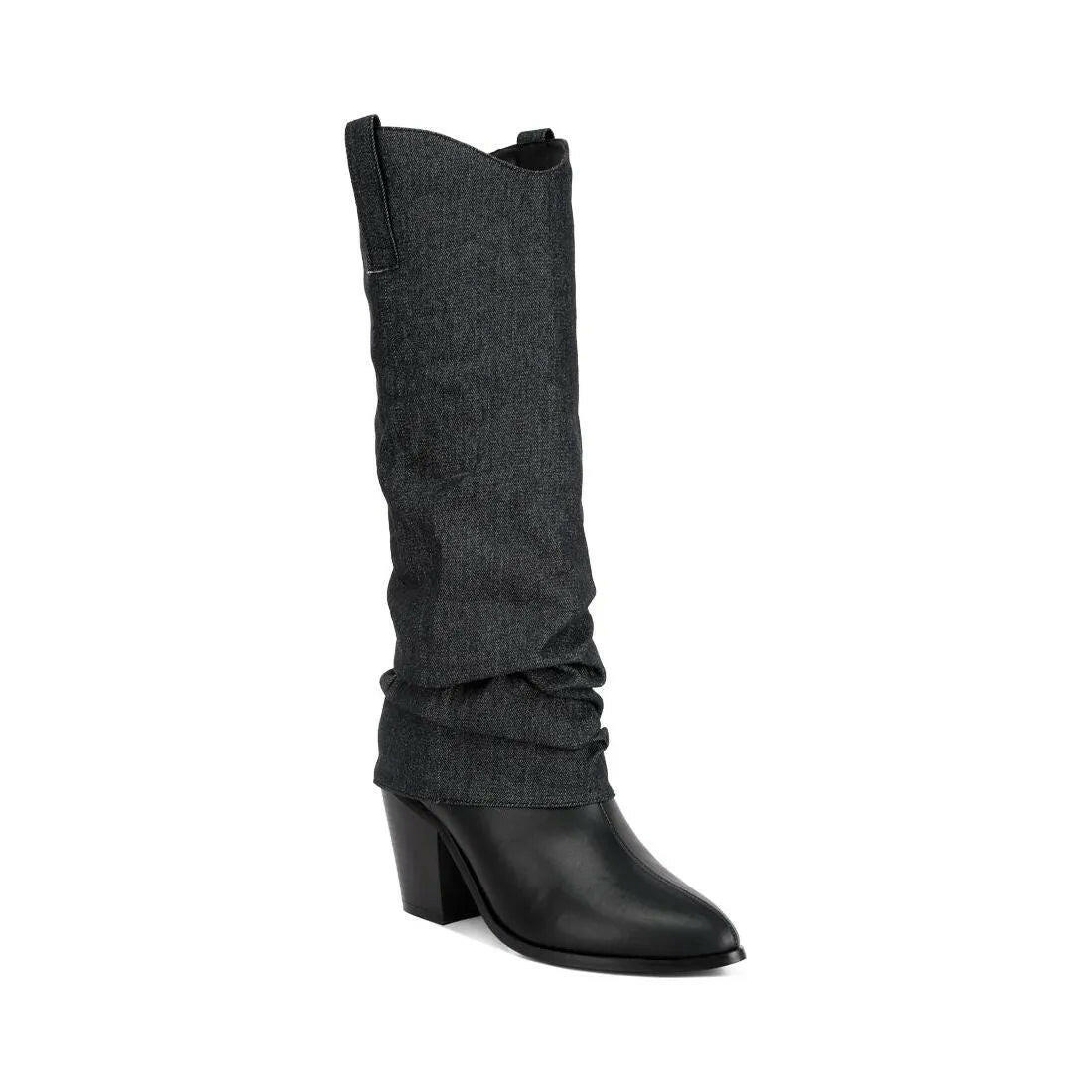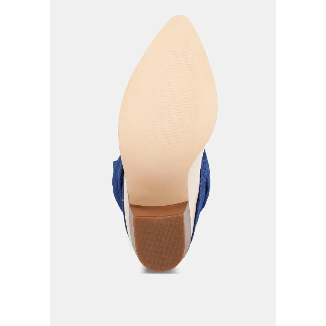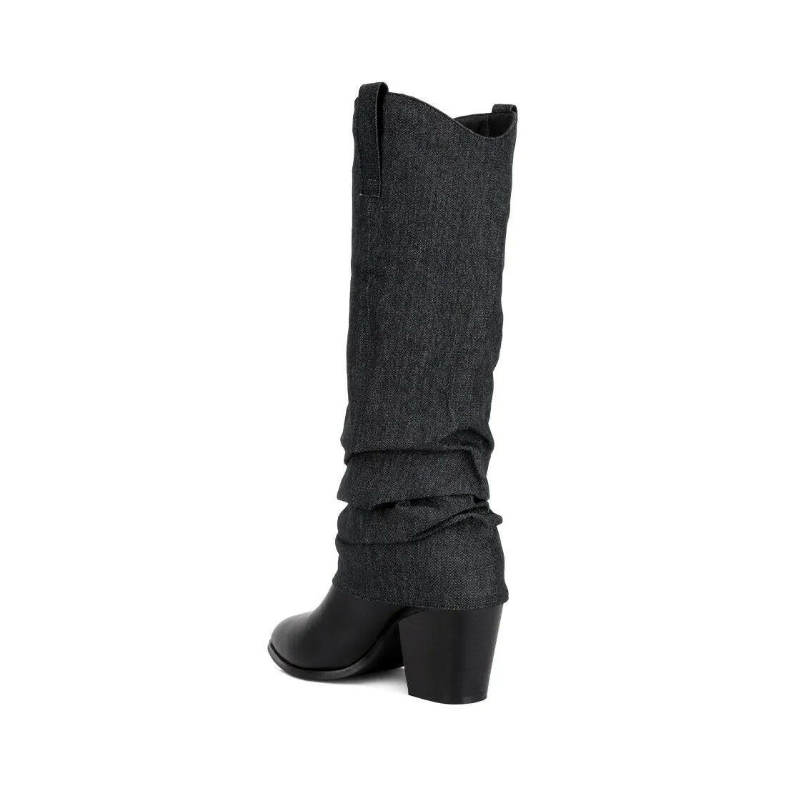 Stylish and unique, every shoe collection needs an avant garde pair of boots. Pair these unique denim sleeve on cowboy boots with your brunch outfits or midi skirts to work. The low block heel makes them super comfortable to walk in.