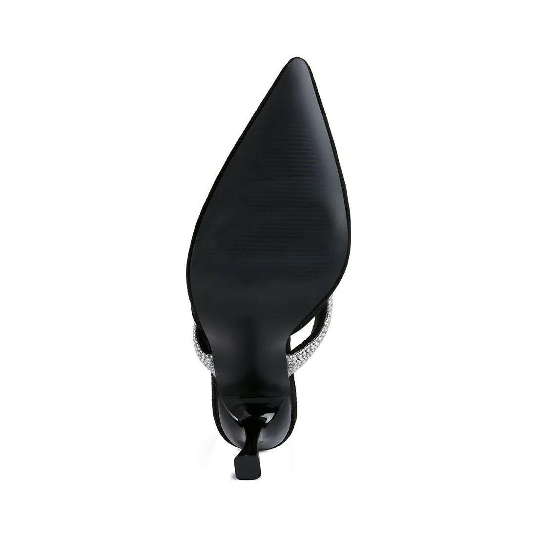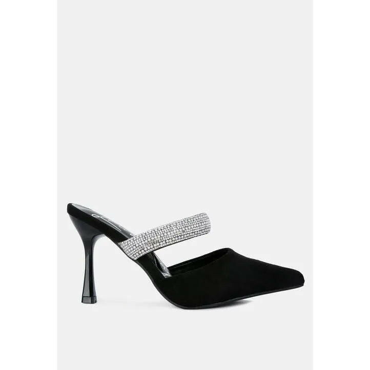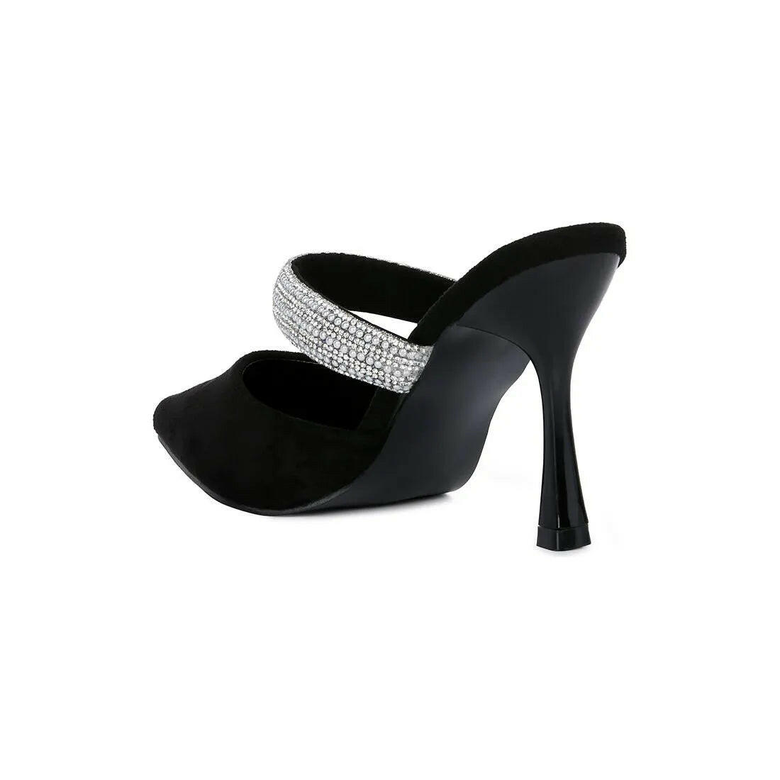 The diamante detail strap amps up the whole look, and the pointed toe construction gives the sandals a sharp look. The pair is a show stopper, indeed! The short heel and soft innersole make the slip-on sandals easy to wear.