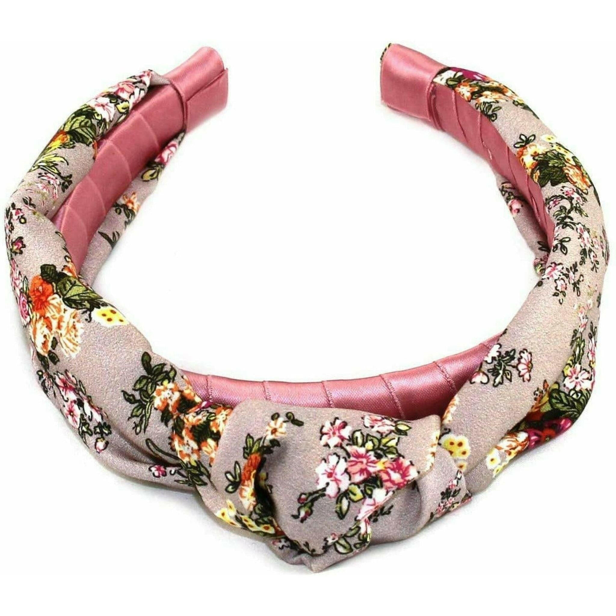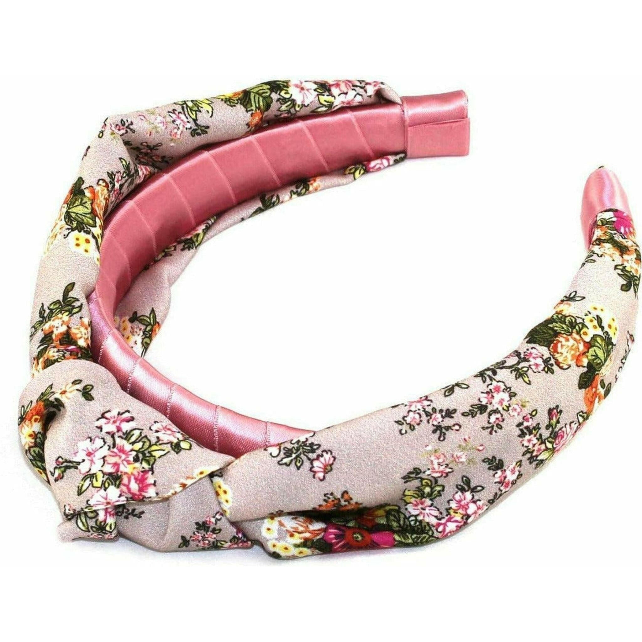 This modern update to KP's best selling knot headband is simply fabulous! A floral silk batik fabric is knotted into an elegant layered look. This is a headband that stops right behind the ears. Get the look of a turban with the easy wear of a headband!