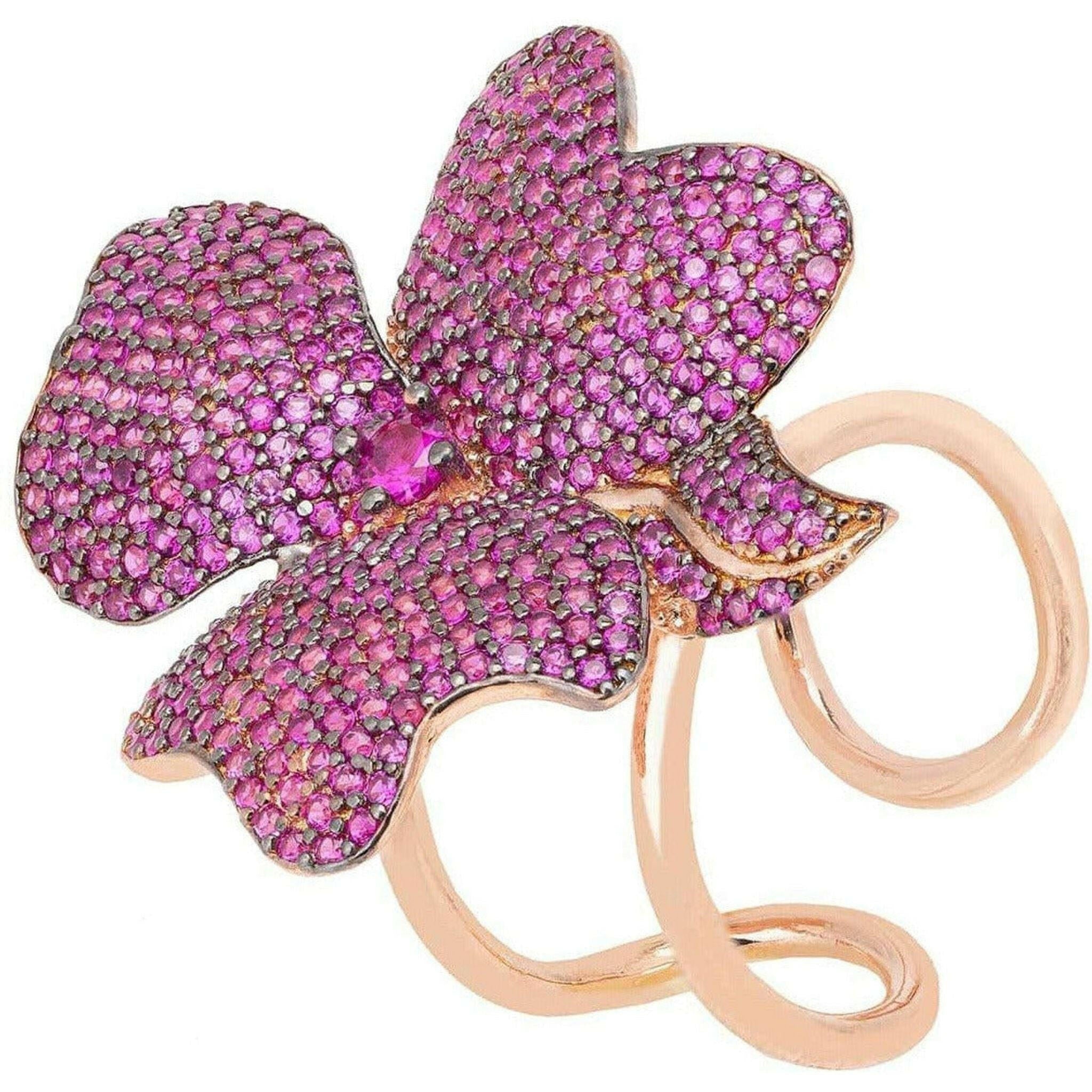 Ideal for those who love statement jewellery with added sparkle. Make this floral inspired cocktail ring your new timeless treasure. A large flower sits prettily atop double metallic adjustable bands. This large flower cocktail ring is adorned with sparkling cubic zirconia which will add a touch of sophisticated style to any outfit.