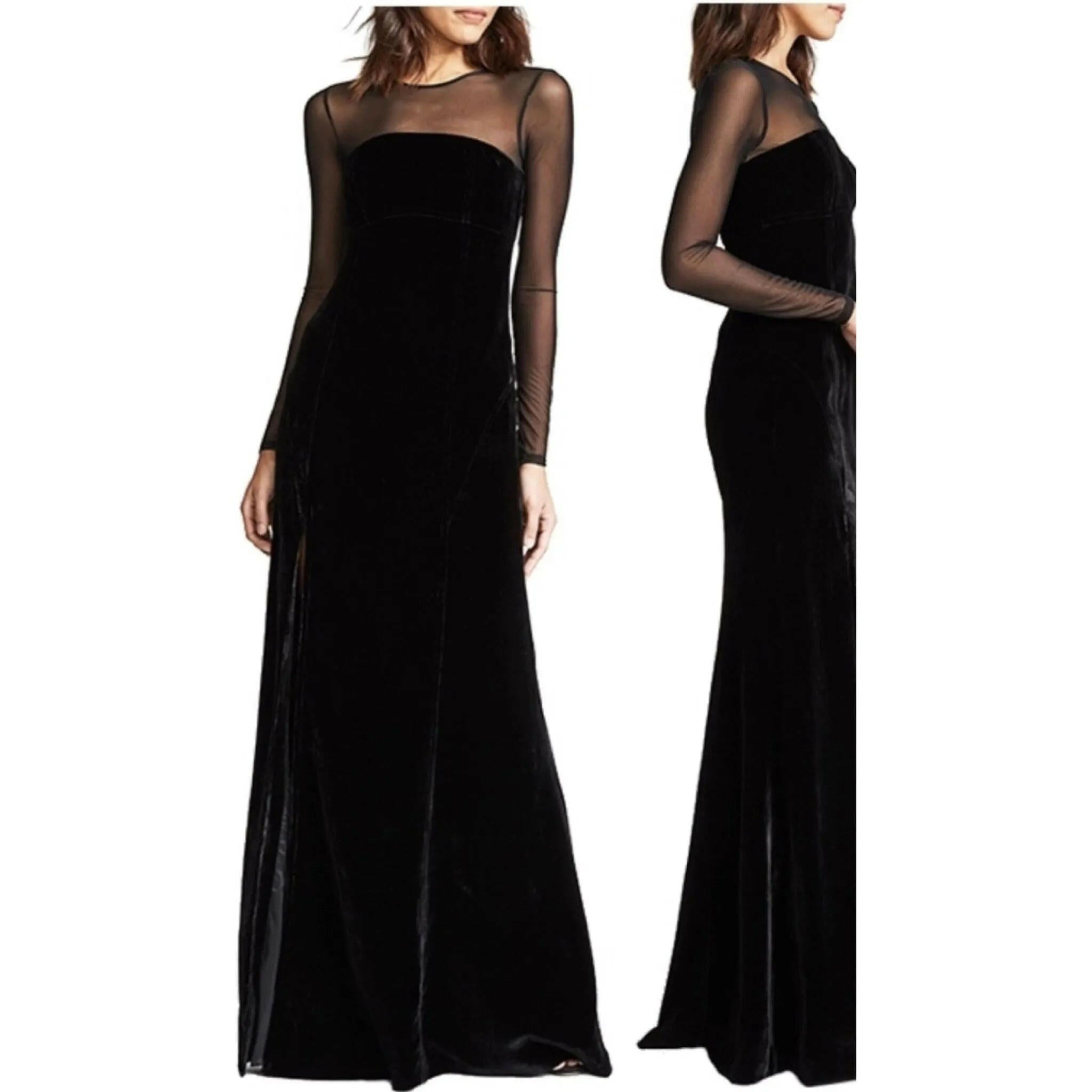 • Formal Illusion Neck Velvet Gown for a simply glamorous look